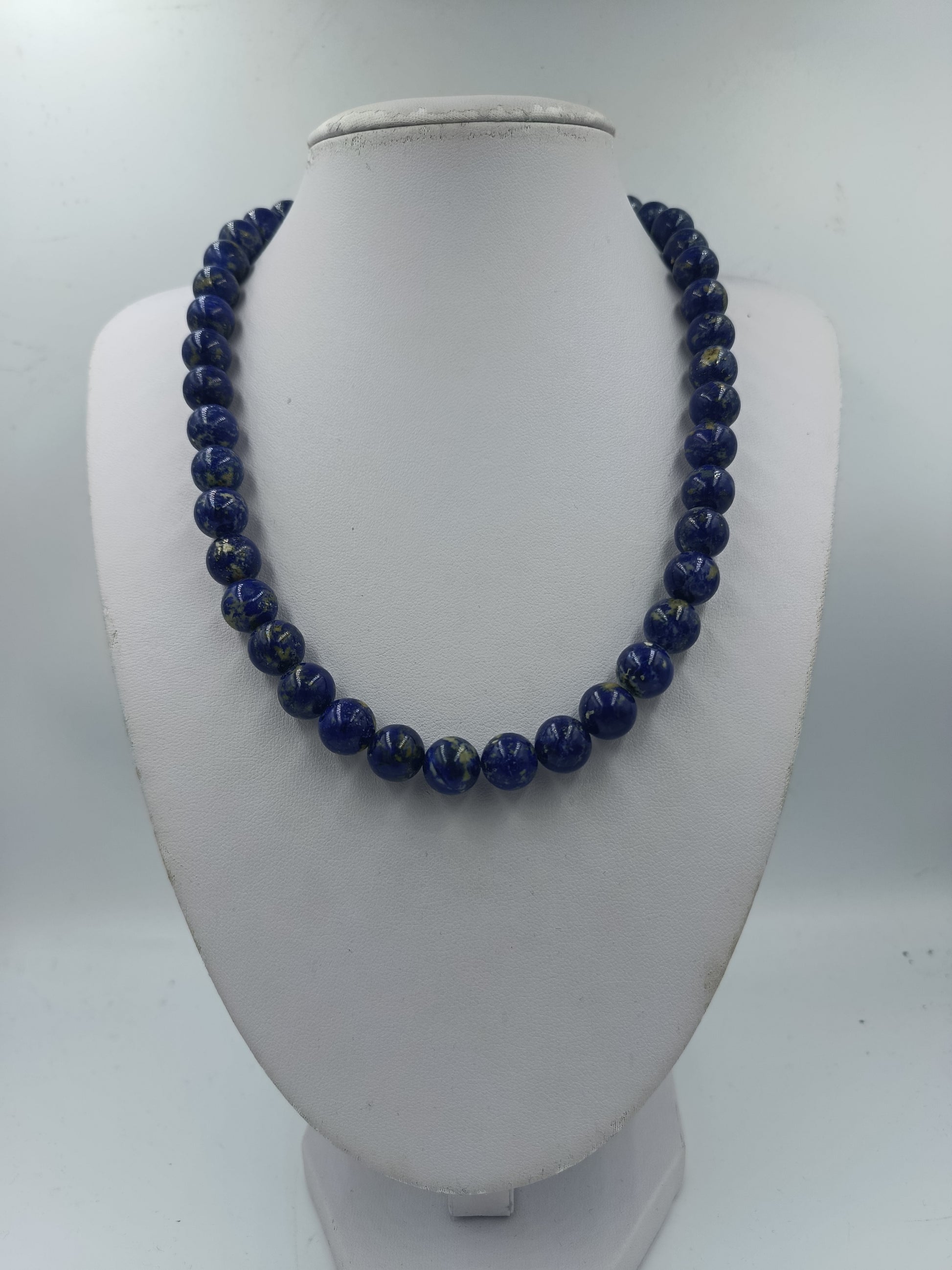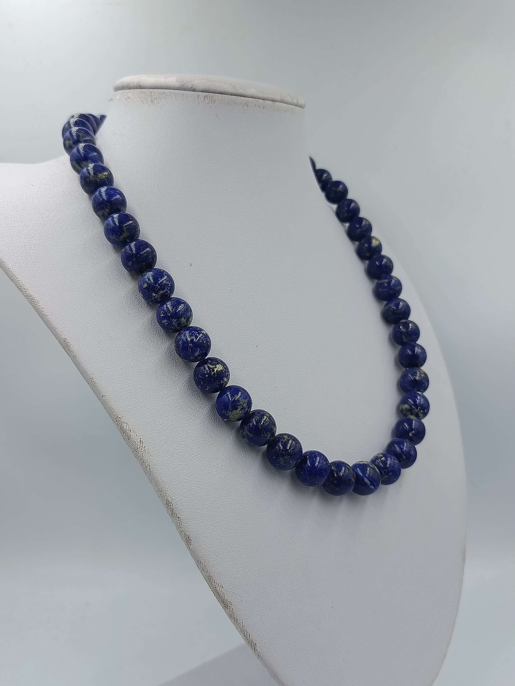 Klassische Halskette aus Lapislazuli mit runden Perlen und kräftiger blauer Farbwirkung
