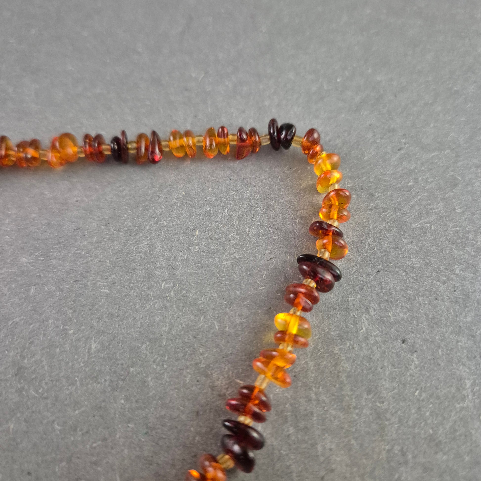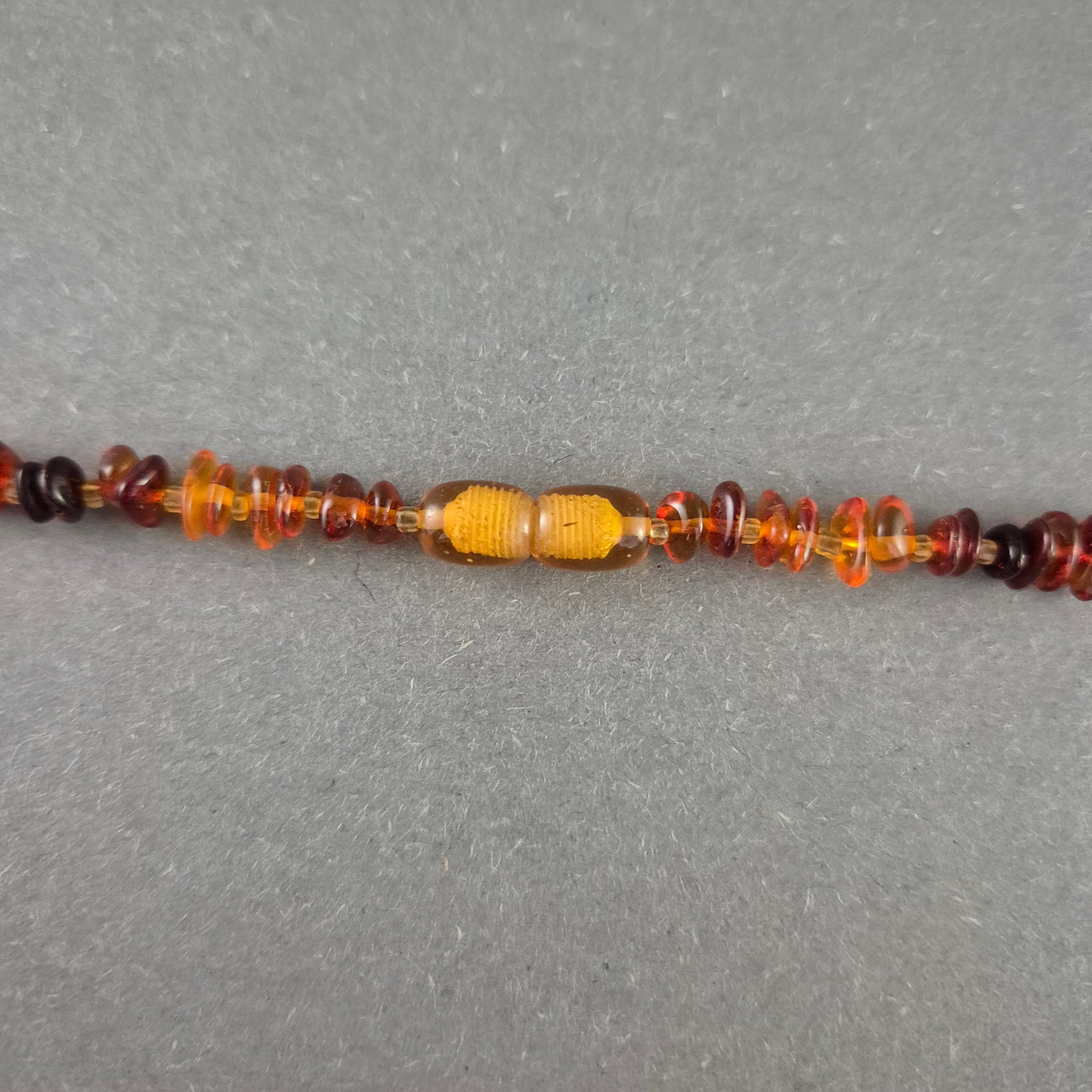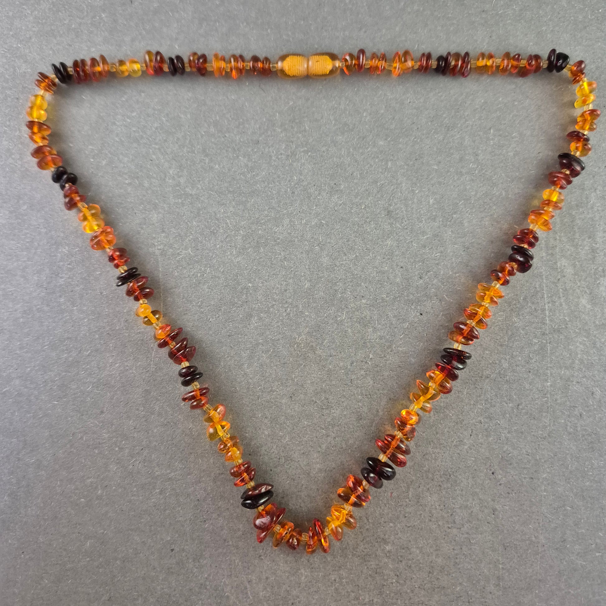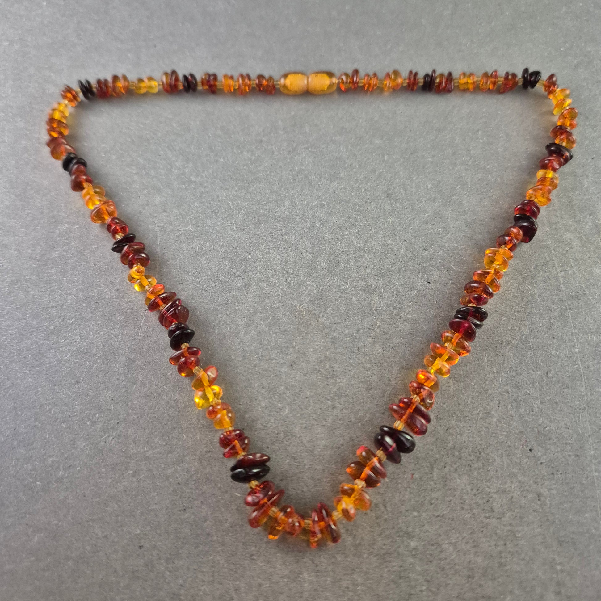 Diese stilvolle Halskette überzeugt mit kunstvoll gefertigten Perlen in Bernsteinoptik. Die unregelmäßig geformten Elemente in warmen Braun-, Cognac- und Honigfarben verleihen ihr eine natürliche Ausstrahlung. Durch ihren leichten Kunststoffverschluss ist sie bequem zu tragen und ideal als Accessoire für Alltag und Freizeit geeignet.