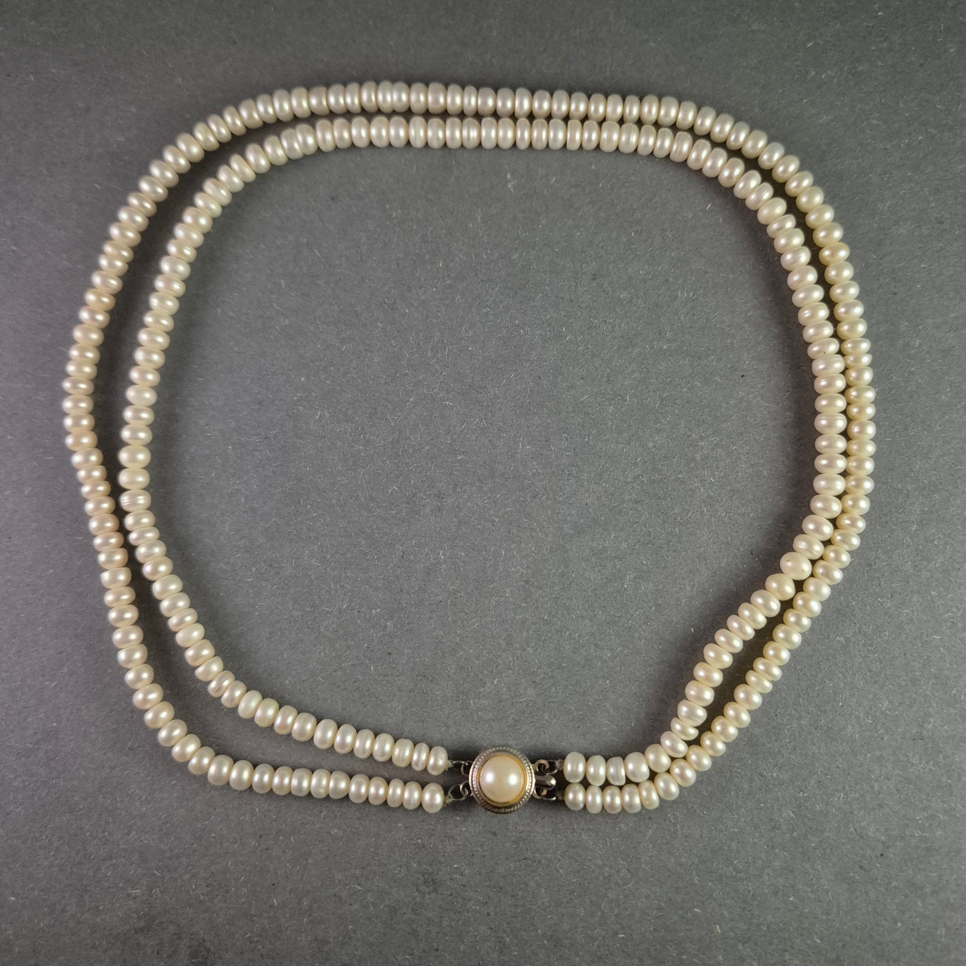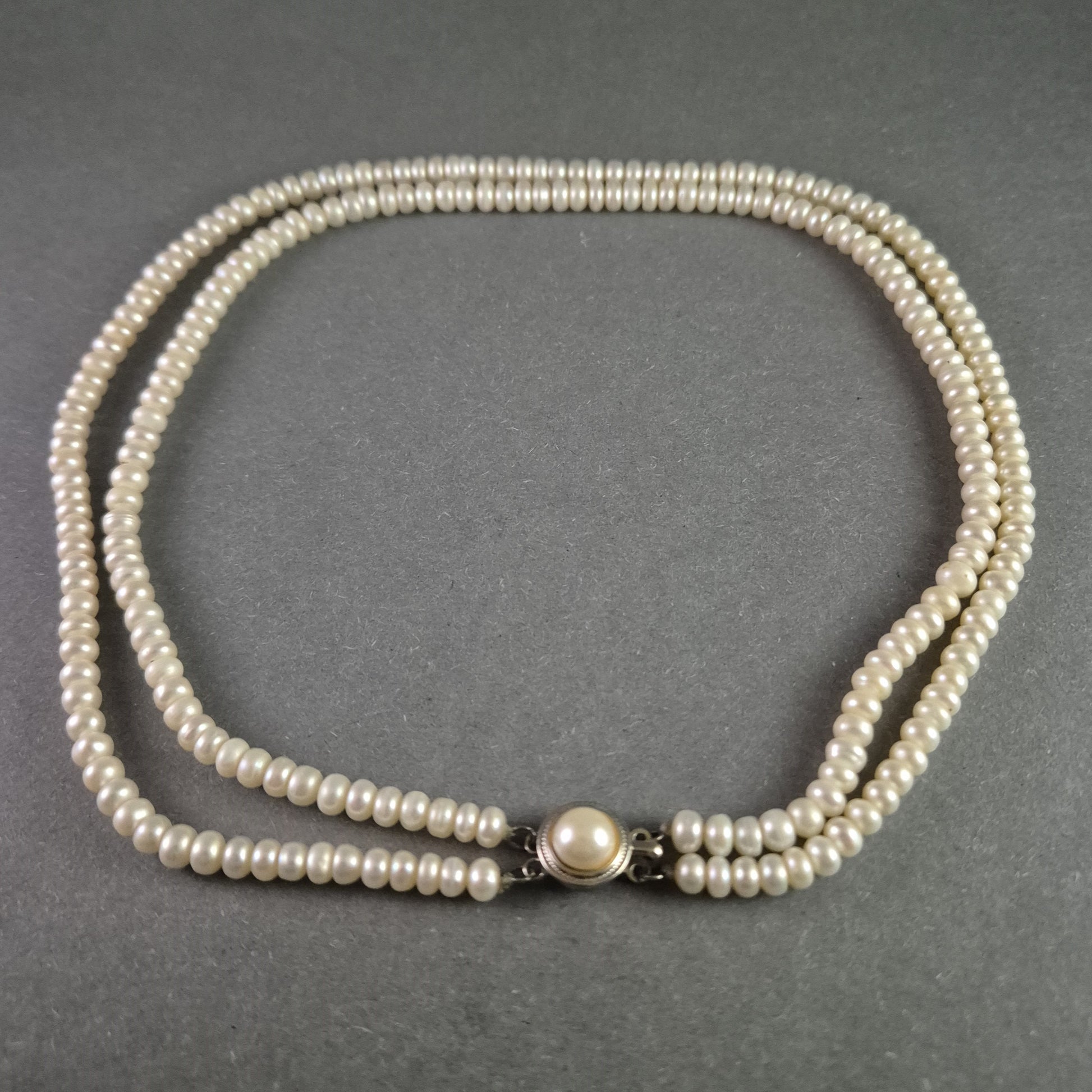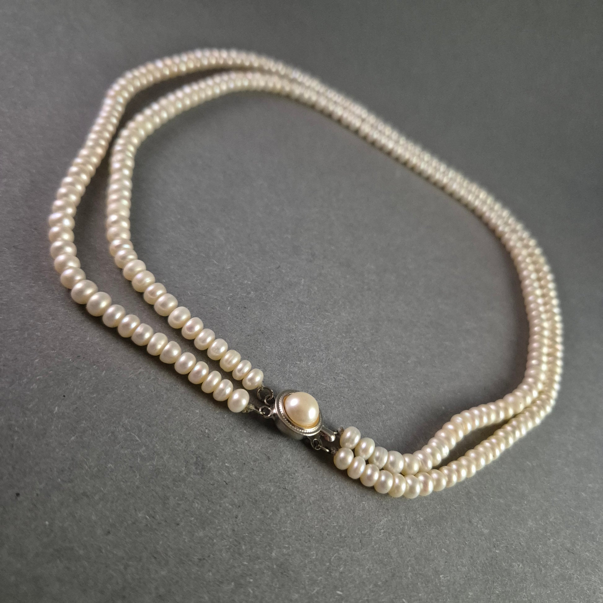 • Doppelte Stränge aus glänzenden weißen Kunstperlen