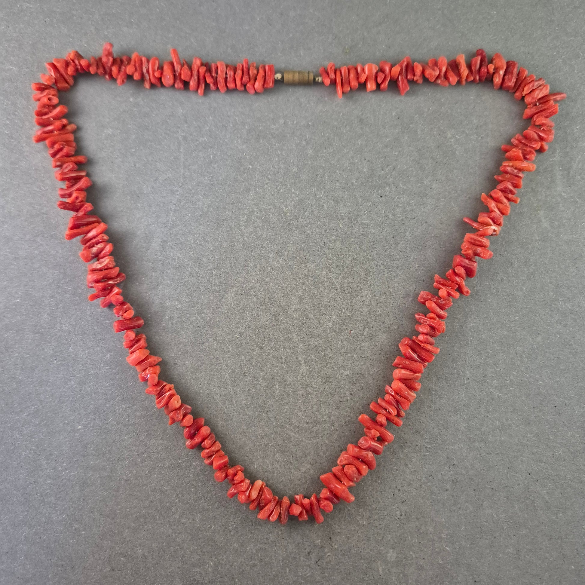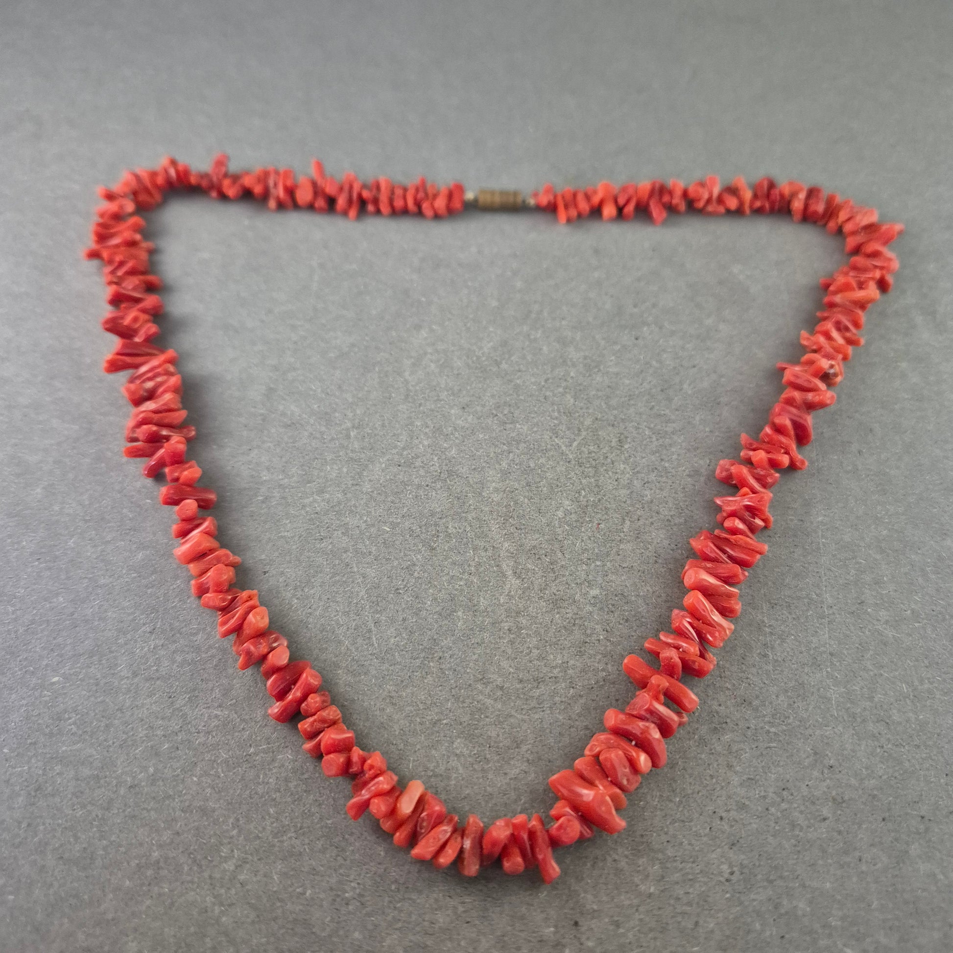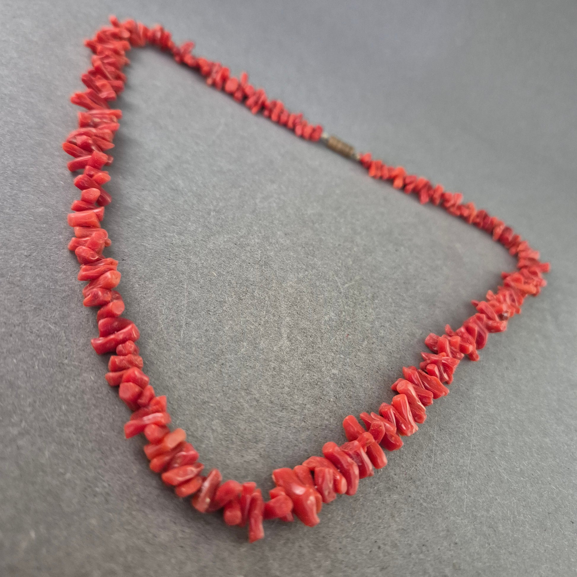Diese Halskette aus roten Korallenchips bringt mediterranen Flair und natürlichen Charme in Ihr Schmucksortiment. Die unregelmäßigen Korallenstücke verleihen dem Schmuckstück eine lebendige Textur und machen jedes Exemplar zu einem Unikat. Ein perfekter Begleiter für den Sommer oder als farbenfroher Akzent im Alltag.