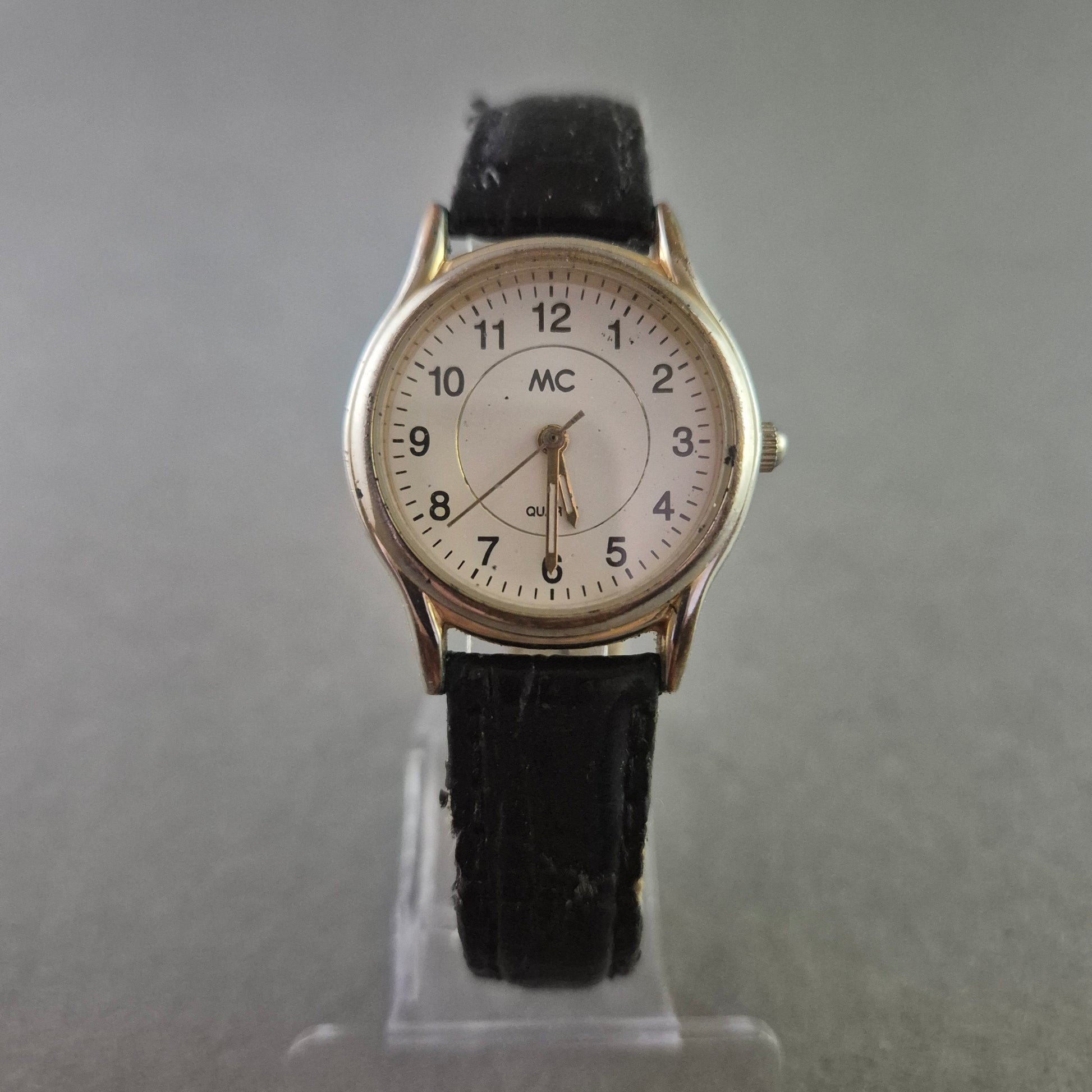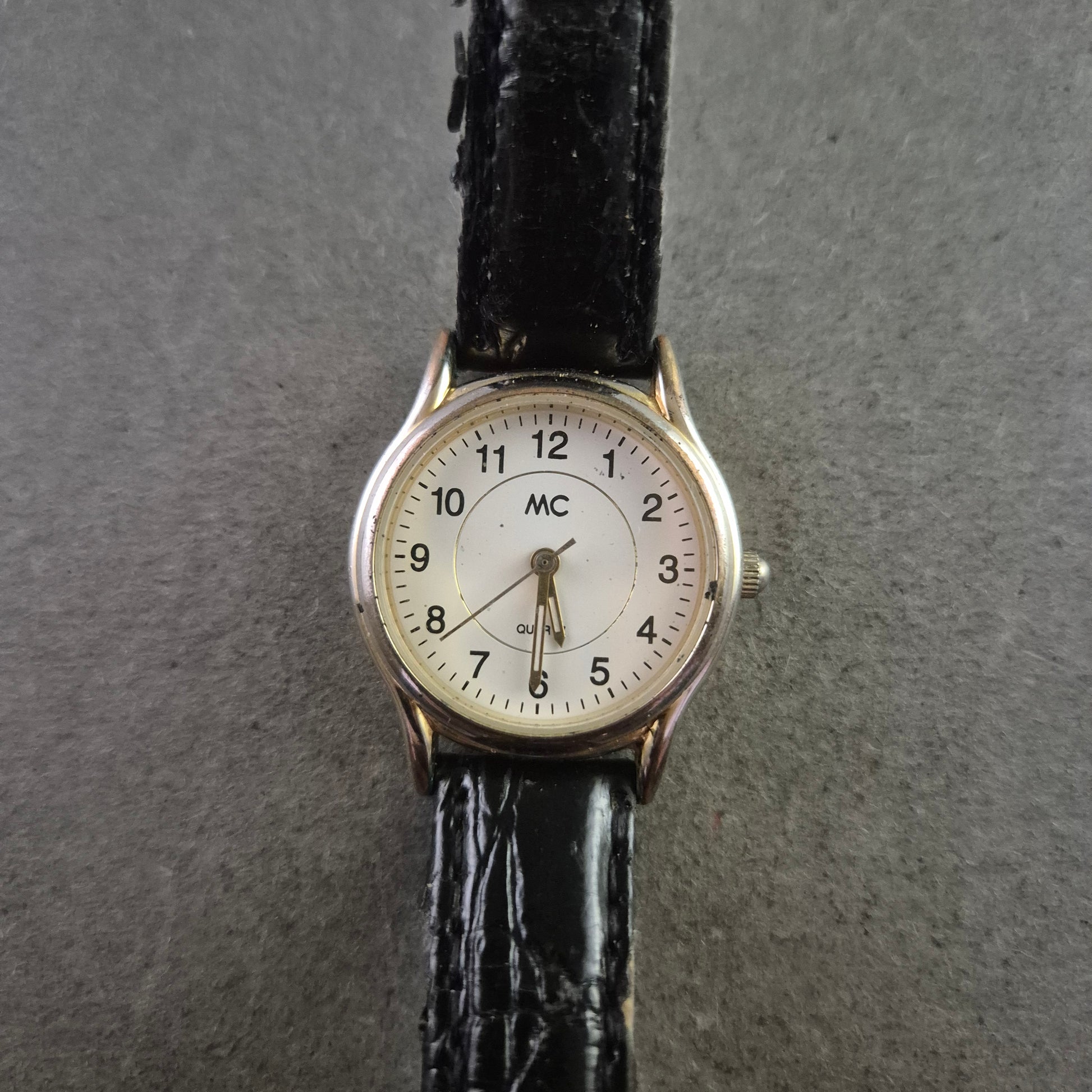 Klassische MC Damen Uhr mit schwarzem Lederarmband