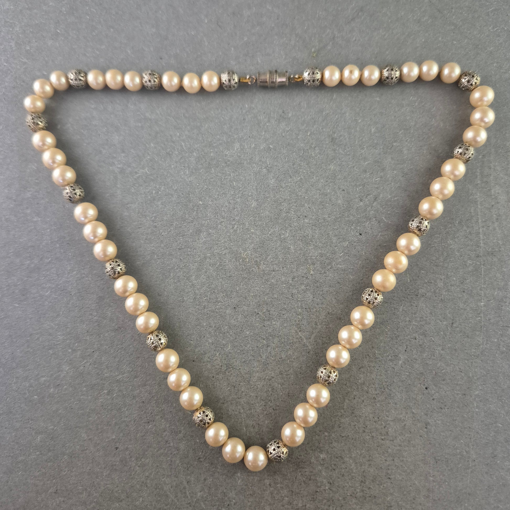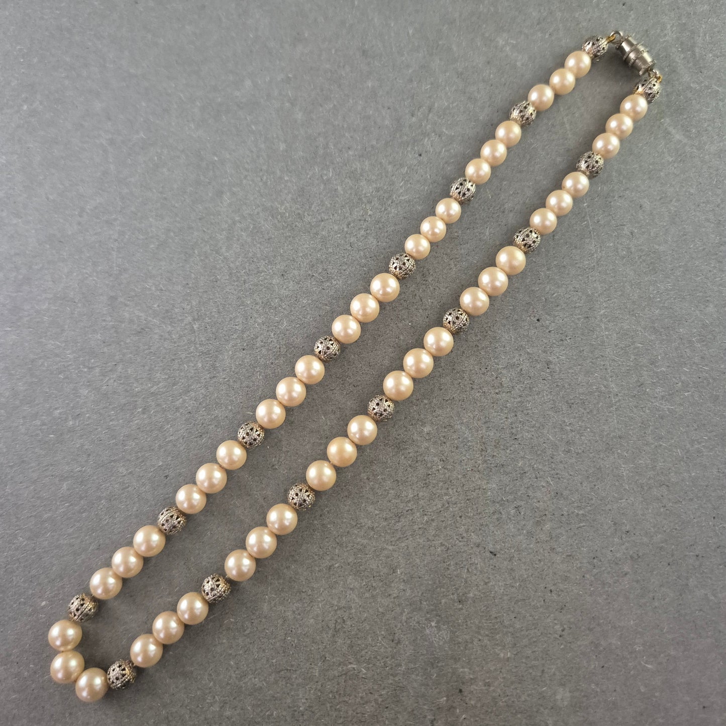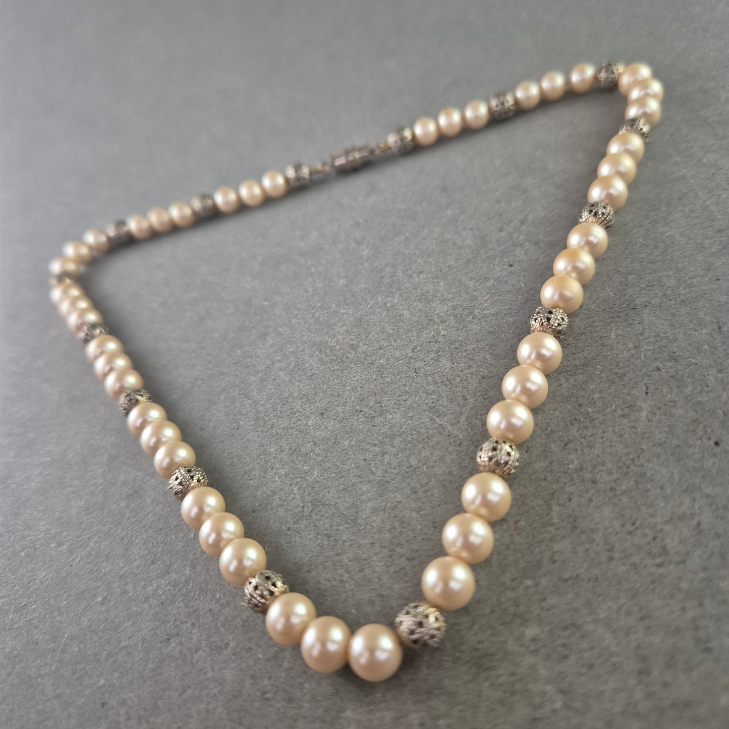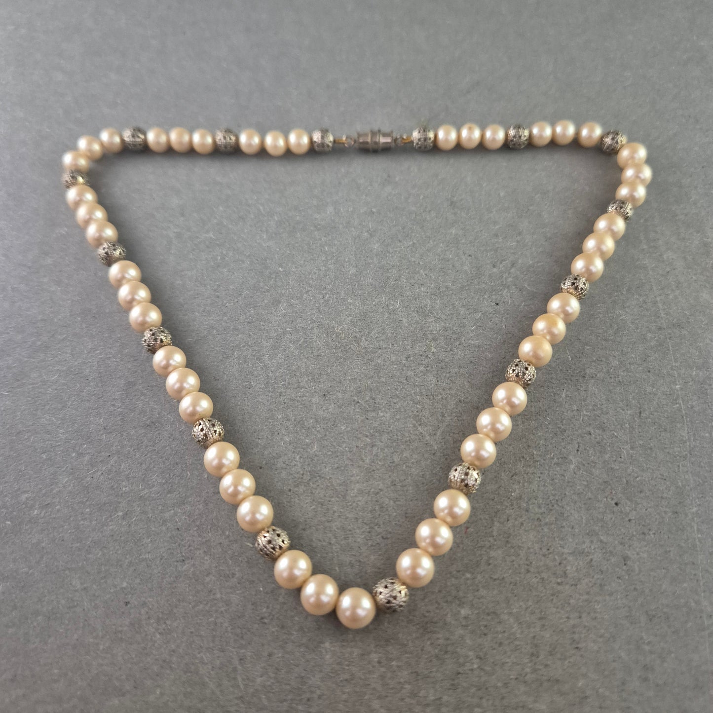 Perlen Halskette filigranen Zwischenelementen Eleganter Vintage-Stil