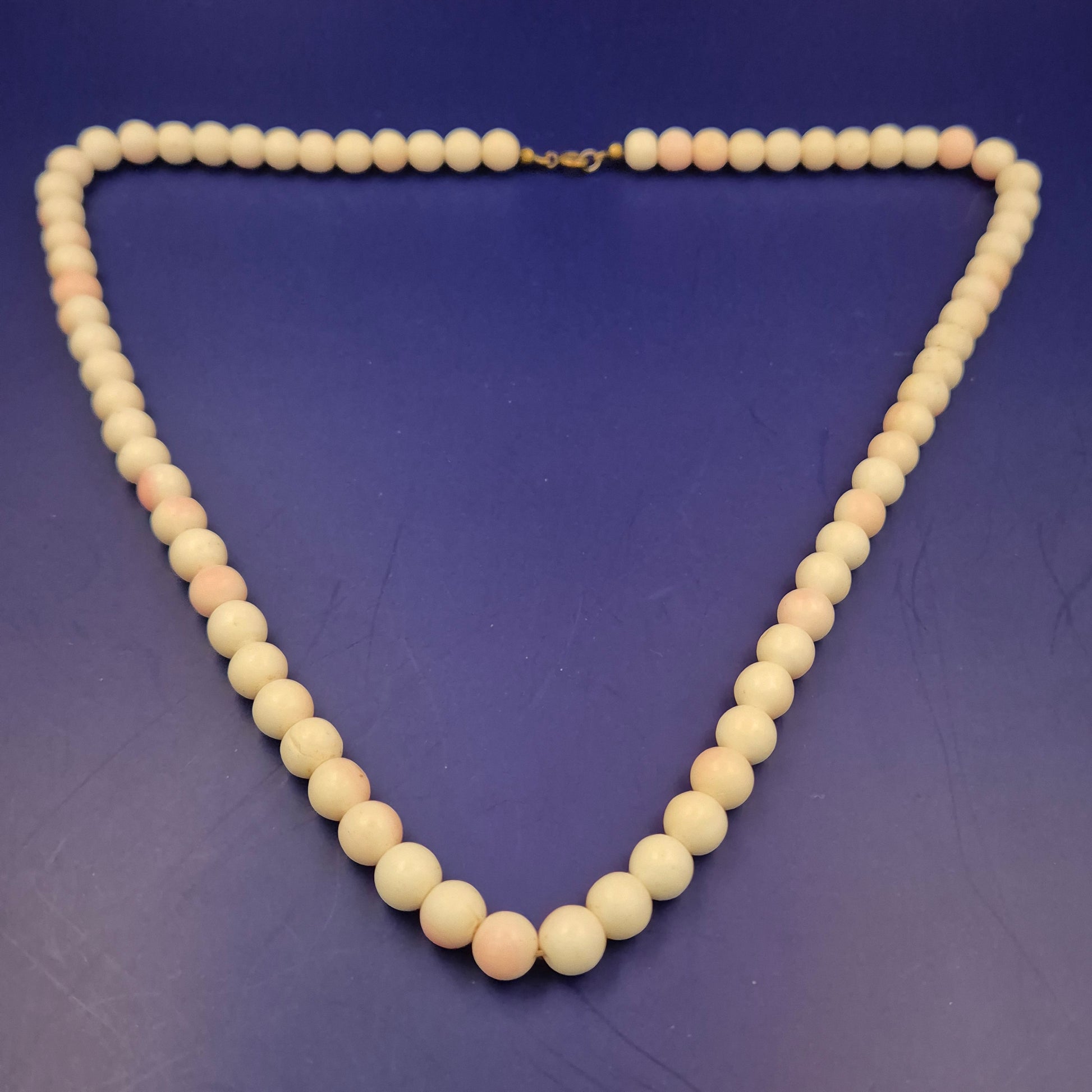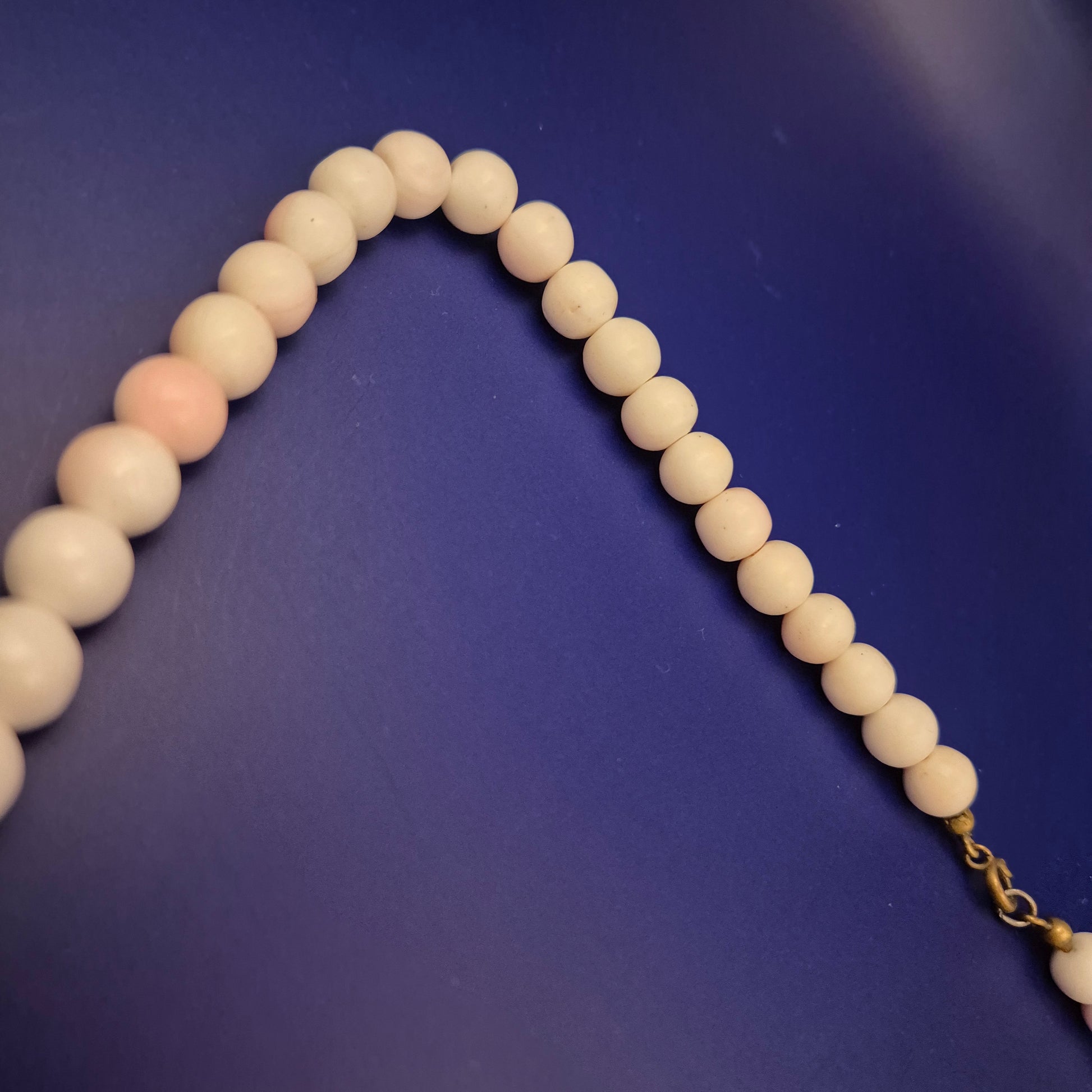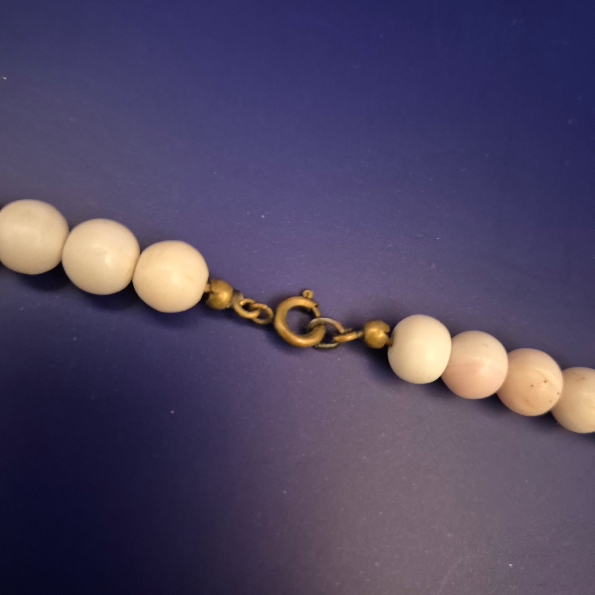 Diese schlichte und elegante Halskette überzeugt mit zarten Perlen in einem sanften Rosé-Weiß-Ton. Die gleichmäßig runden Perlen sind auf feine Weise aufgefädelt und durch einen klassischen Schraubverschluss gesichert. Ideal für elegante Outfits oder als stilvolles Vintage-Accessoire.