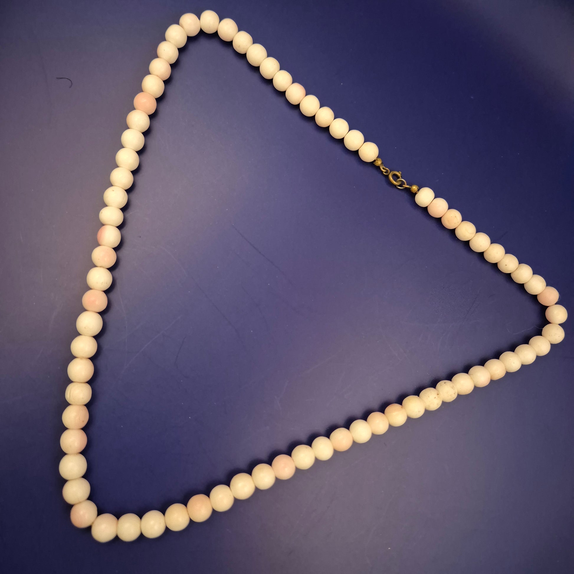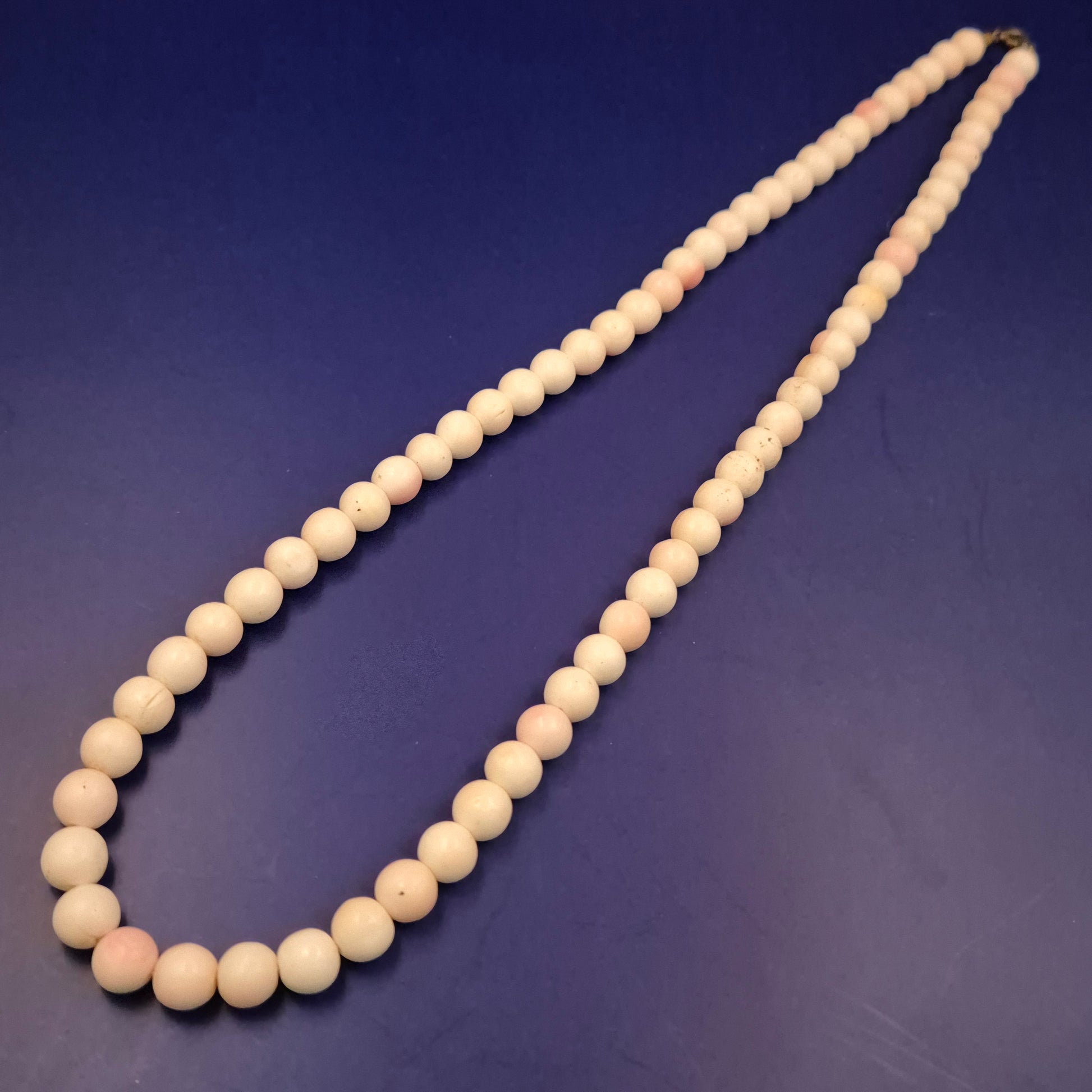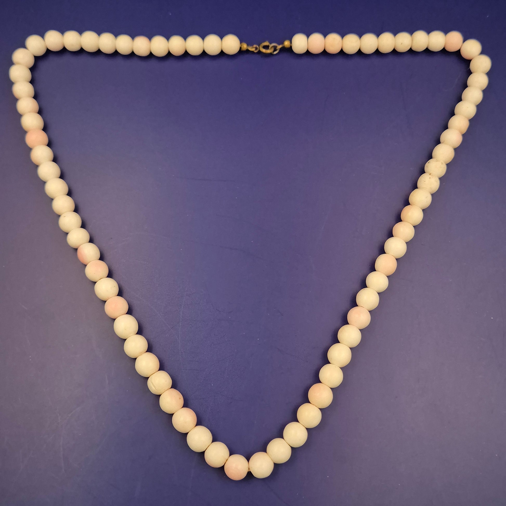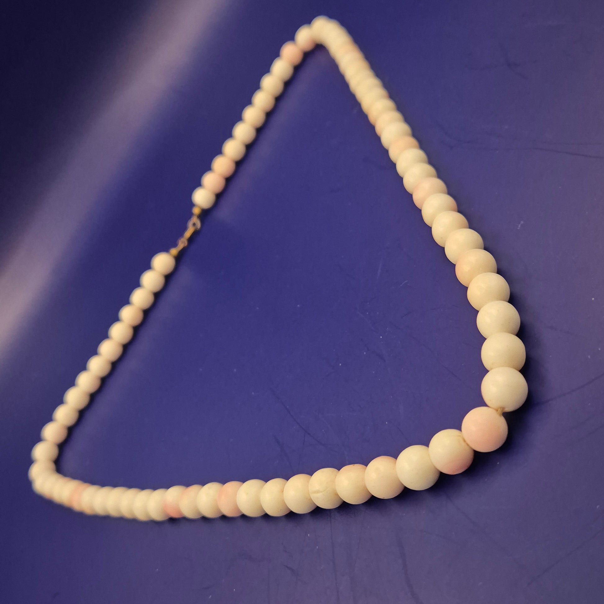Diese schlichte und elegante Halskette überzeugt mit zarten Perlen in einem sanften Rosé-Weiß-Ton. Die gleichmäßig runden Perlen sind auf feine Weise aufgefädelt und durch einen klassischen Schraubverschluss gesichert. Ideal für elegante Outfits oder als stilvolles Vintage-Accessoire.