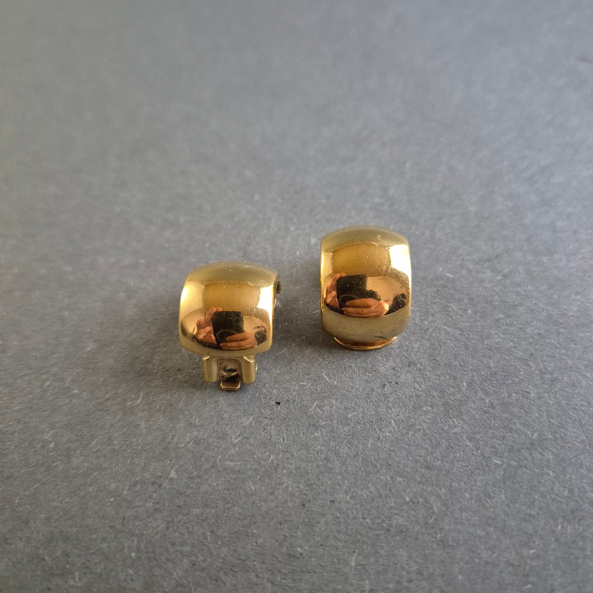 Diese eleganten Clip-Ohrringe in massiv wirkender Form glänzen mit einem klassischen, zeitlosen Design. Die hochglanzpolierte, vergoldete Oberfläche verleiht ihnen ein luxuriöses Aussehen – perfekt für elegante Anlässe oder einen stilvollen Alltagslook. Dank des Clipverschlusses sind sie auch ohne Ohrlöcher angenehm tragbar.