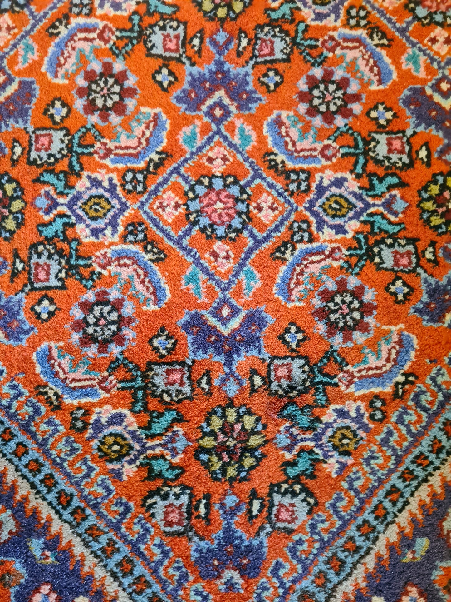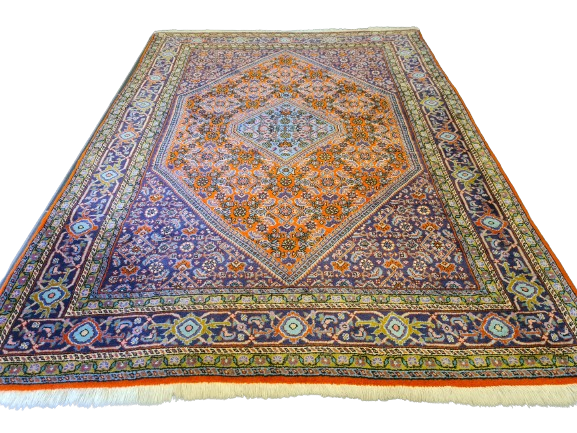 Beschreibung: Dieser königliche Bidjar Teppich ist nicht nur ein Kunstwerk, sondern auch ein Erbstück mit einer Geschichte. Sein außergewöhnliches Design und die hochwertigen Materialien machen ihn zu einem begehrten Stück für Sammler und Liebhaber traditioneller Handwerkskunst. Die feine Wolle sorgt für einen weichen und luxuriösen Griff, während die kunstvollen Blumenmuster jeden Raum bereichern.