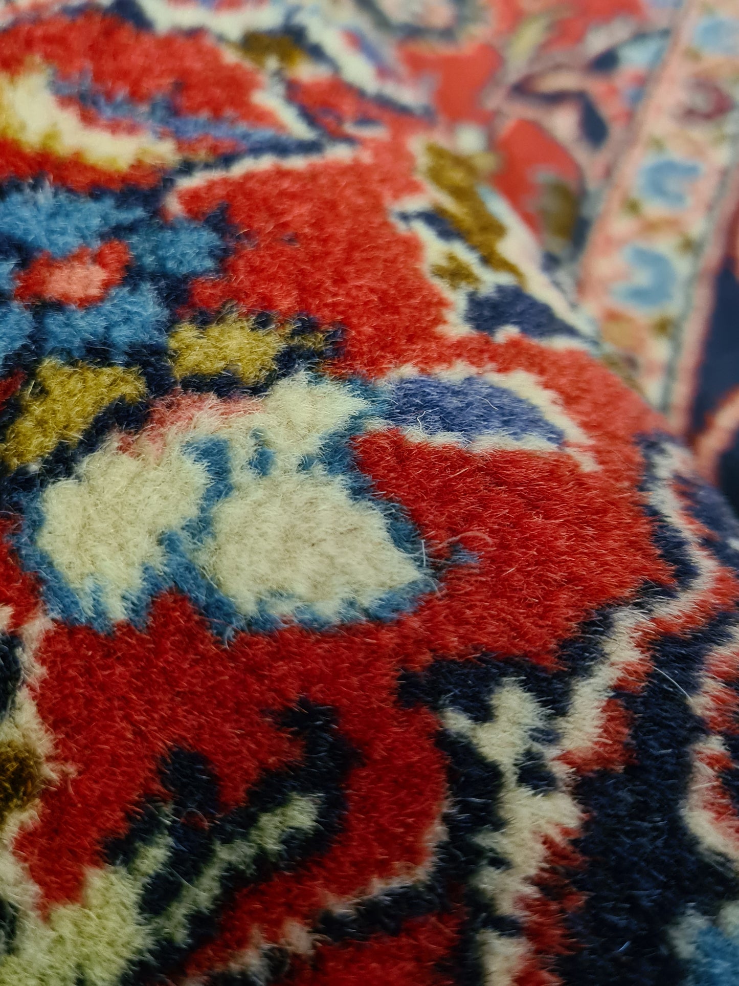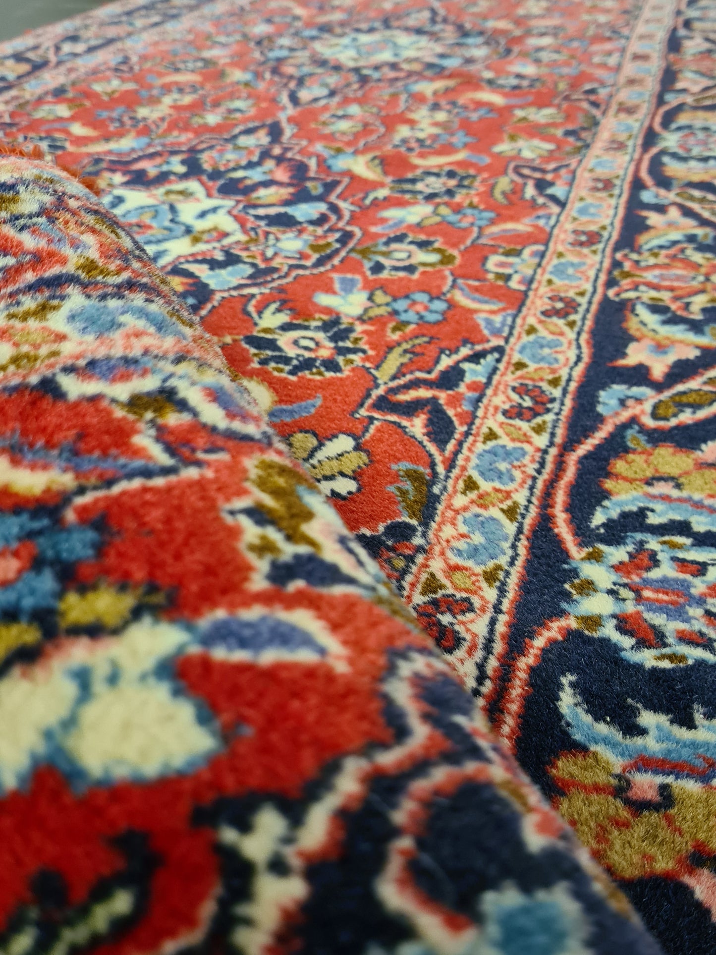 Dieser Teppich ist nicht nur ein Kunstwerk von historischer Bedeutung, sondern auch ein zeitloser Schatz für Ihre Wohnräume. Ideal für Liebhaber von traditioneller Handwerkskunst und ästhetischem Feingefühl.