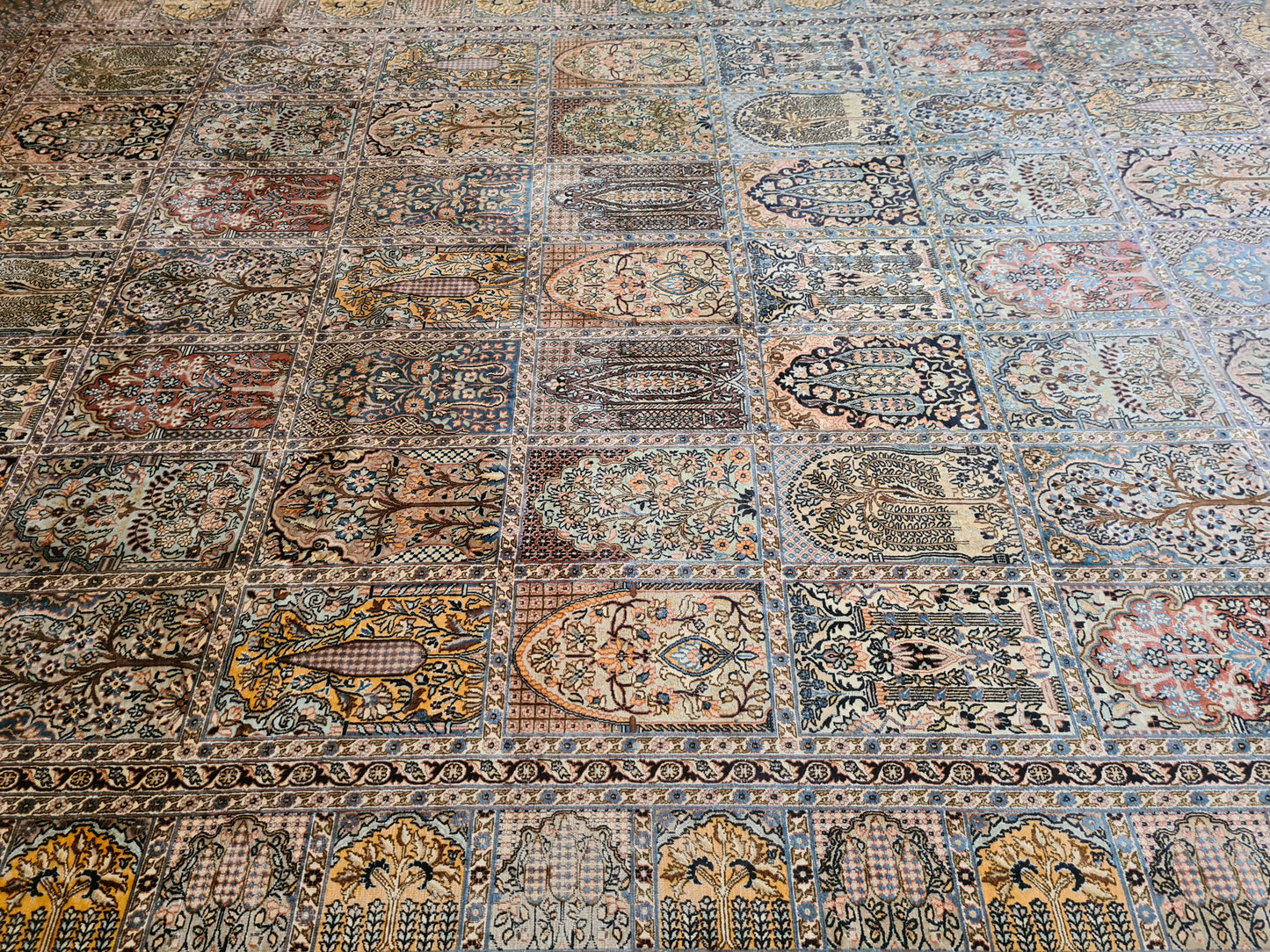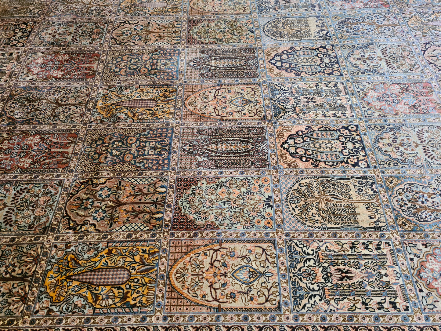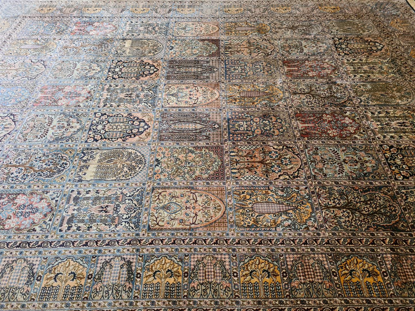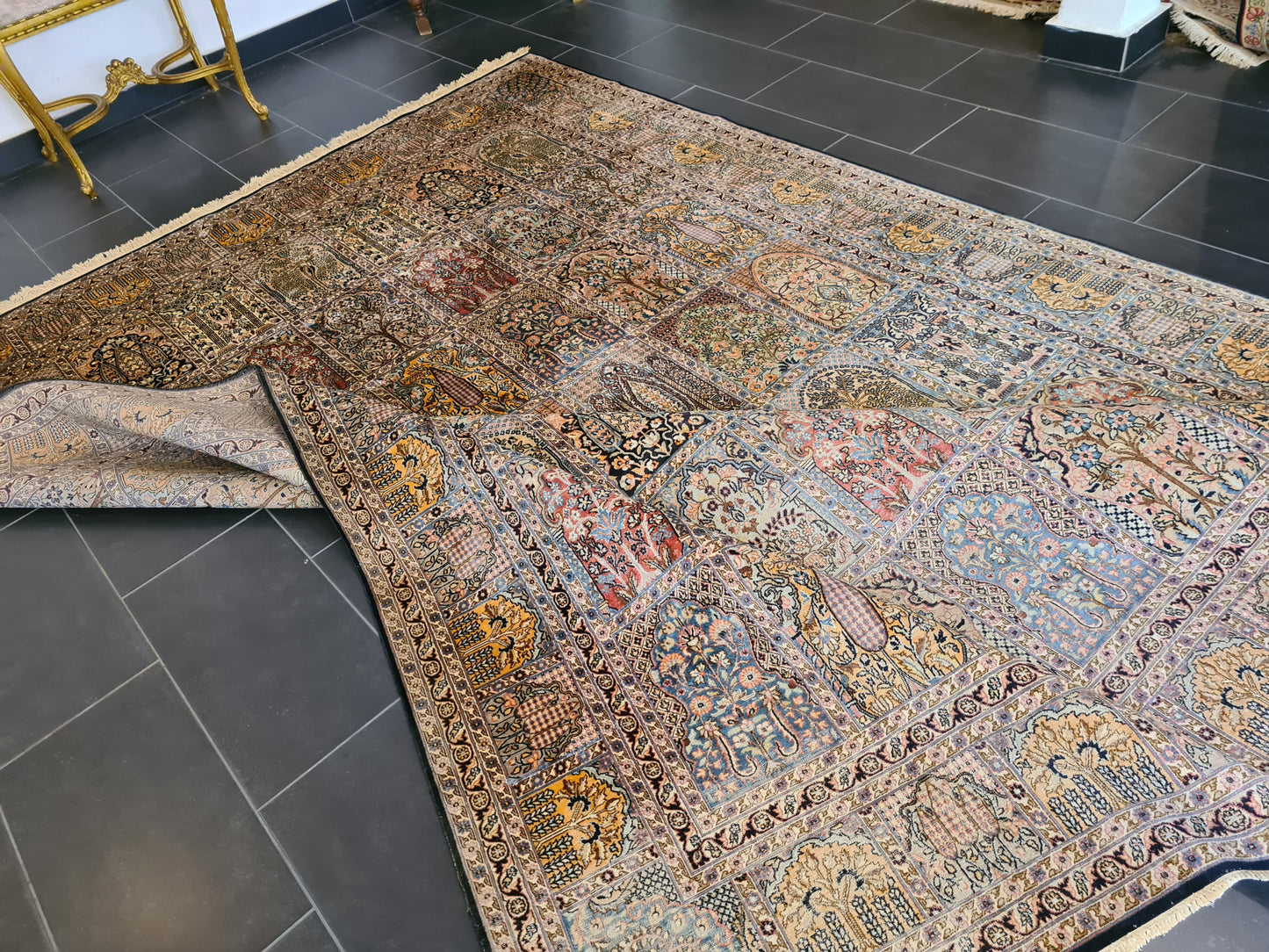 Königlicher Palastteppich aus Kashmir – Handgeknüpfter Seidenteppich mit Feldergartenmuster