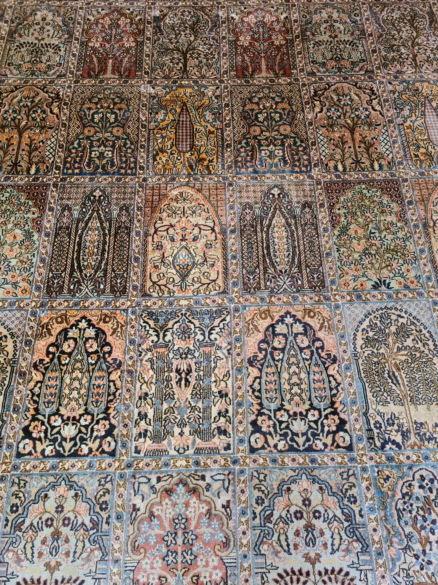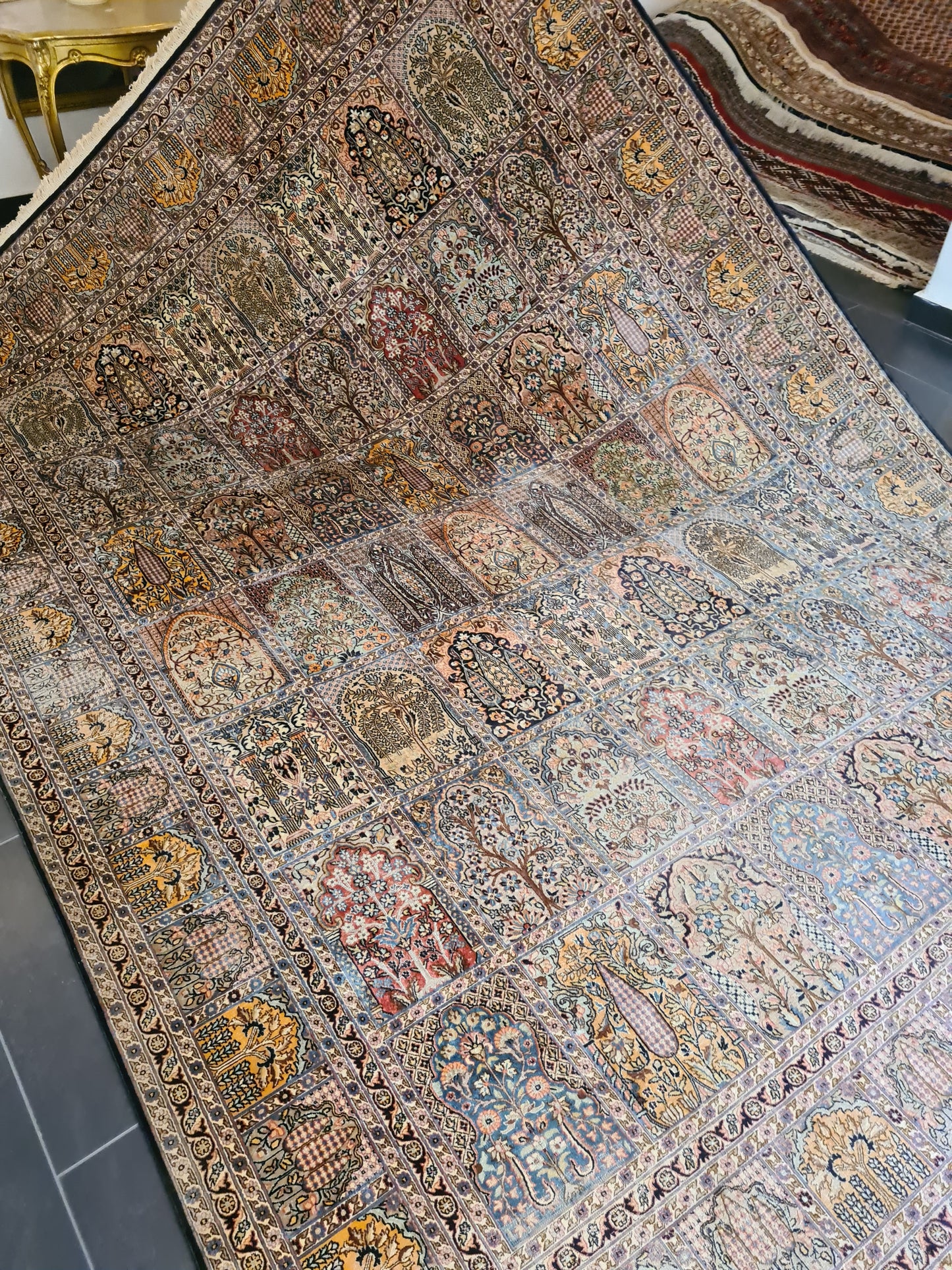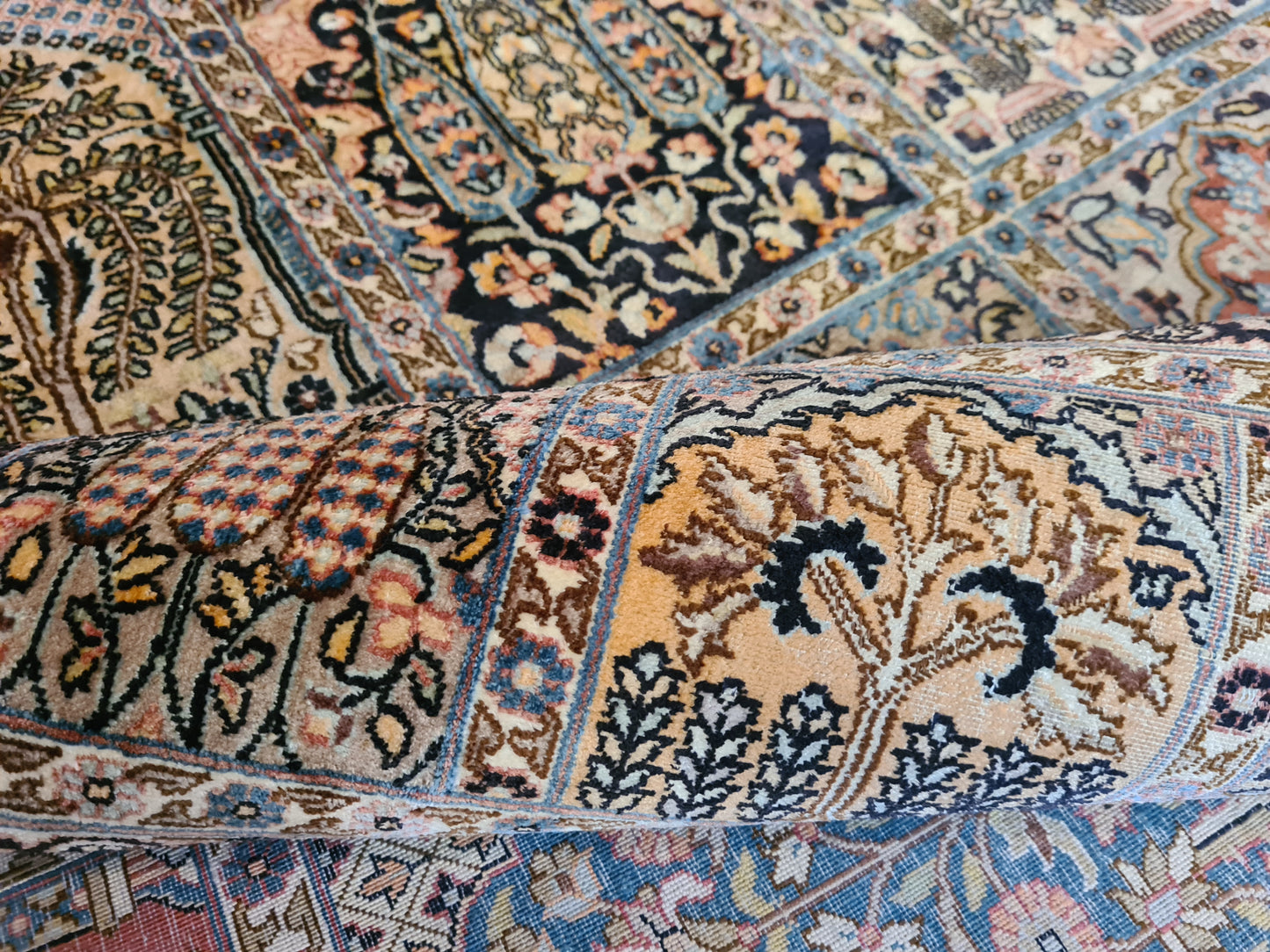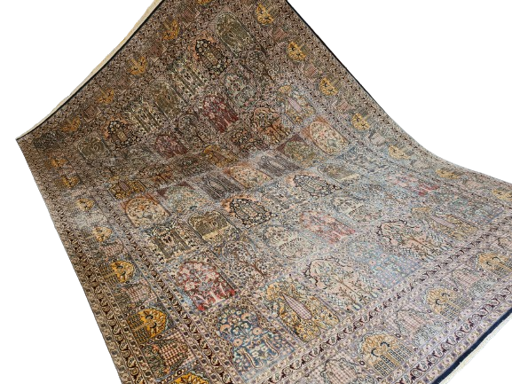 Königlicher Palastteppich aus Kashmir – Handgeknüpfter Seidenteppich mit Feldergartenmuster