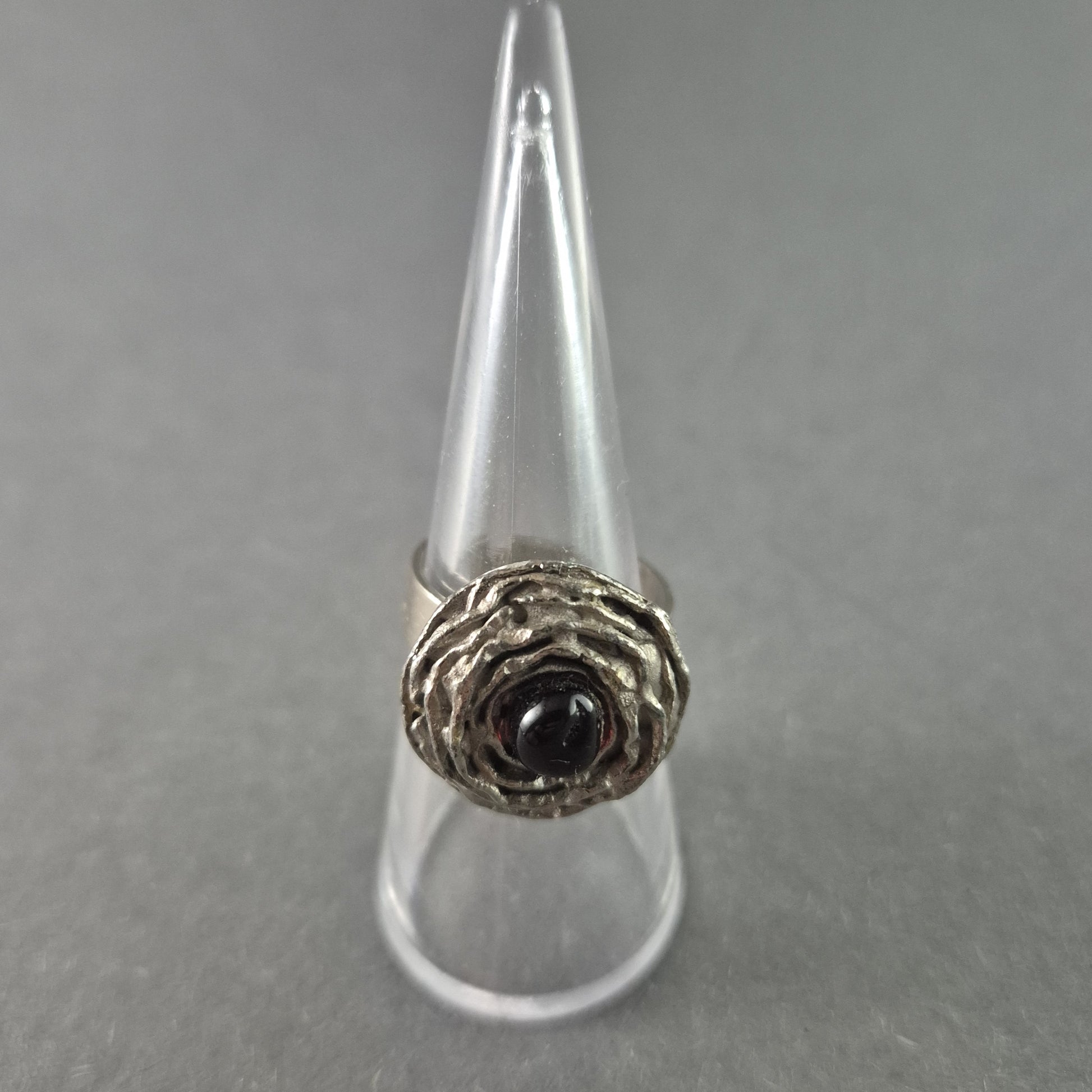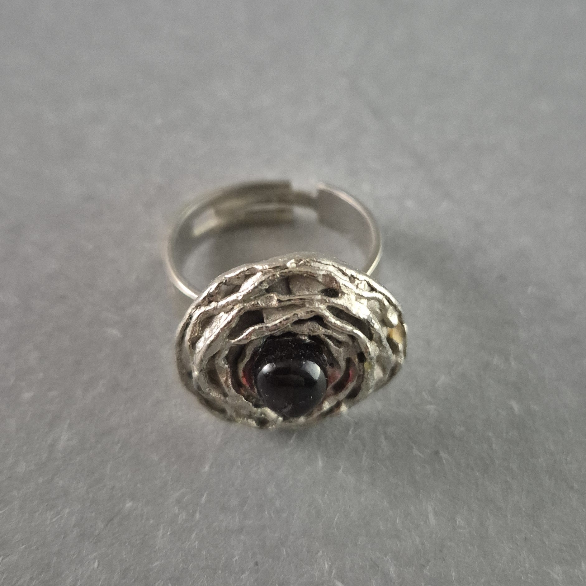 Künstlerischer Vintage-Silberring mit dunklem Stein – Handgefertigtes Unikat