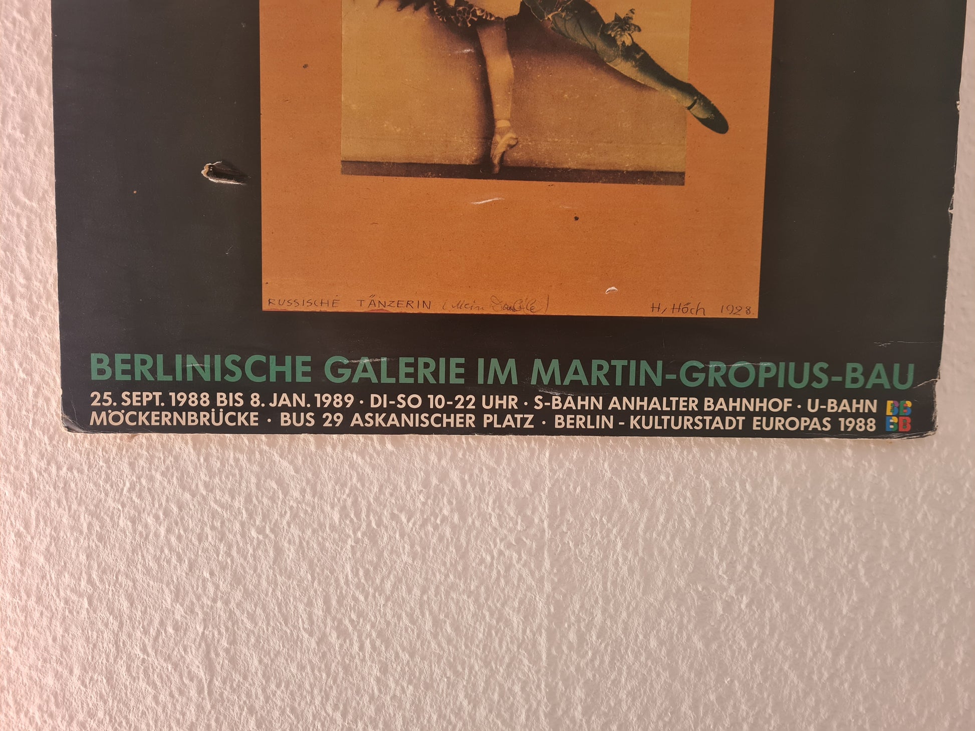 Originales Ausstellungsplakat zur Ausstellung Stationen der Moderne in der Berlinischen Galerie im Martin-Gropius-Bau, Berlin. Gezeigt wurde ein Überblick bedeutender Werke der klassischen Moderne. Das zentrale Motiv zeigt eine Collage von Hannah Höch mit dem Titel „Russische Tänzerin“ (1928). Die Ausstellung lief vom 25. September 1988 bis 8. Januar 1989.