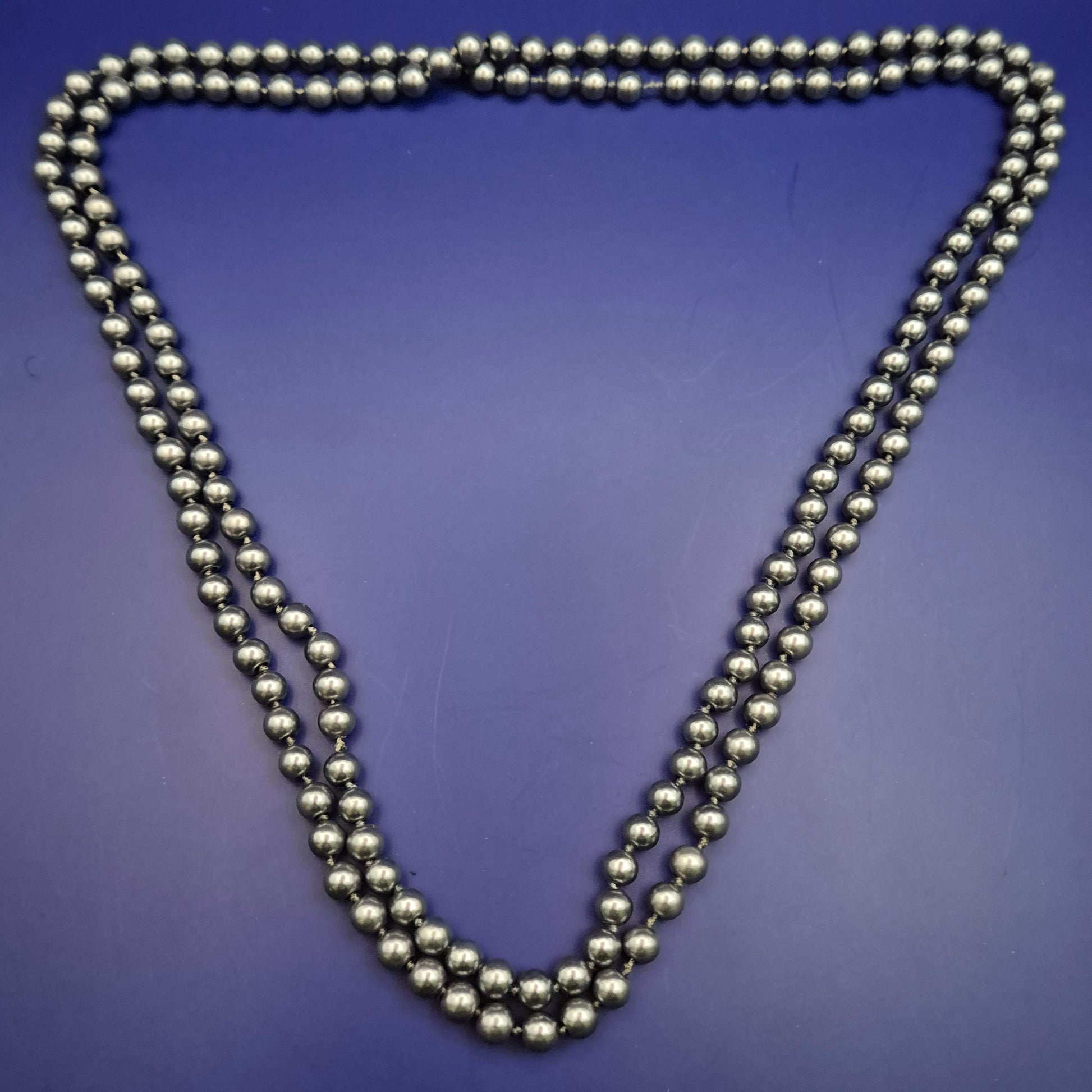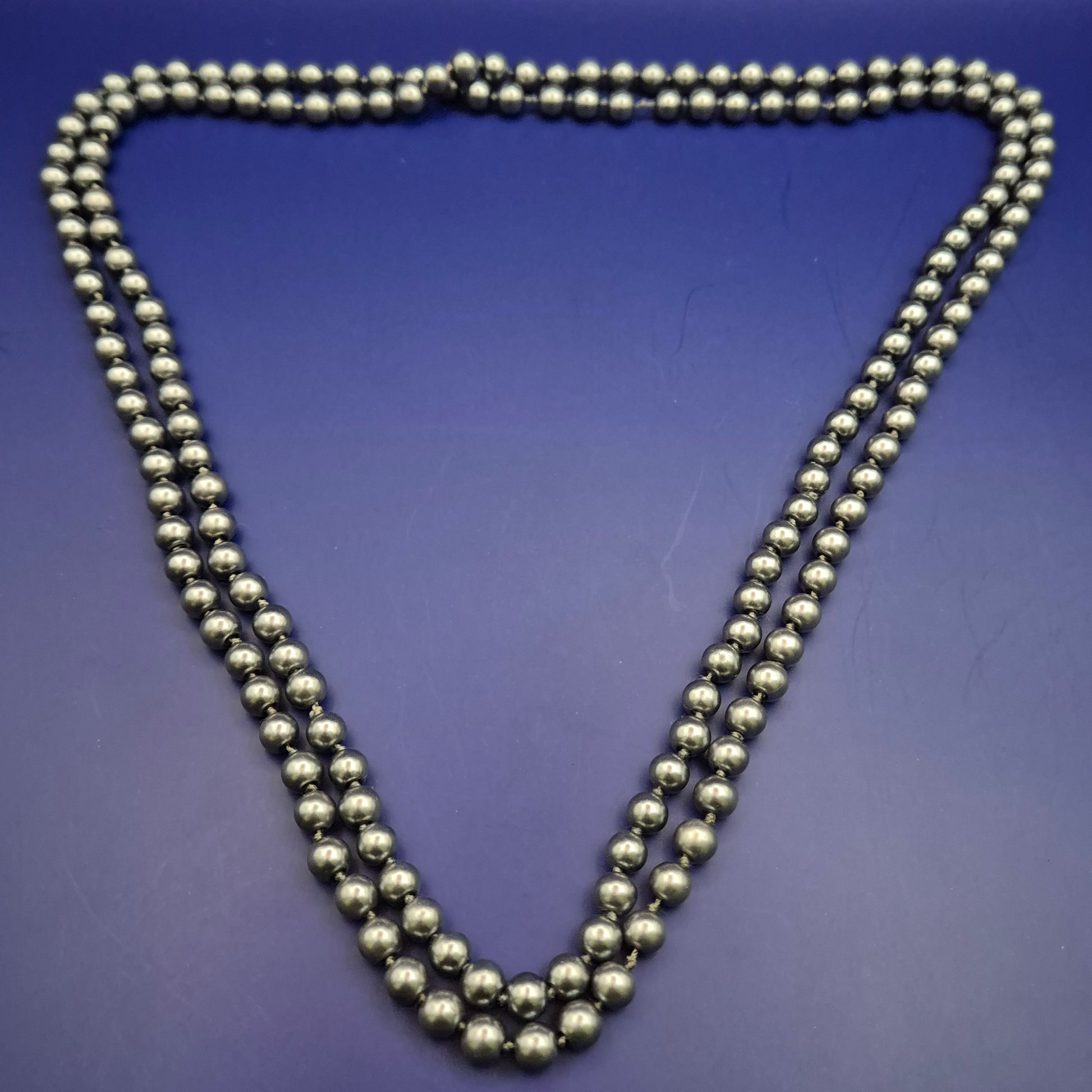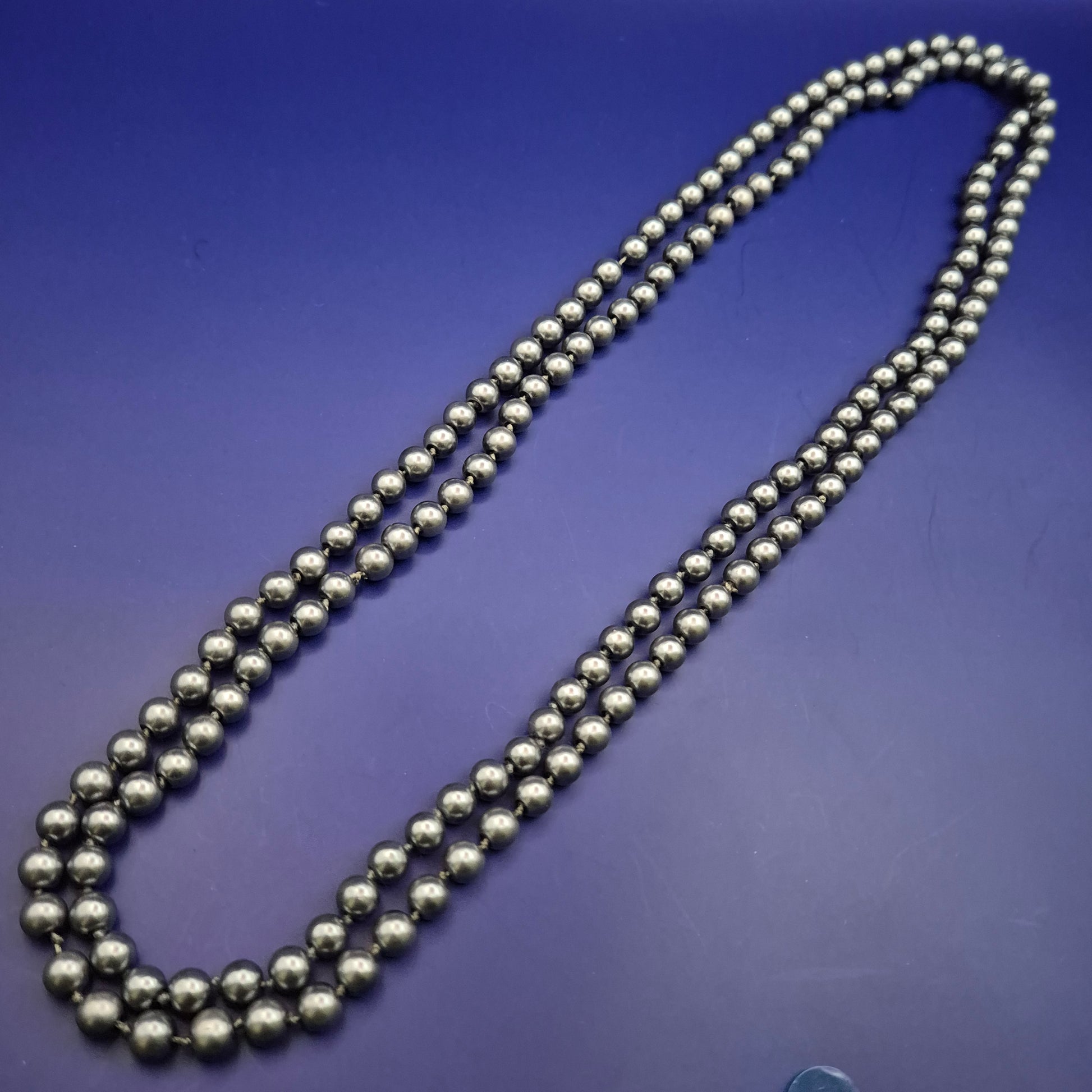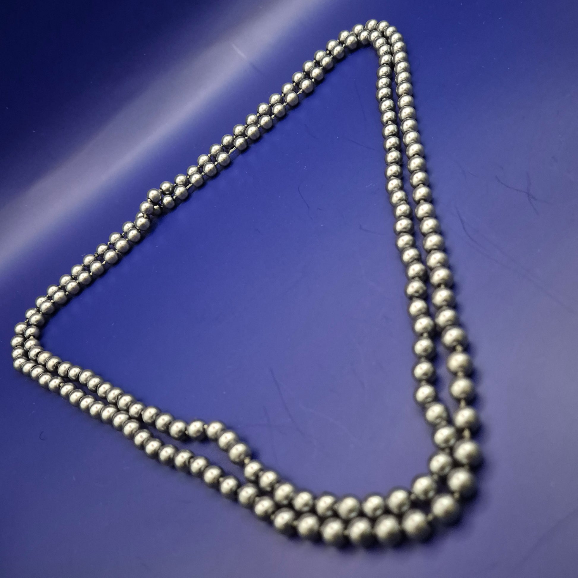 Lange Hämatit-Kette – Glänzende, zweireihige Kugelkette