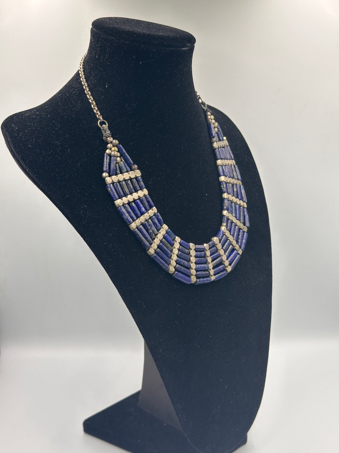 Verleihen Sie Ihrem Look eine Prise Raffinesse und setzen Sie mit diesem Lapis Lazuli Collier ein unverwechselbares Statement. Entdecken Sie die zeitlose Schönheit und den Charme dieser einzigartigen Kreation noch heute!