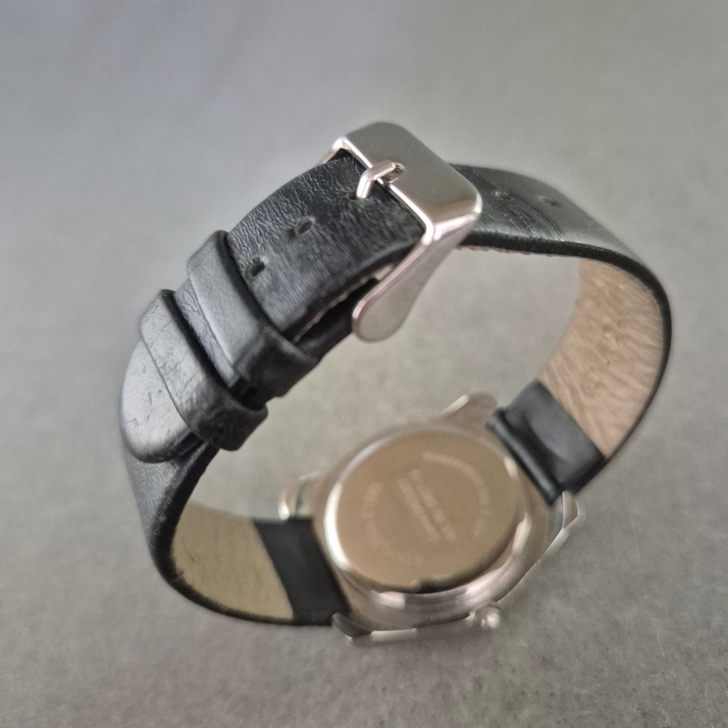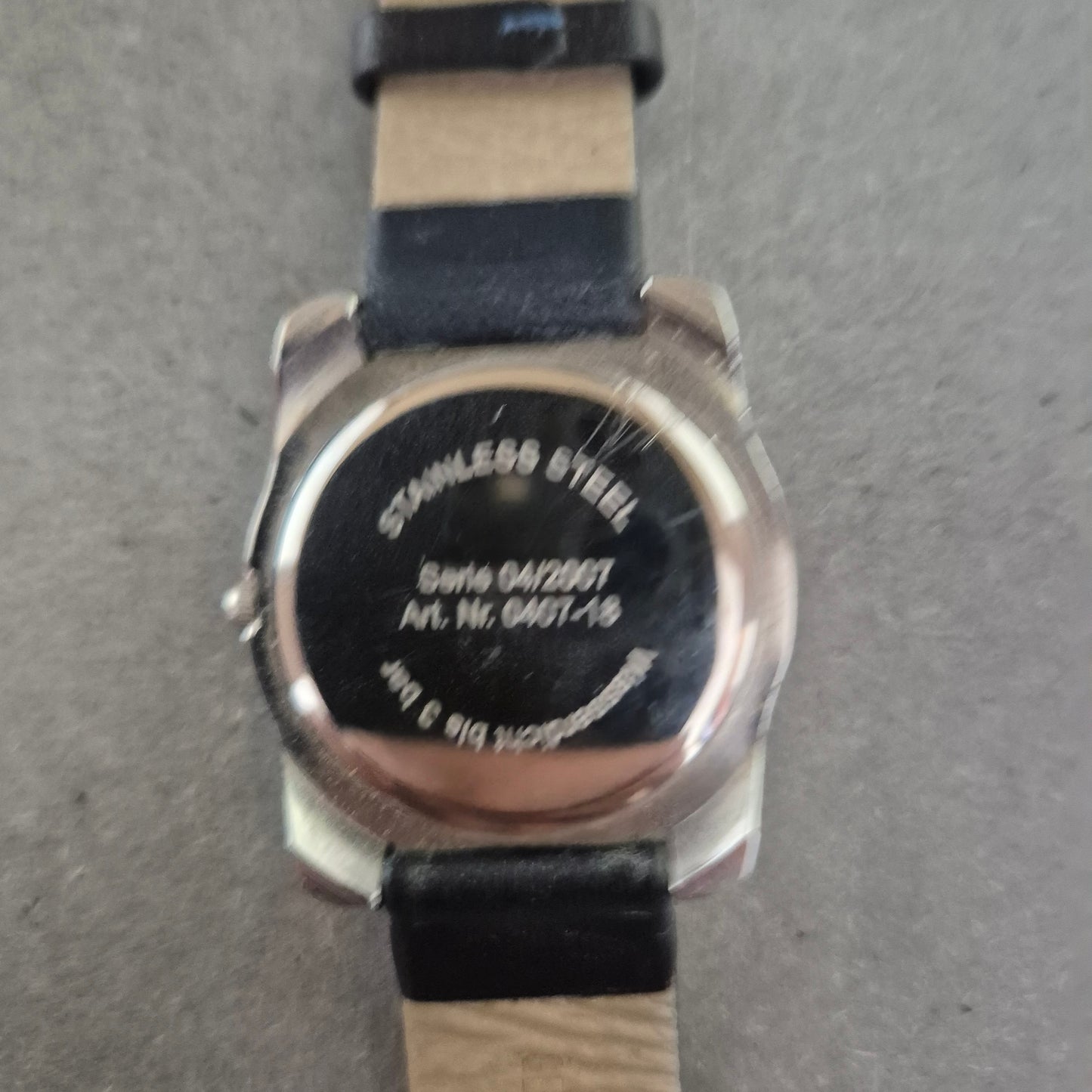 Material: Edelstahlrückseite, Metallgehäuse, Kunstlederarmband