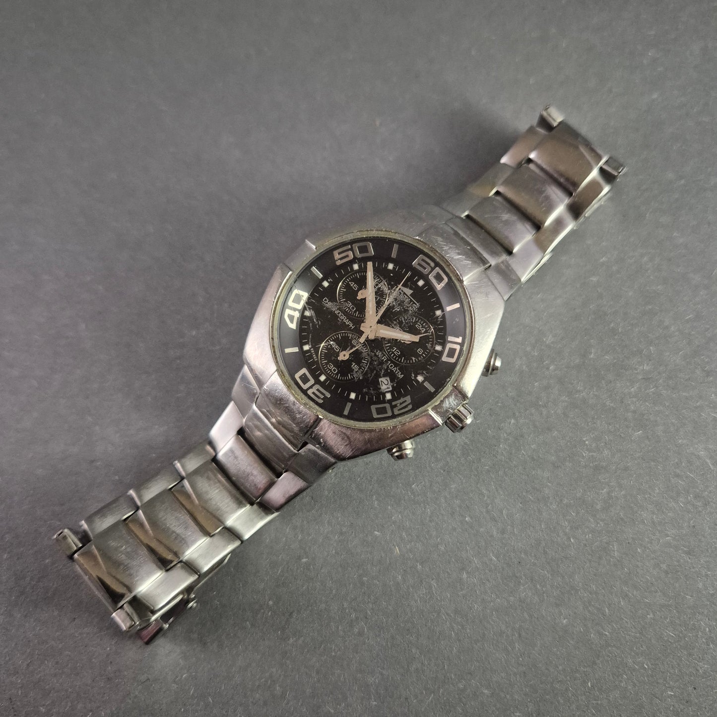 • Funktionen: Chronograph, Tachymeter, Datumsanzeige, Quarzwerk