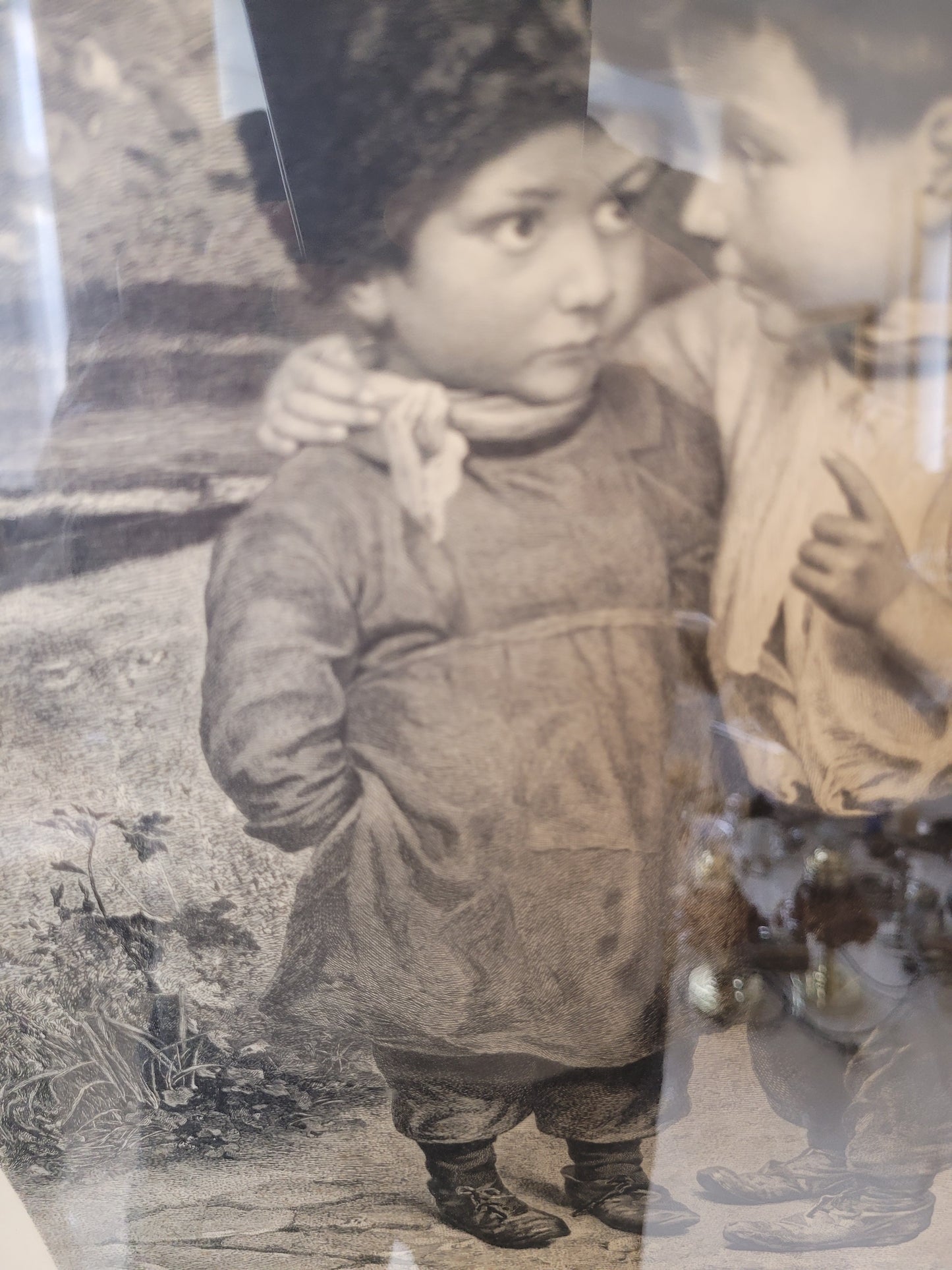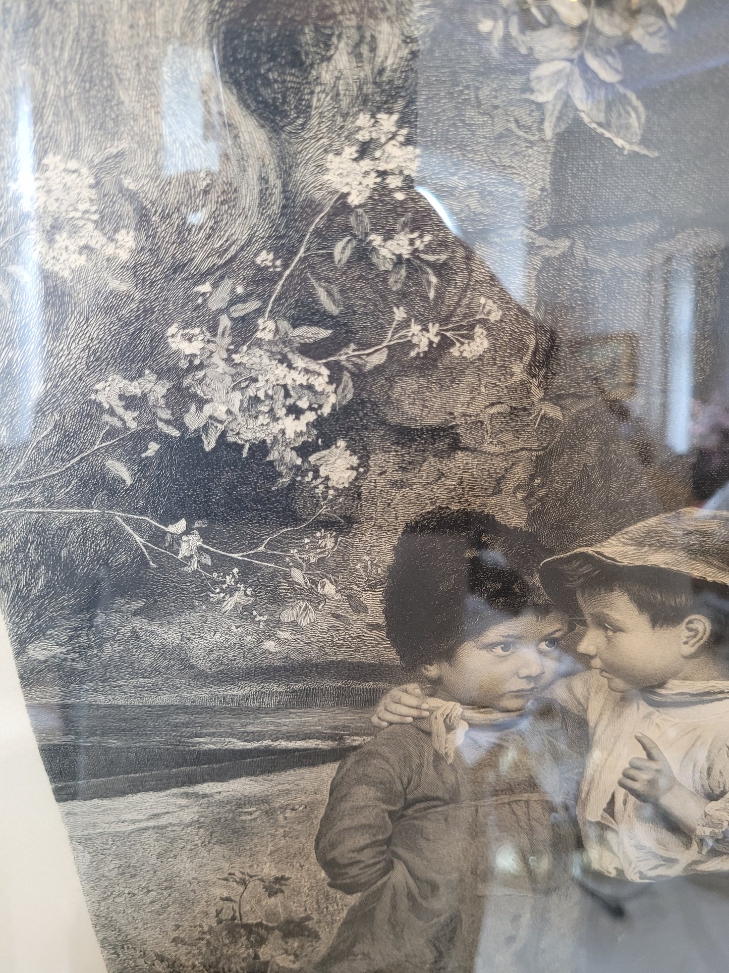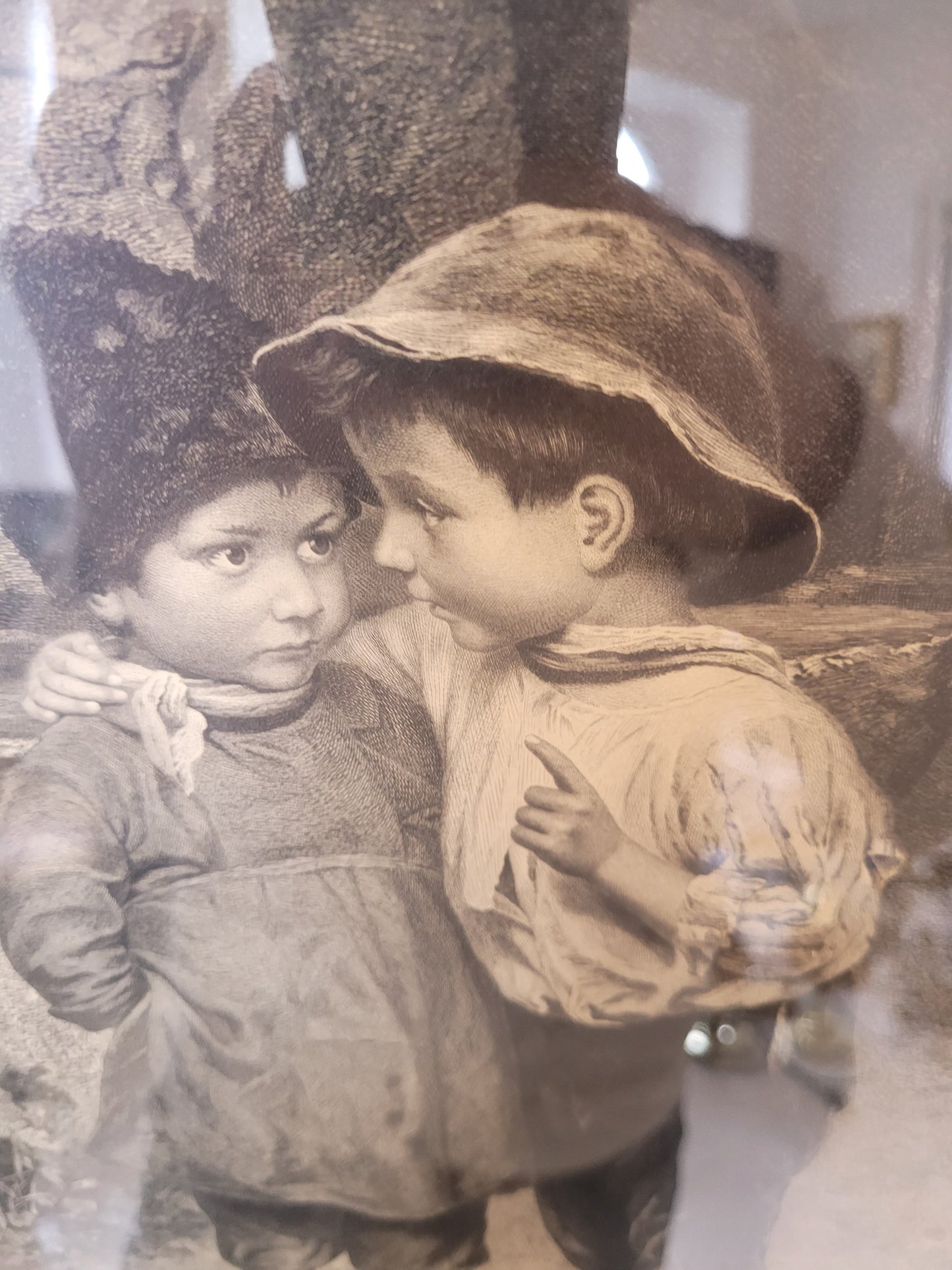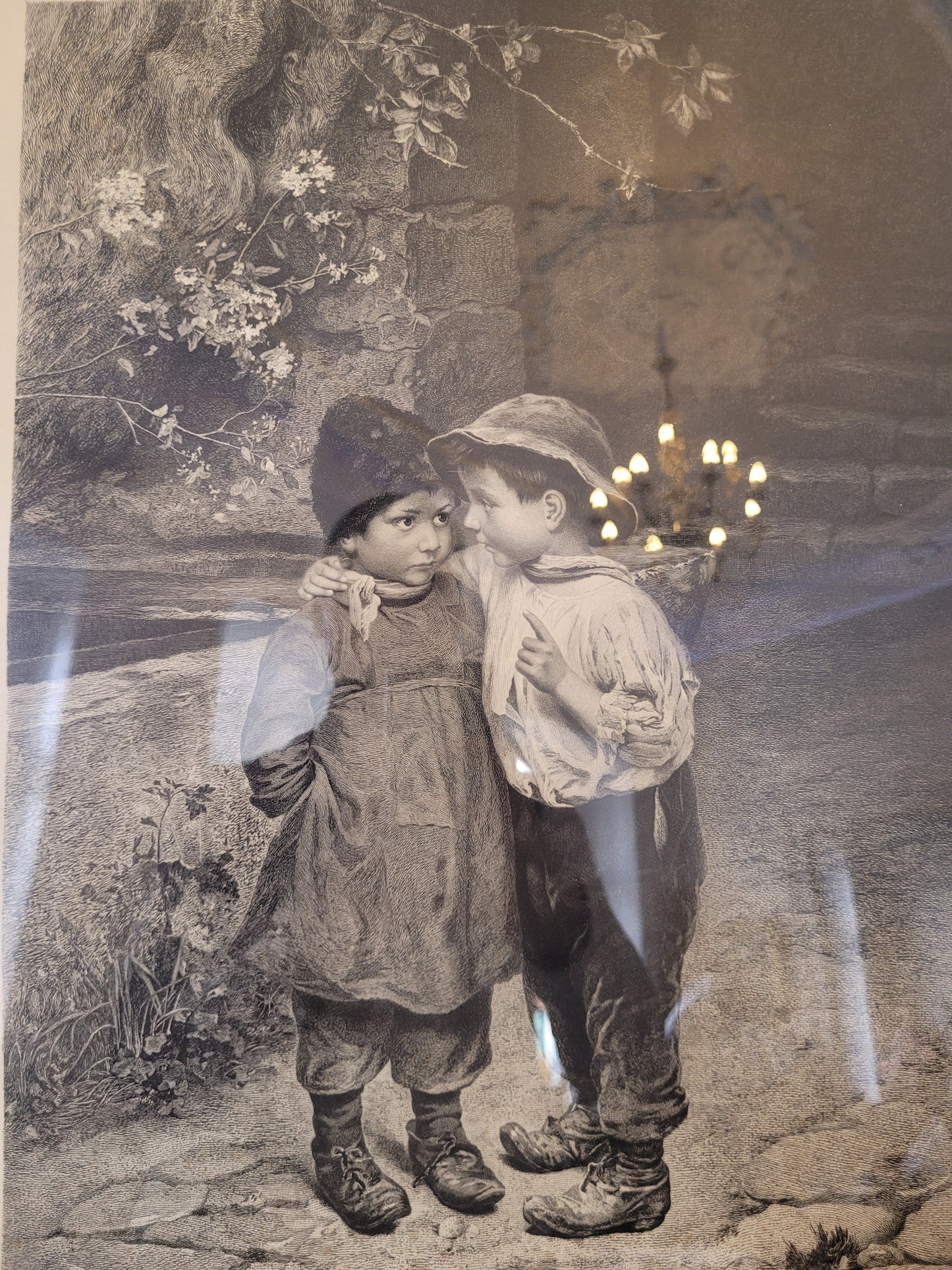 Dieser bezaubernde Kupferstich von Marie Wunsch zeigt eine intime und liebevolle Szene zweier Kinder, wobei eines dem anderen ein Geheimnis ins Ohr flüstert. Die detailreiche Darstellung und die sanfte Linienführung machen dieses Werk zu einem besonderen Highlight. Der Stich ist in sehr gutem Zustand und wird von einem eleganten Rahmen ergänzt, der die Anmut und Feinheit des Motivs unterstreicht. Ein wunderschönes Stück für Kunstliebhaber und Sammler.