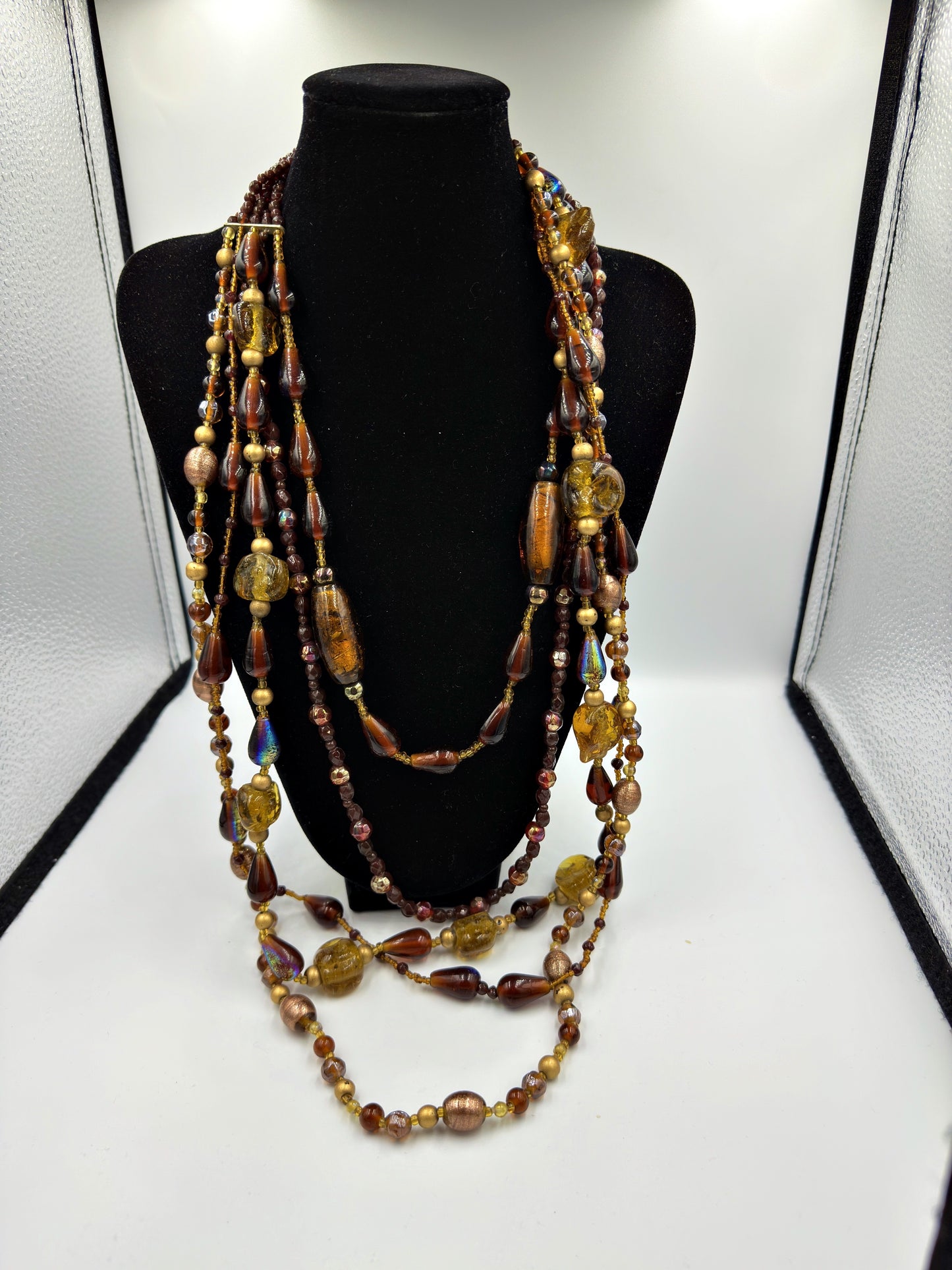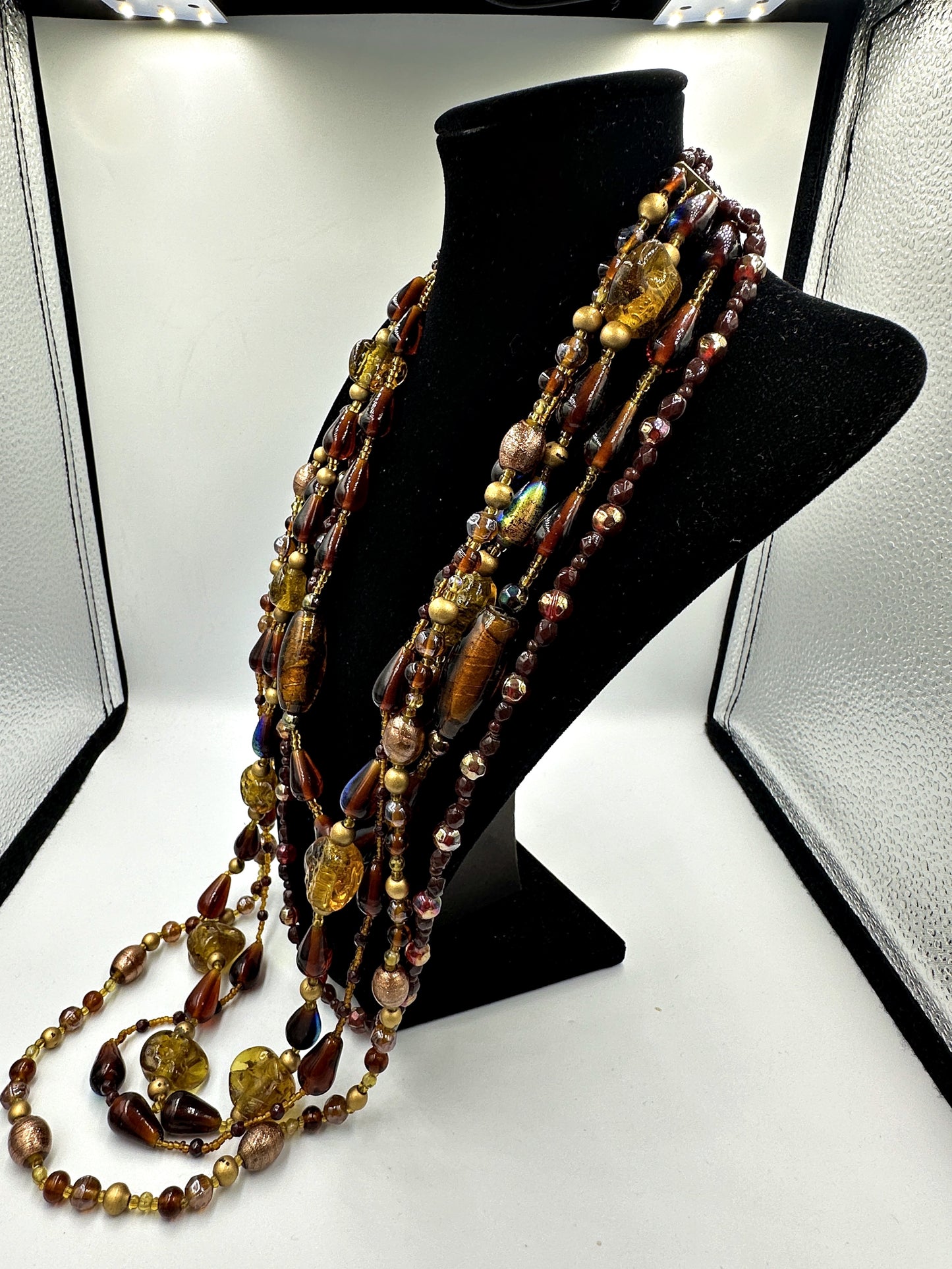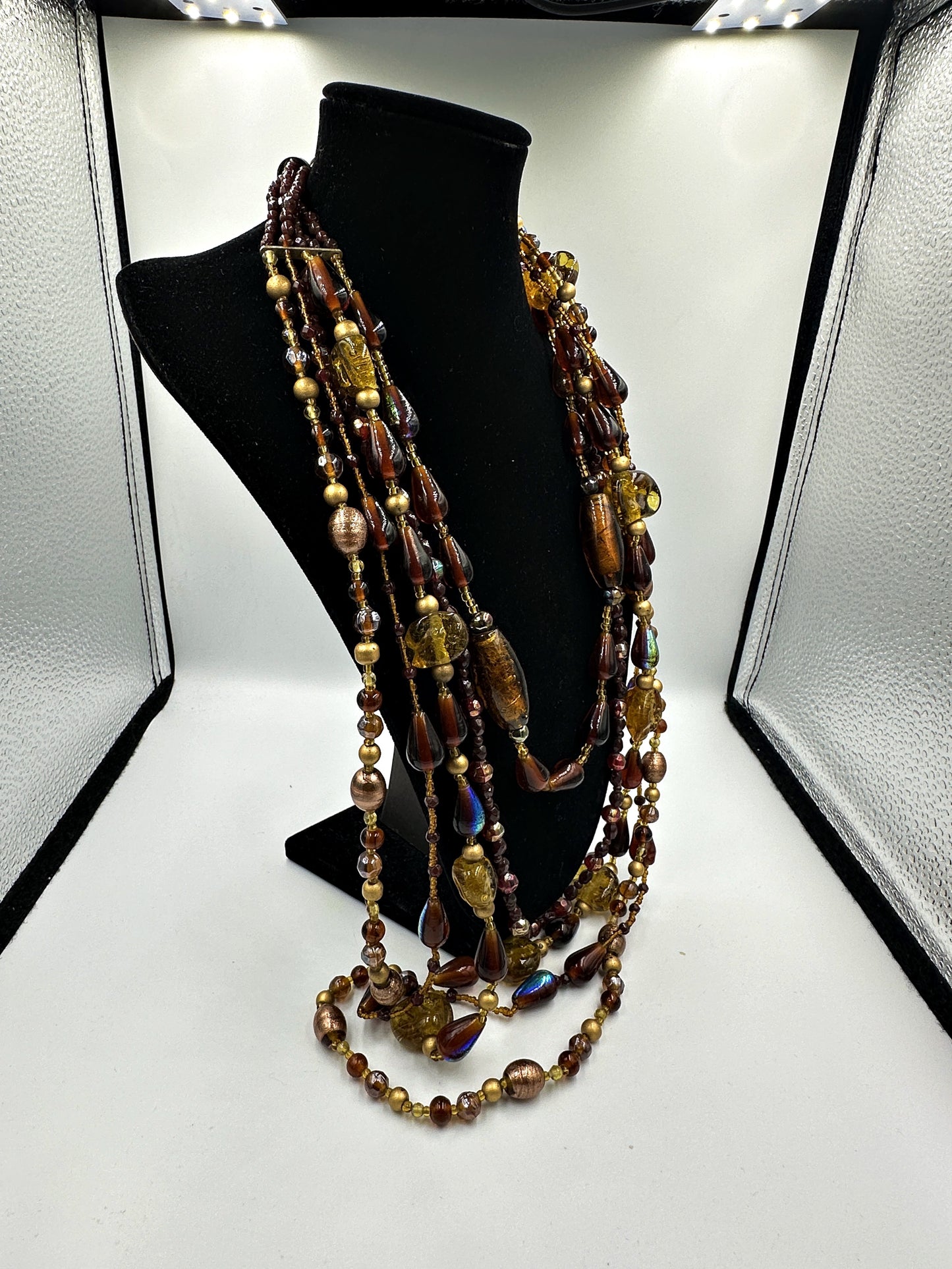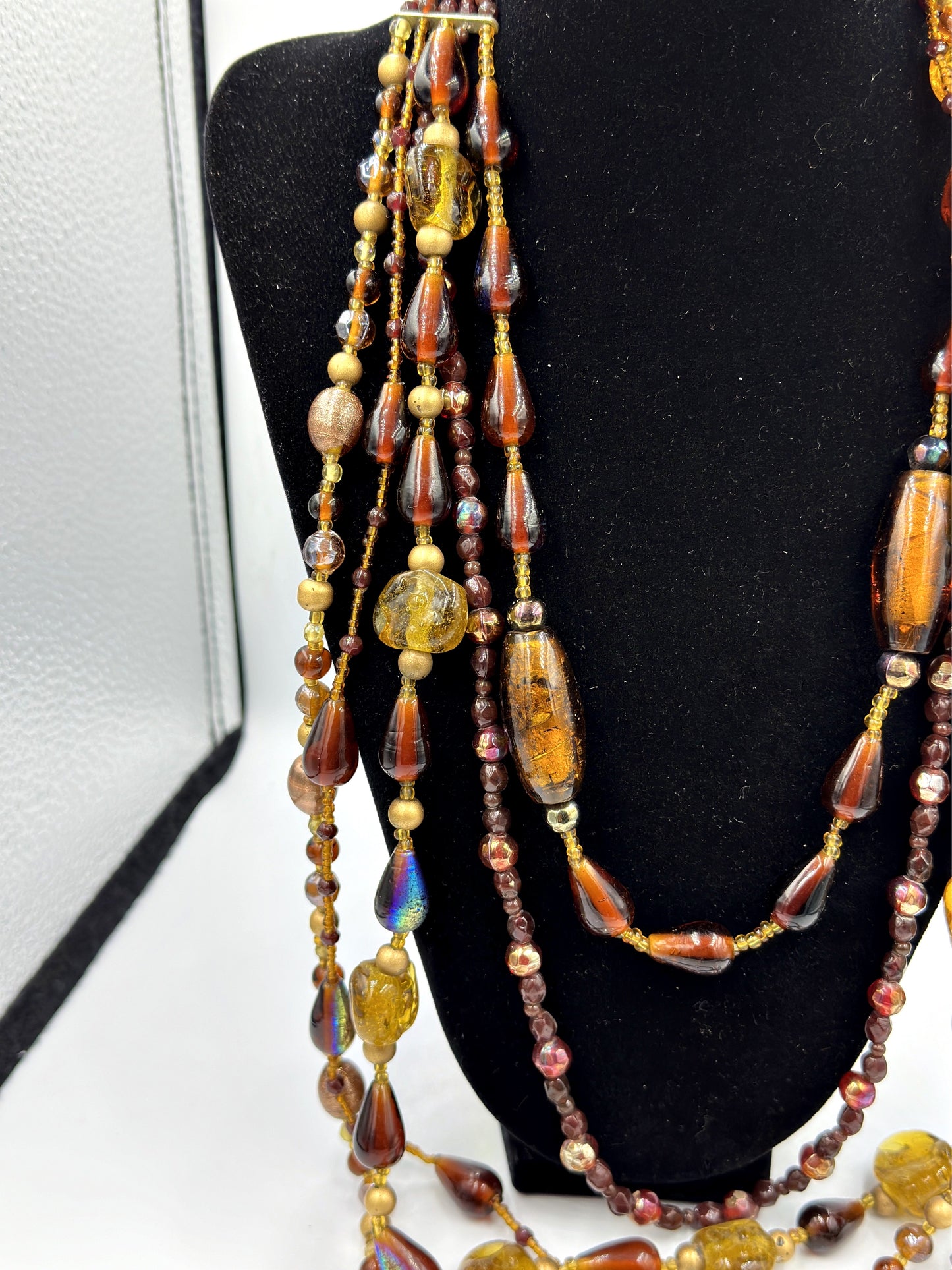 Mehrfädige Vintage-Glasperlenkette in Schichten