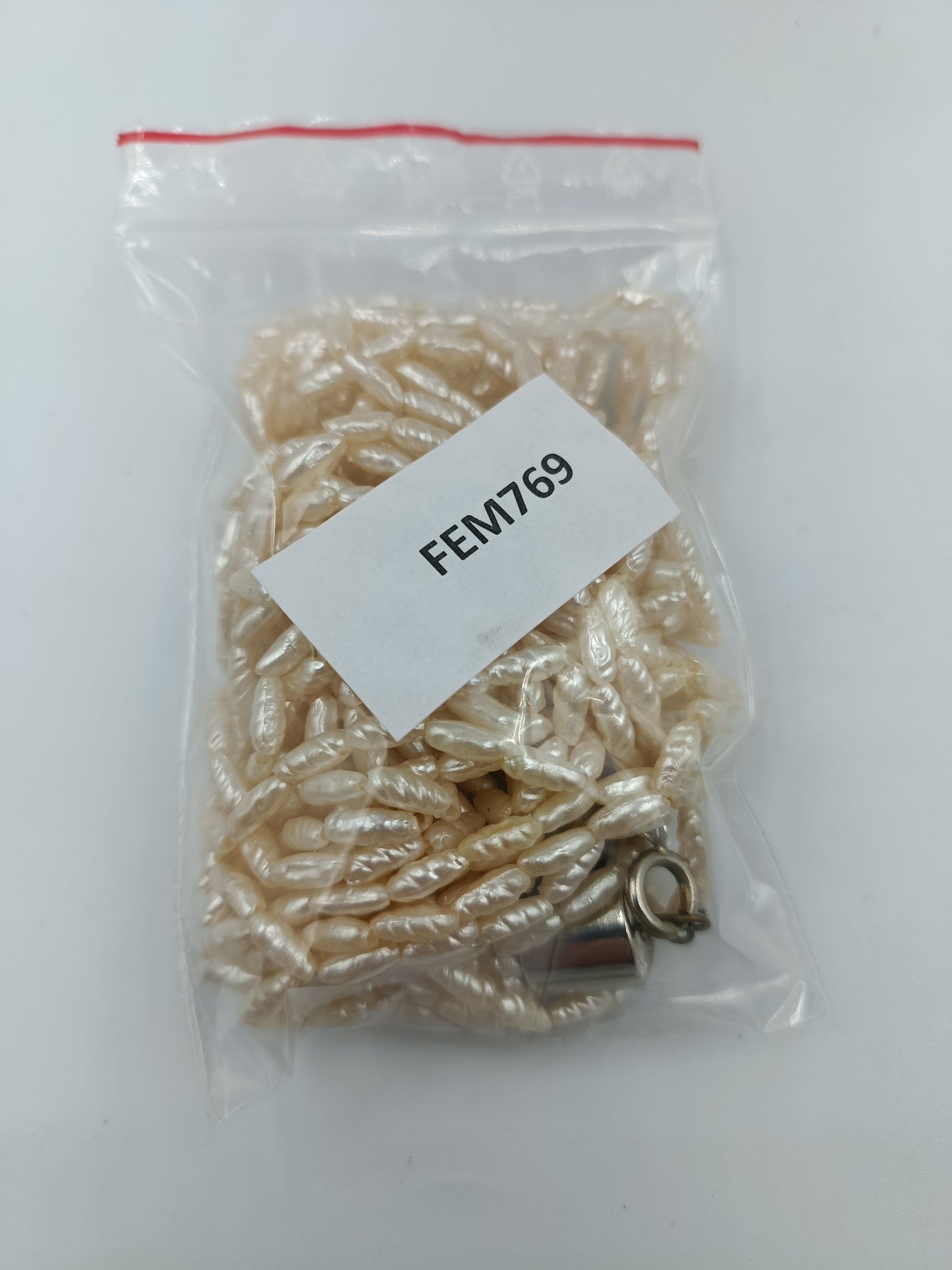 • Material: Kunststoffperlen mit Perlglanz, Metallteile goldfarben