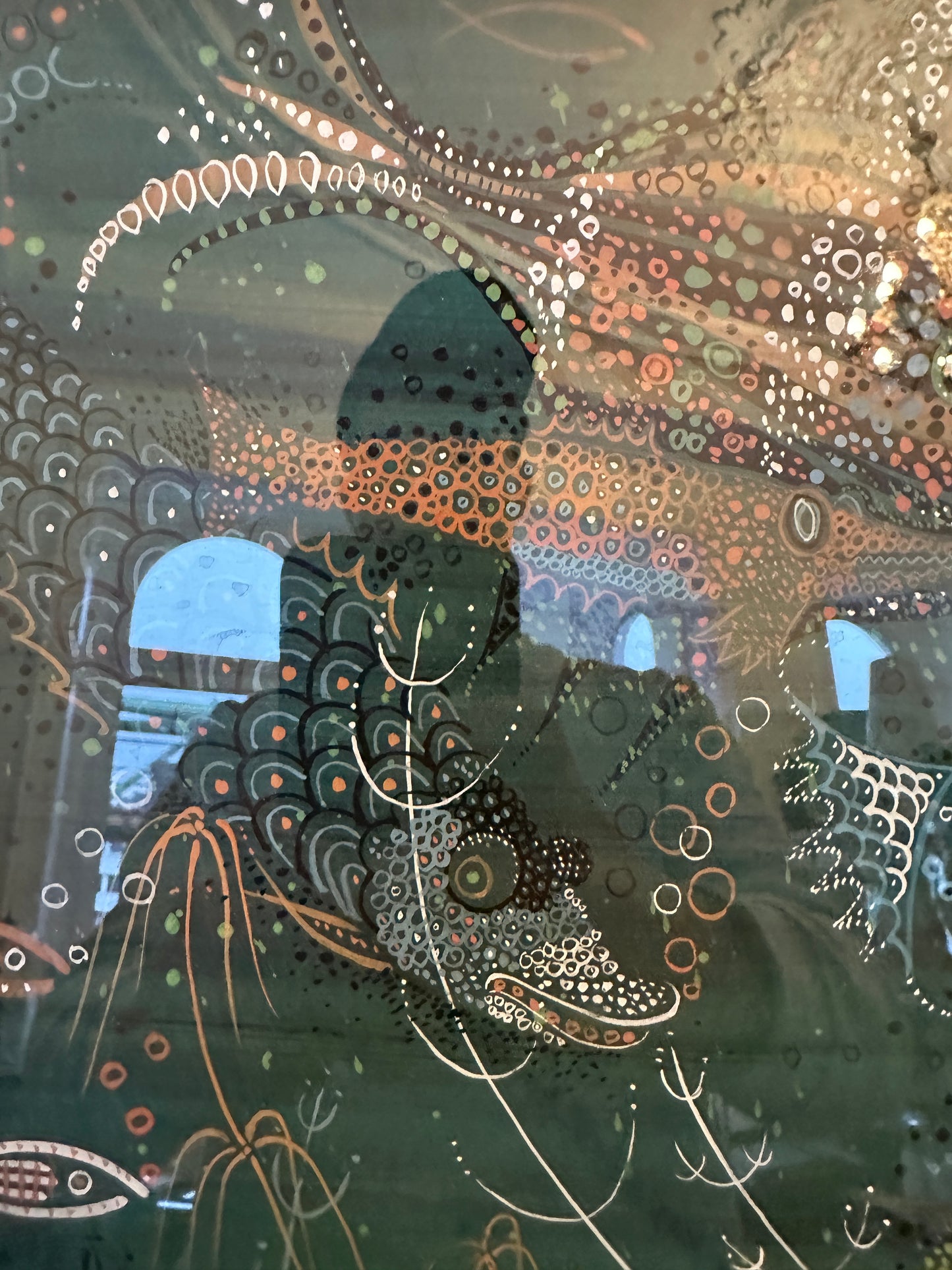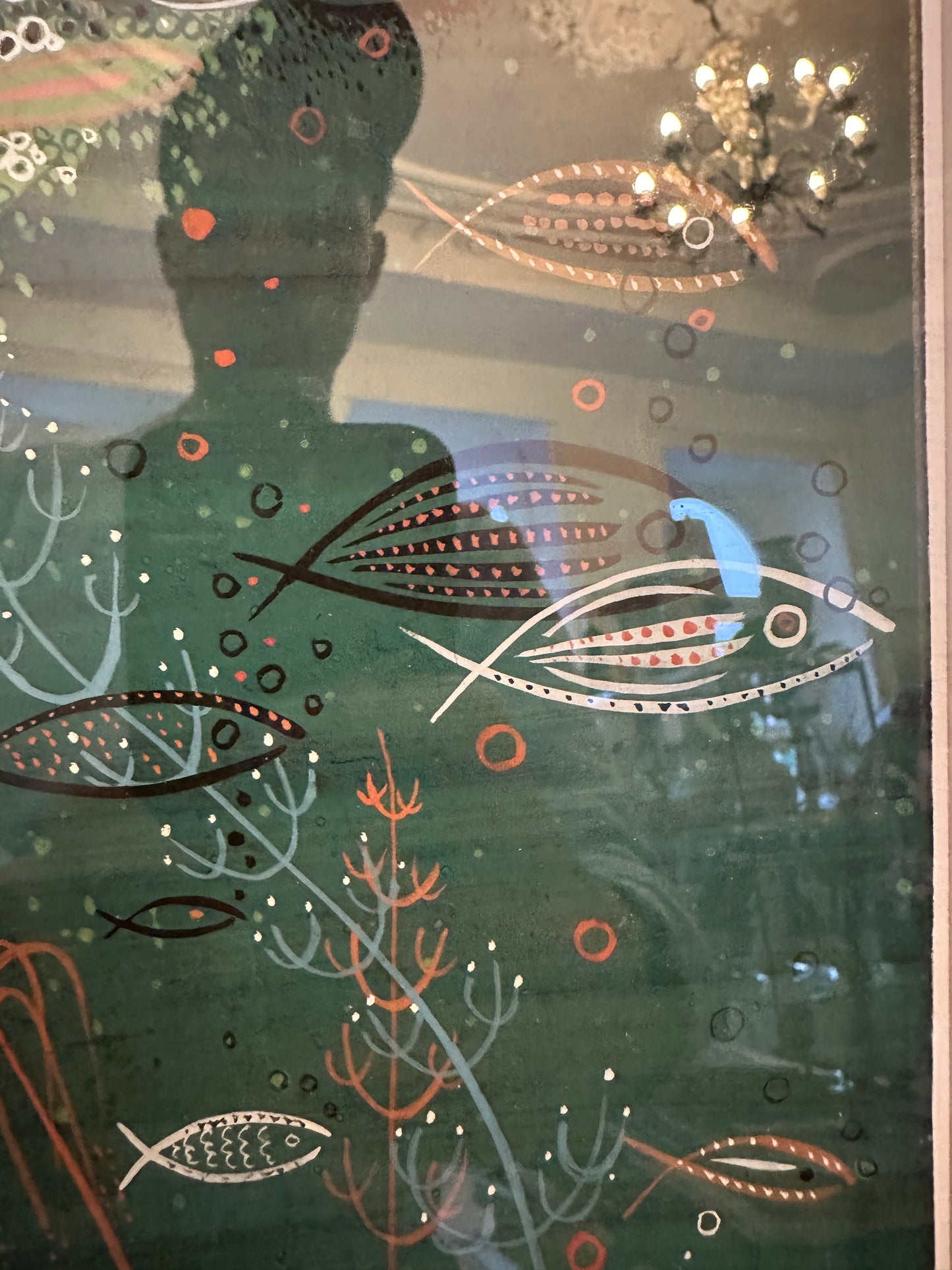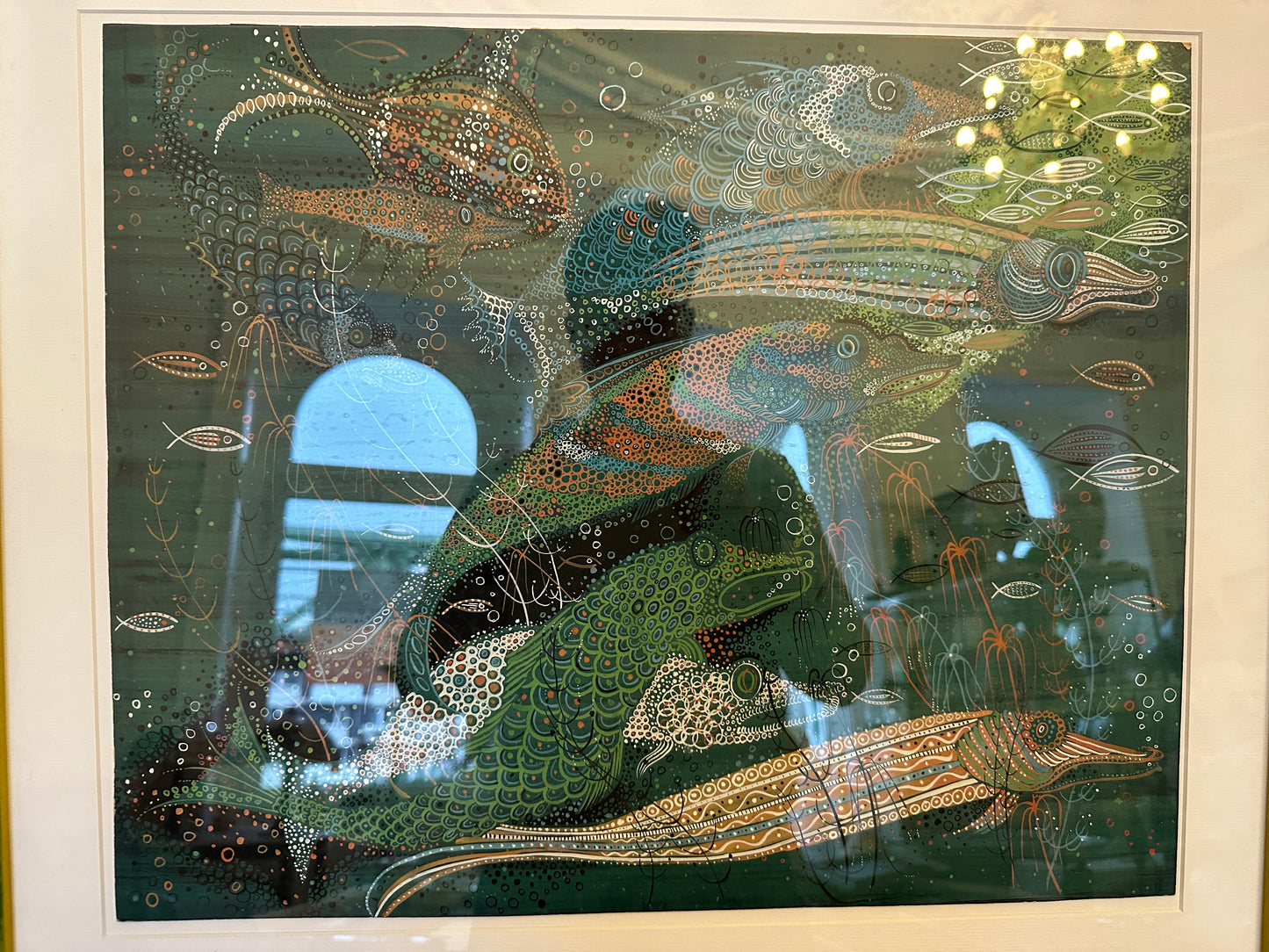 Moderne Grafik (XX) hinter Mueseumsglas Unterwasserwelt mit Fischen