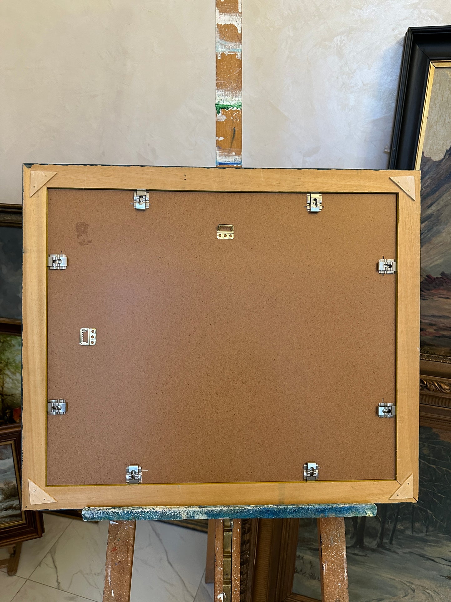 Die Maße von 58 x 68 cm (mit Rahmen) bzw. 41 x 48 cm (ohne Rahmen) machen diese moderne Grafik zu einem markanten Blickfang.