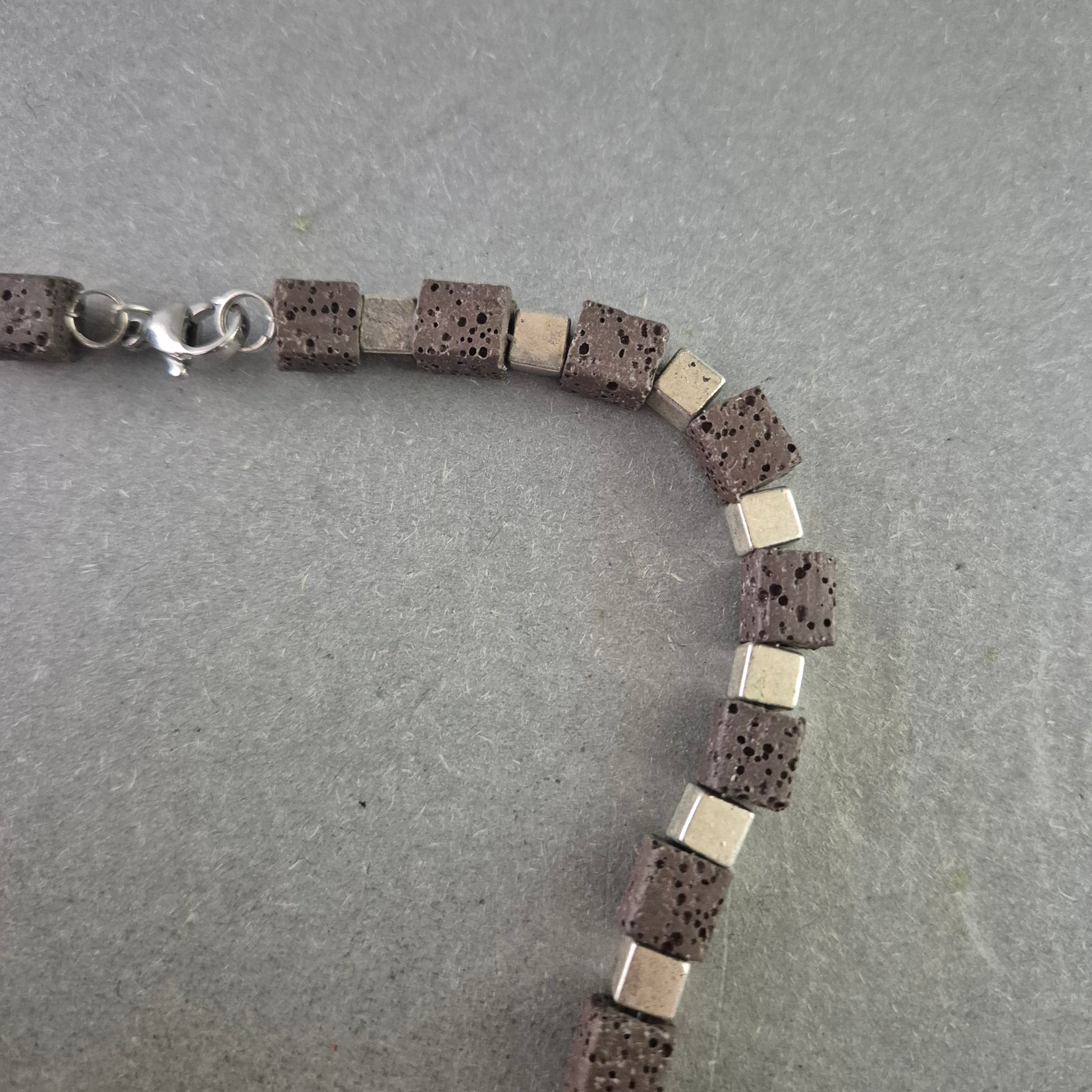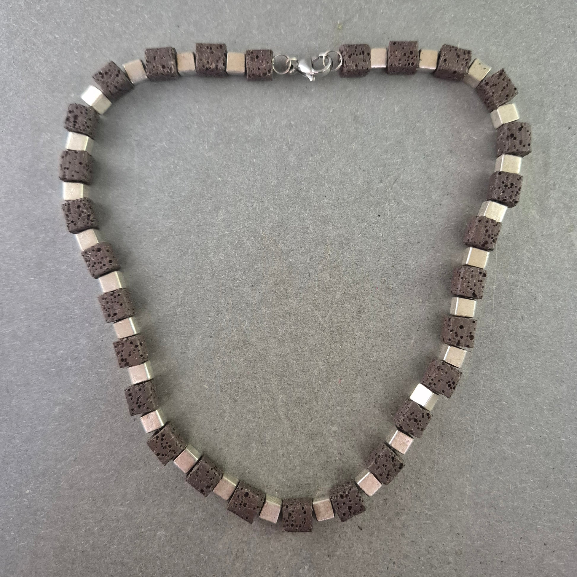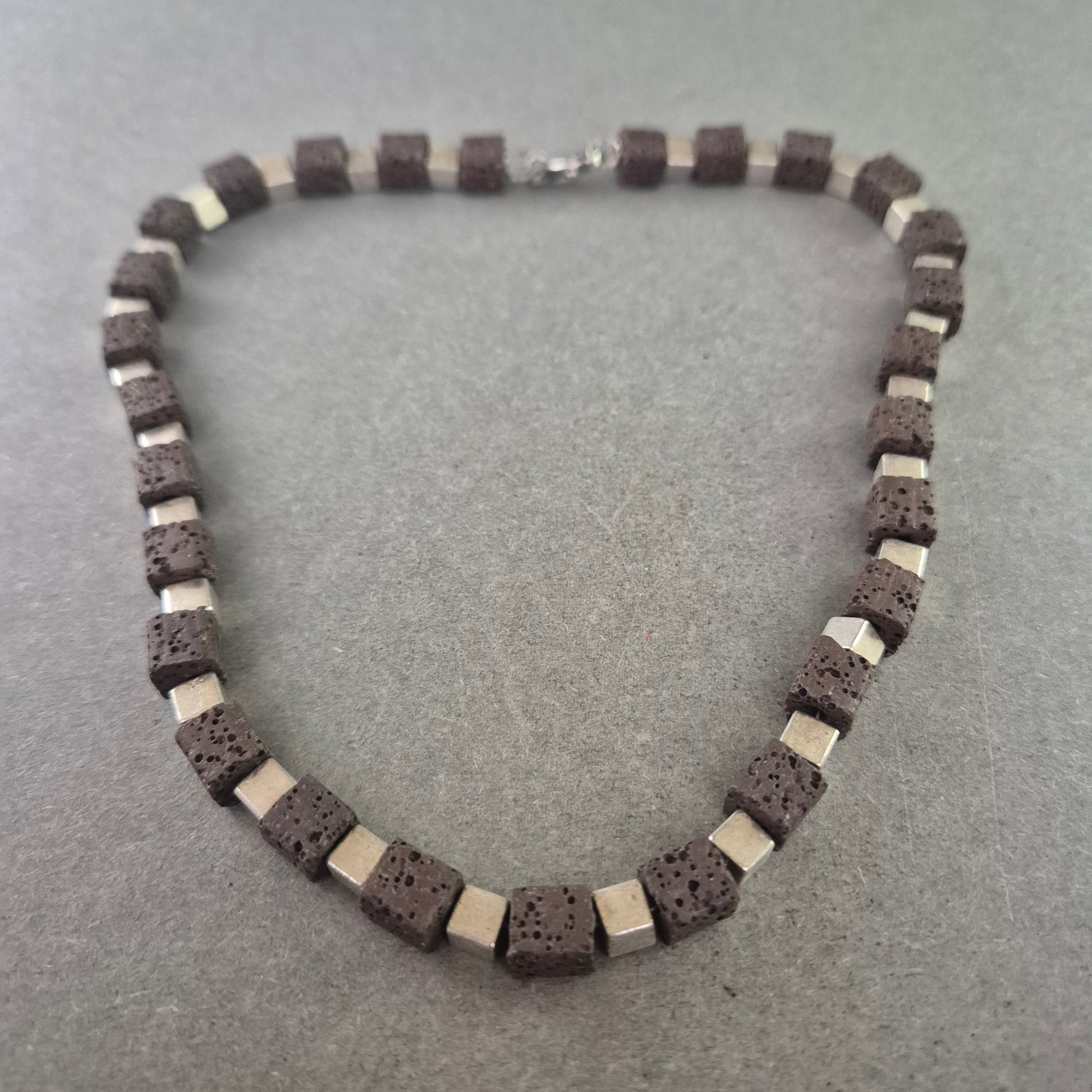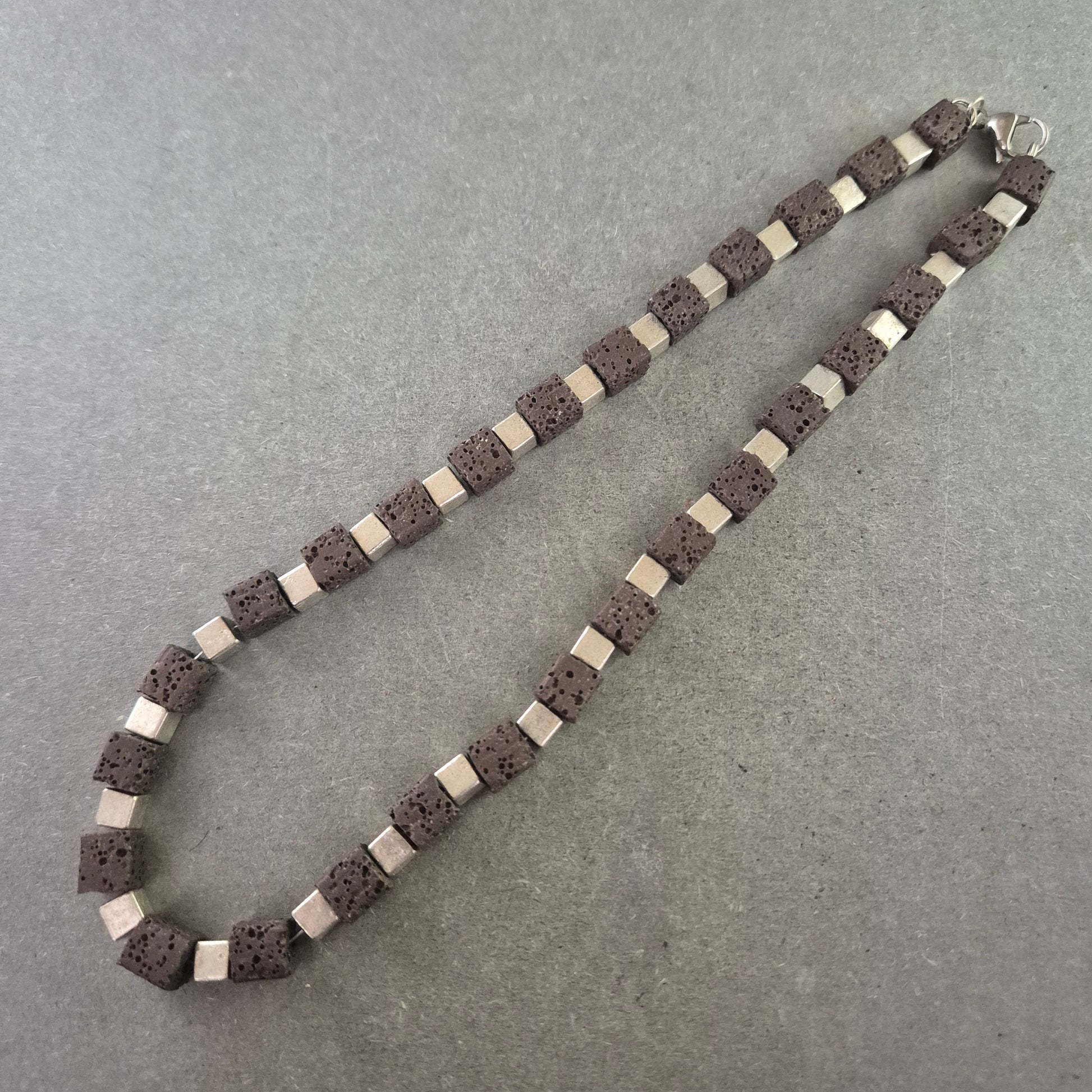 Modische Halskette mit Lava- und Metallwürfeln – Natur trifft auf Design