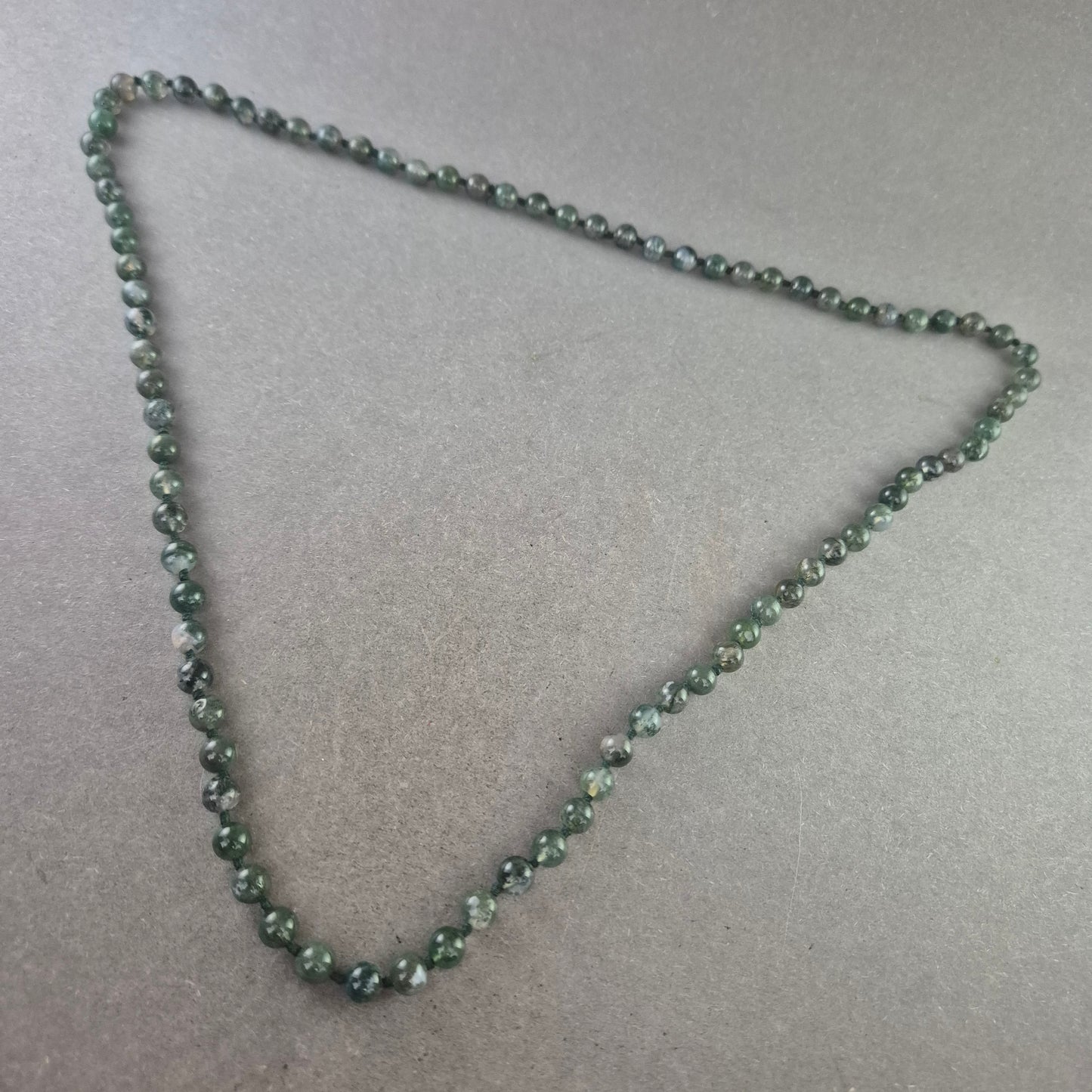 Diese Halskette aus echtem Moosachat vereint natürliche Schönheit mit harmonischer Farbgebung. Die rund geschliffenen, dunkelgrünen Edelsteine zeigen feine Musterungen in verschiedenen Nuancen – typisch für diesen besonderen Stein. Ideal für Naturfreunde, die schlichten Edelsteinschmuck mit Charakter bevorzugen.