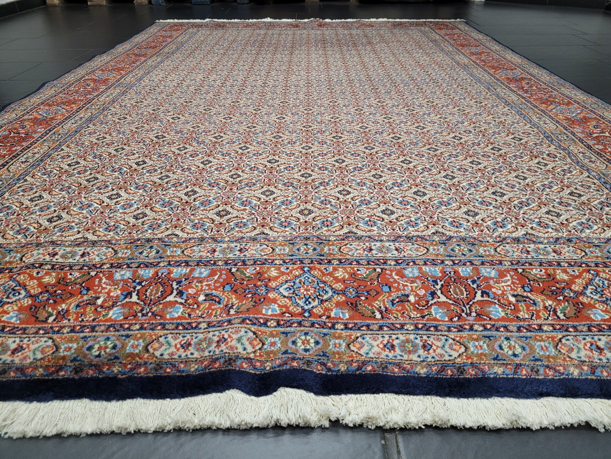 Exzellente Handarbeit mit feiner Linienführung und dichter Struktur. Ein hochwertiger Teppich, der Langlebigkeit und klassische Eleganz vereint – ideal für stilvolle Wohnräume oder repräsentative Einrichtungen.