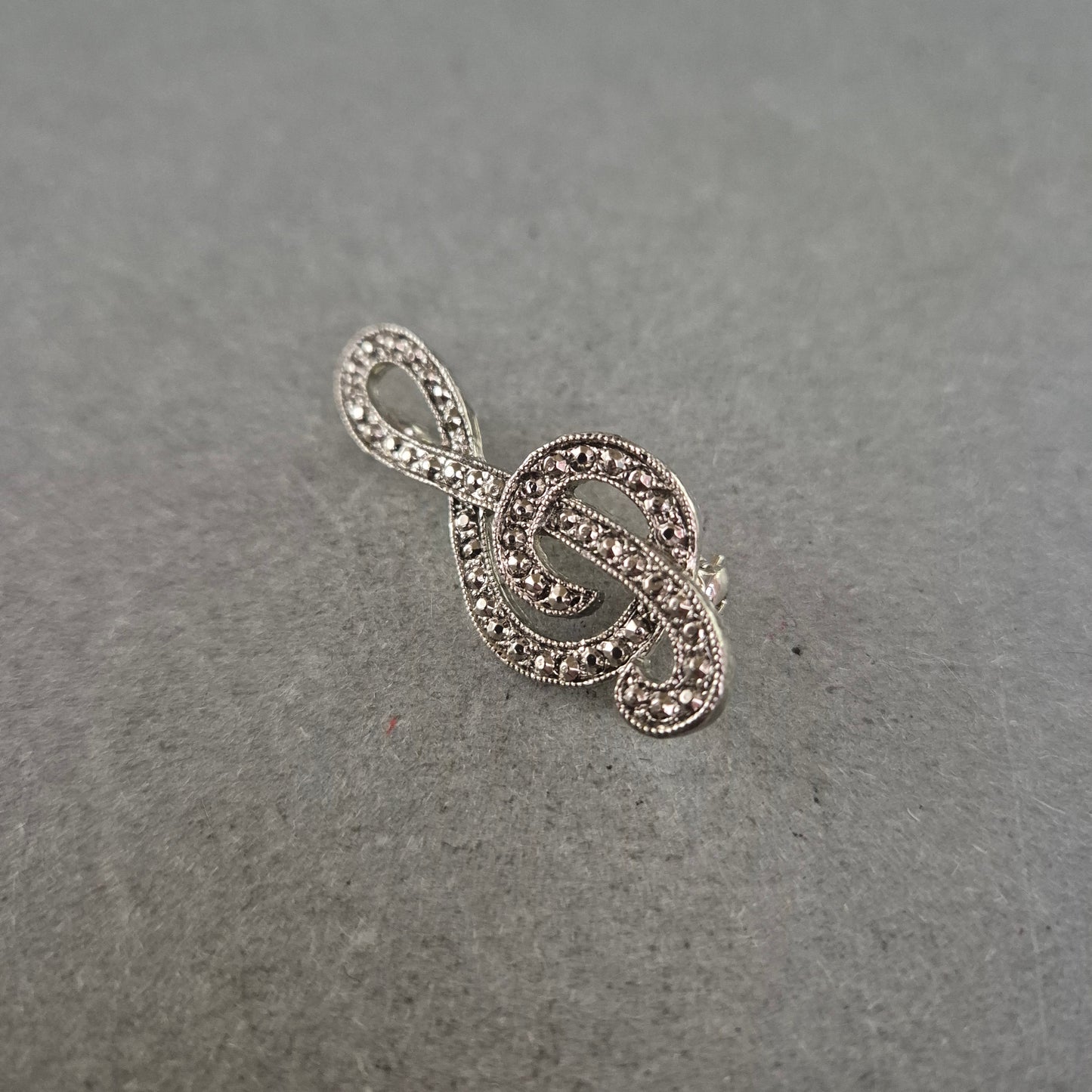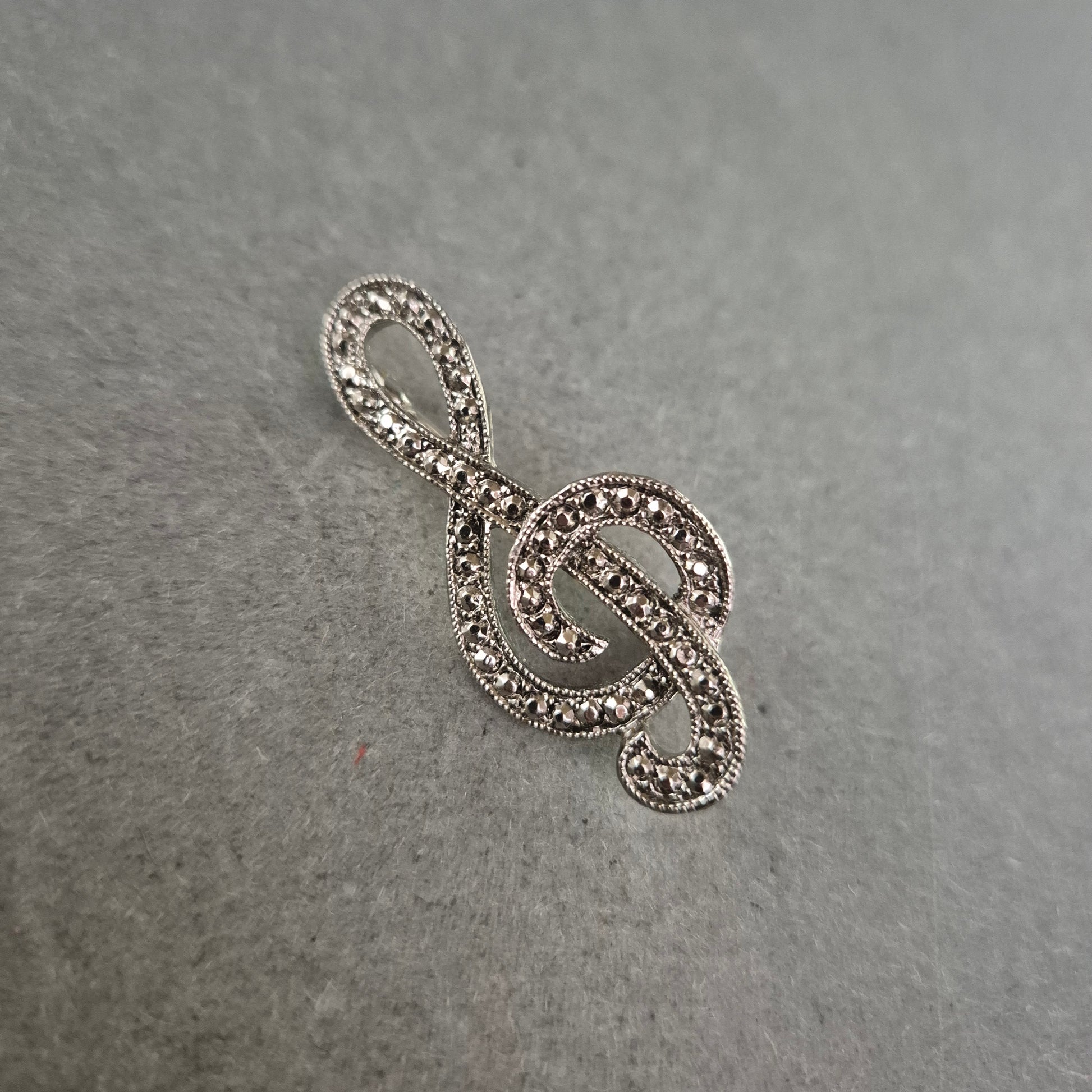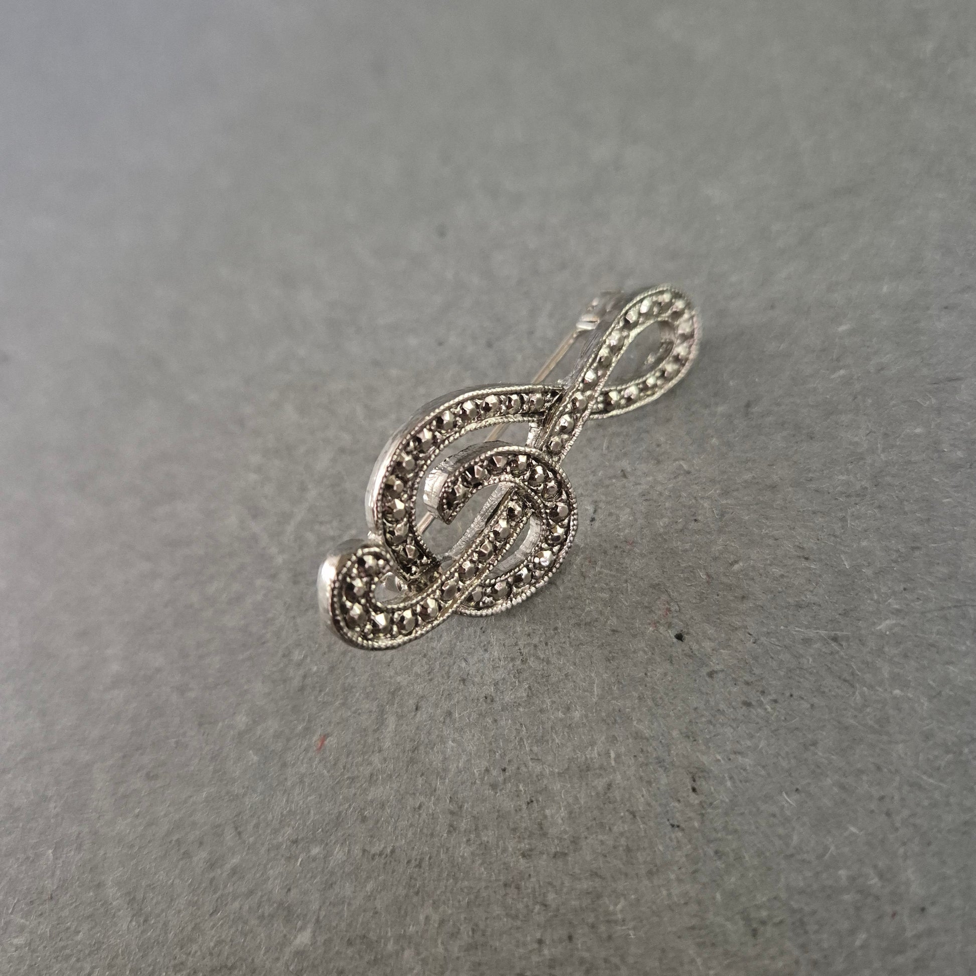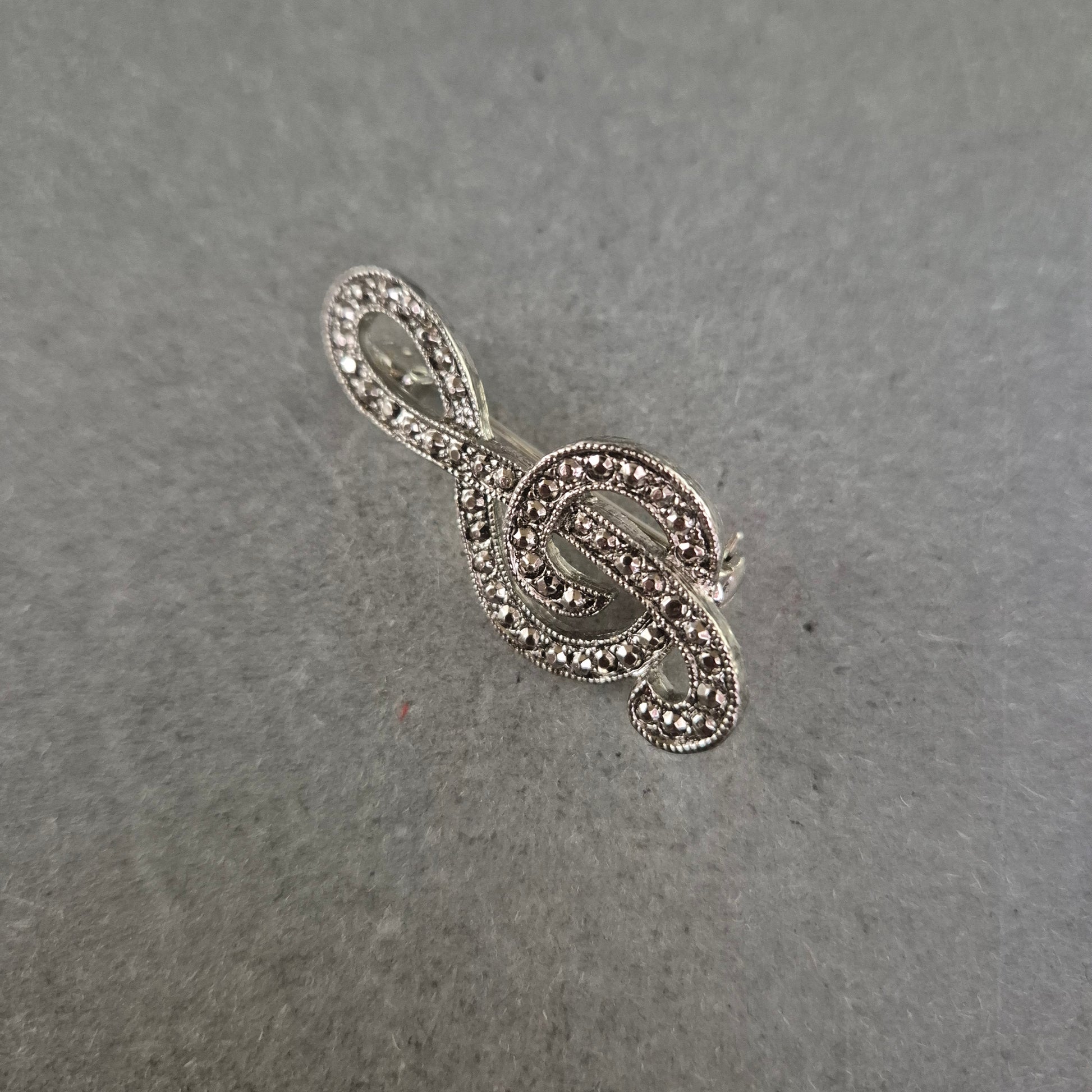 Musiknoten-Brosche im Silberlook mit Strass – Vintage Musikliebhaber-Stil