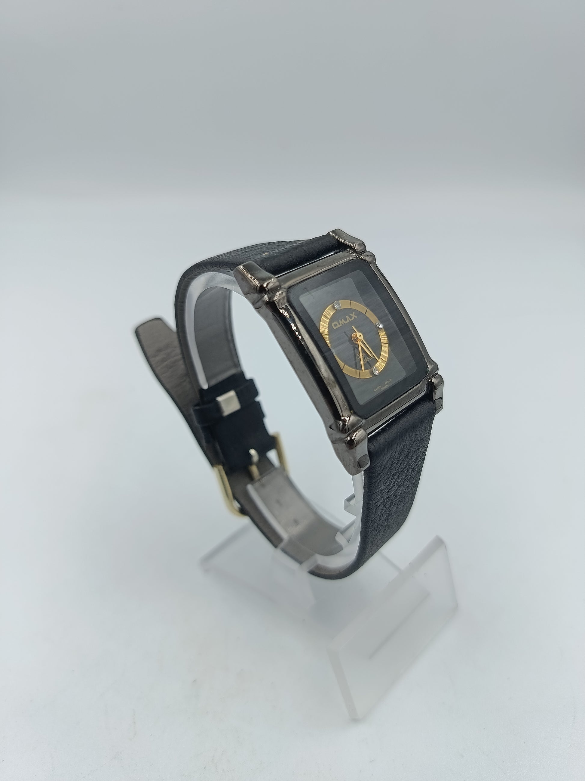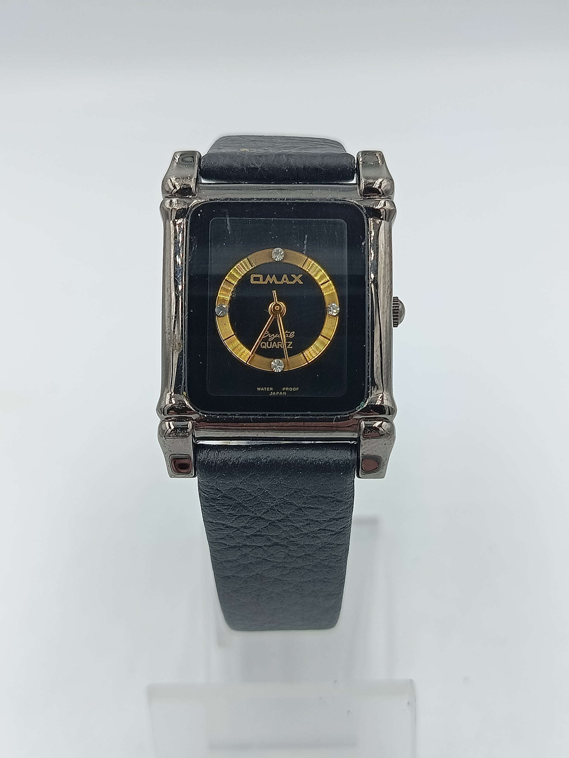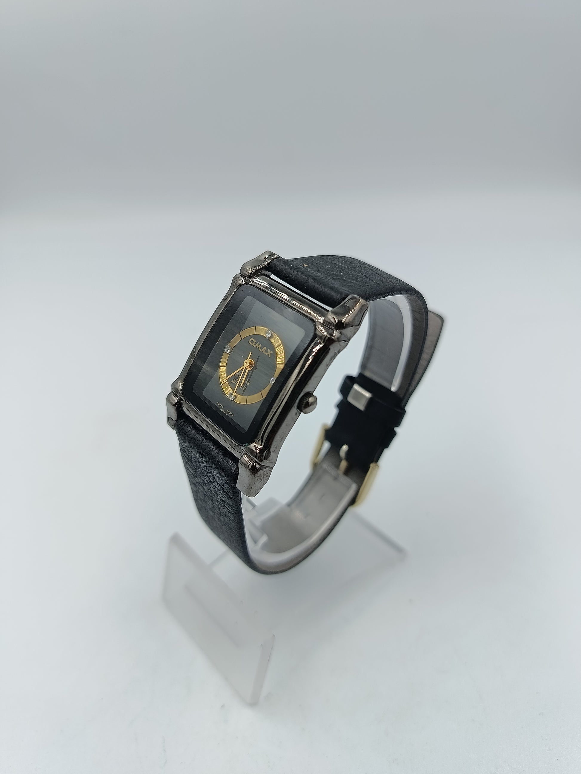 Omax Armbanduhr Schwarz Gold Rechteckig Lederband Elegant