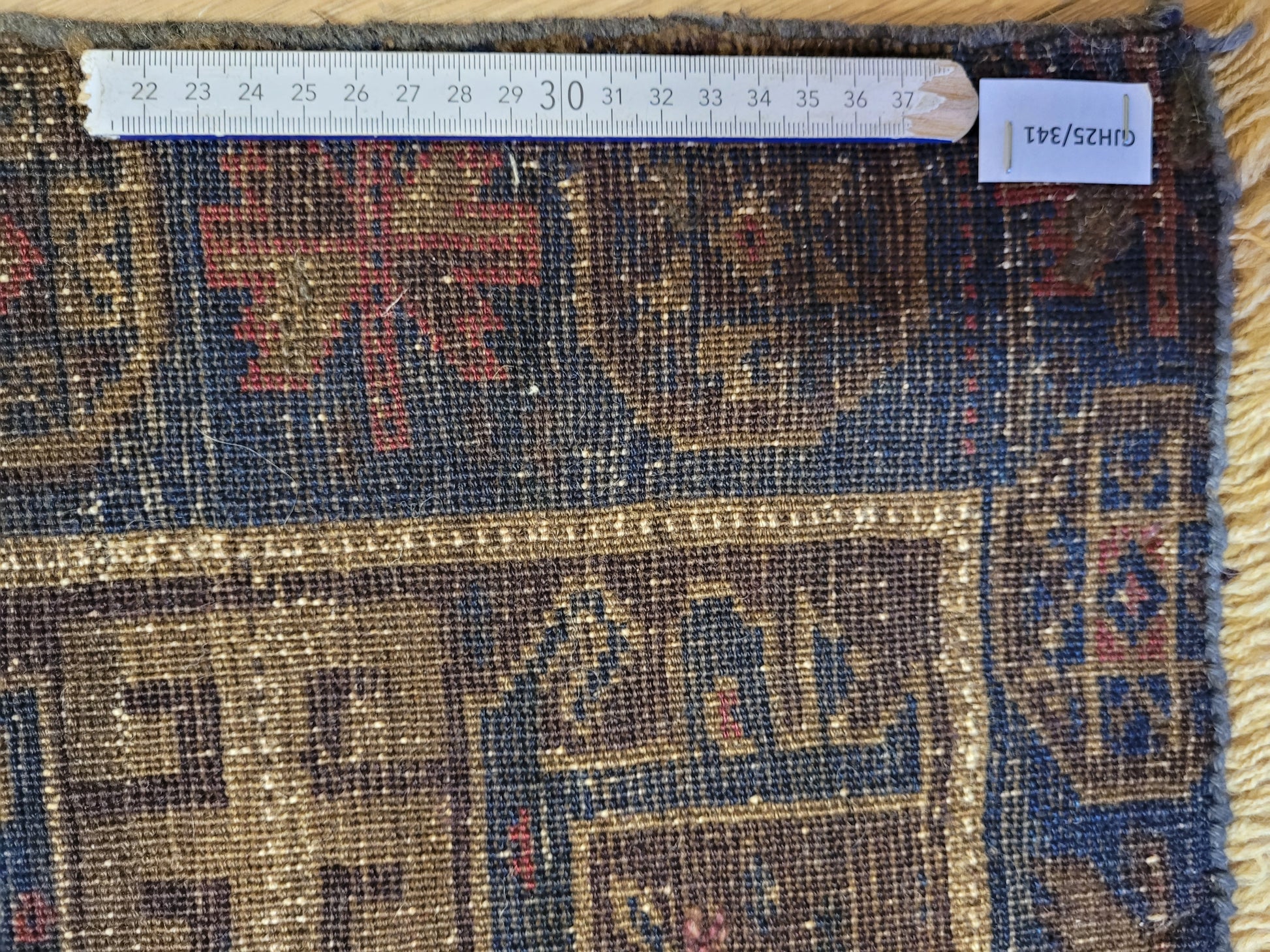 • Knüpfung: Fein gearbeitet, typische Beludj-Struktur
