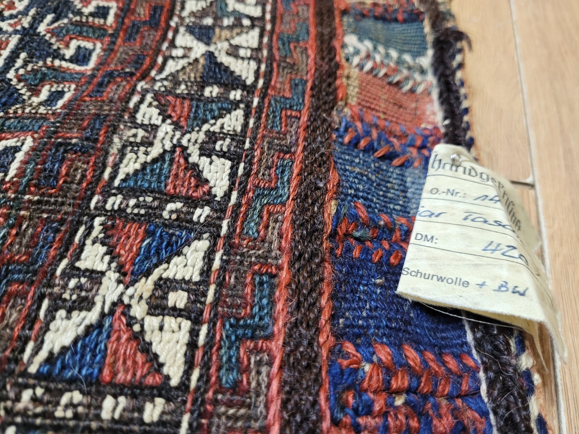 Technik: traditionelle Kelim-Taschenarbeit mit detailreicher Knüpfung