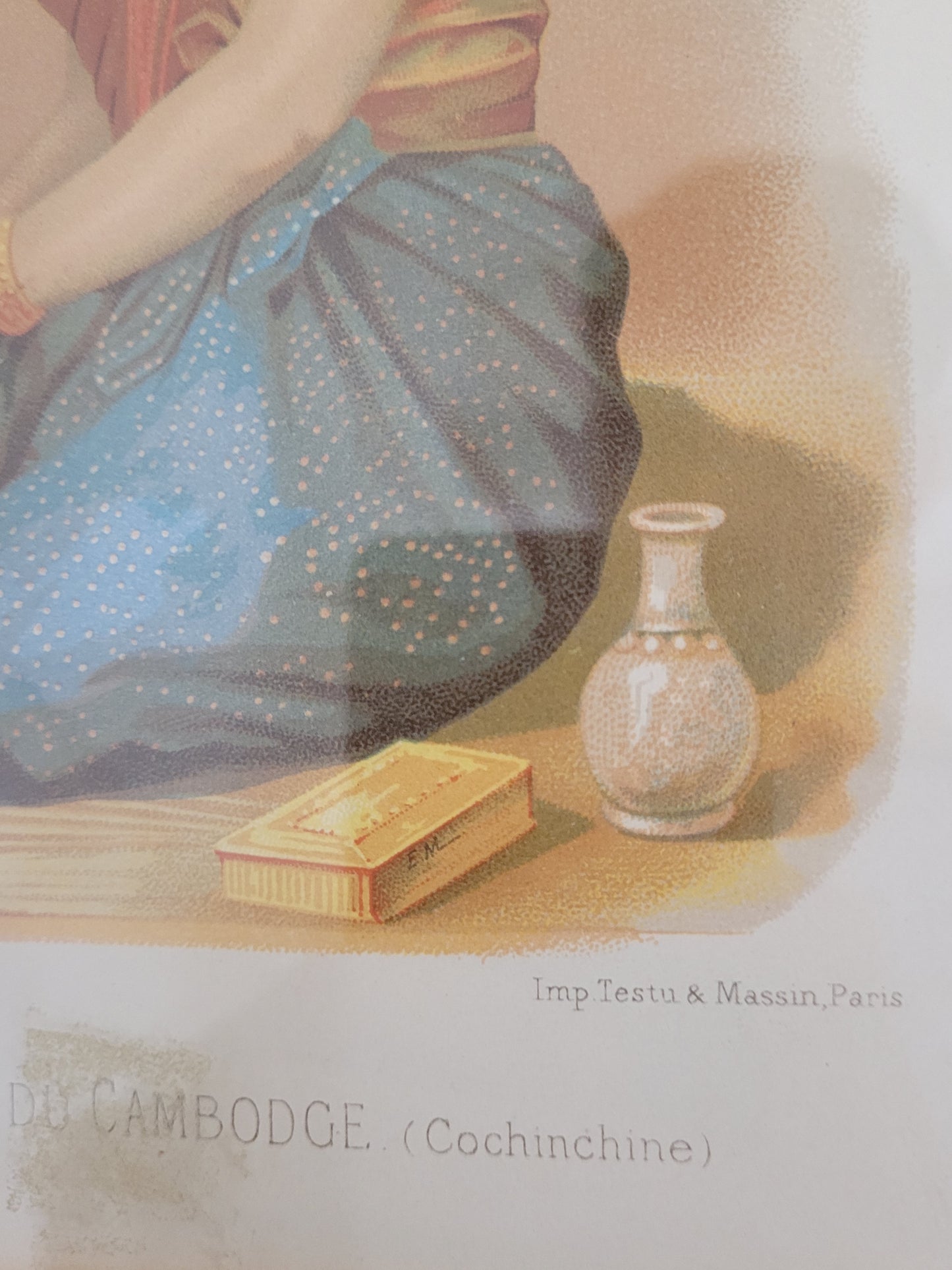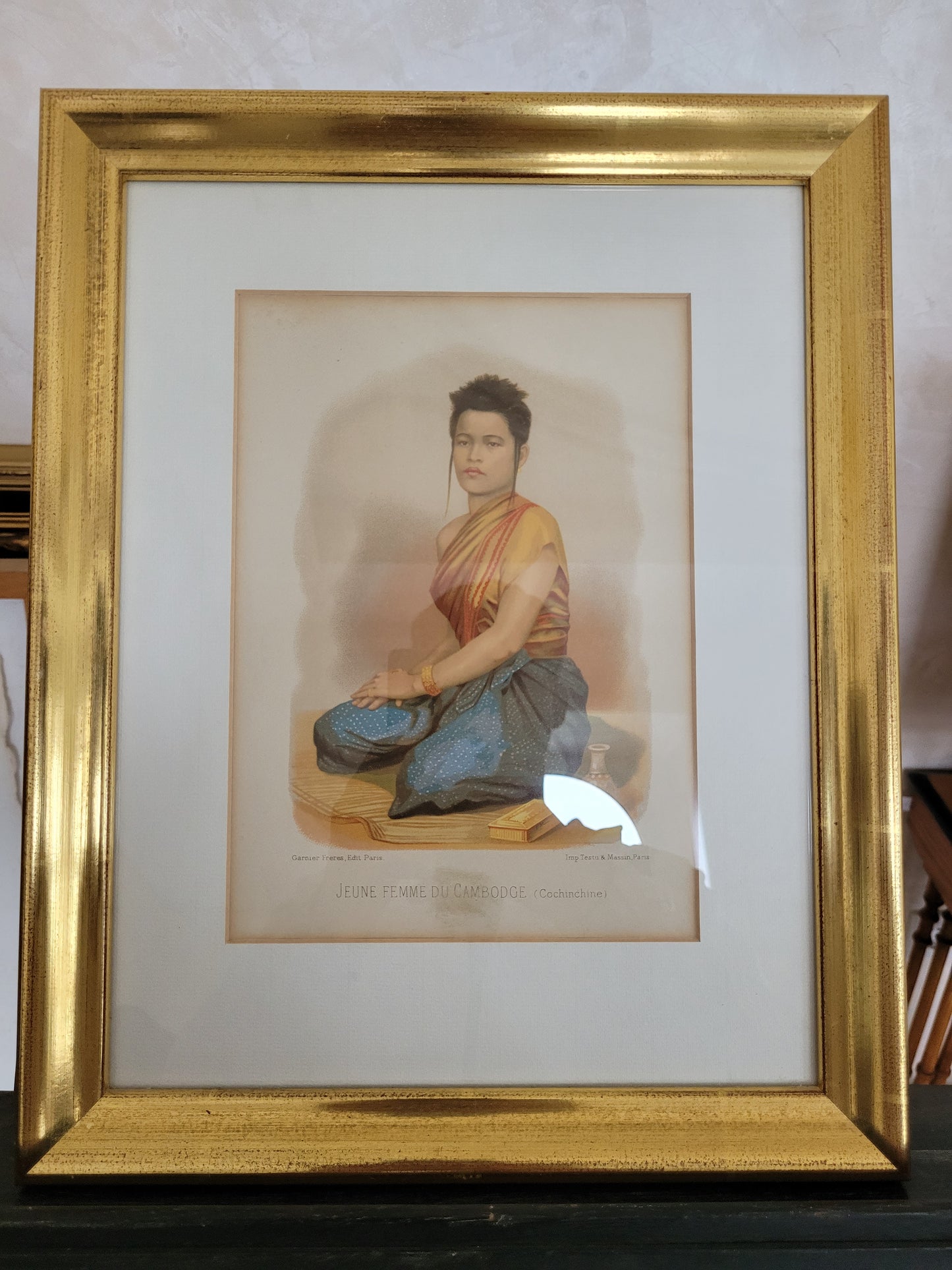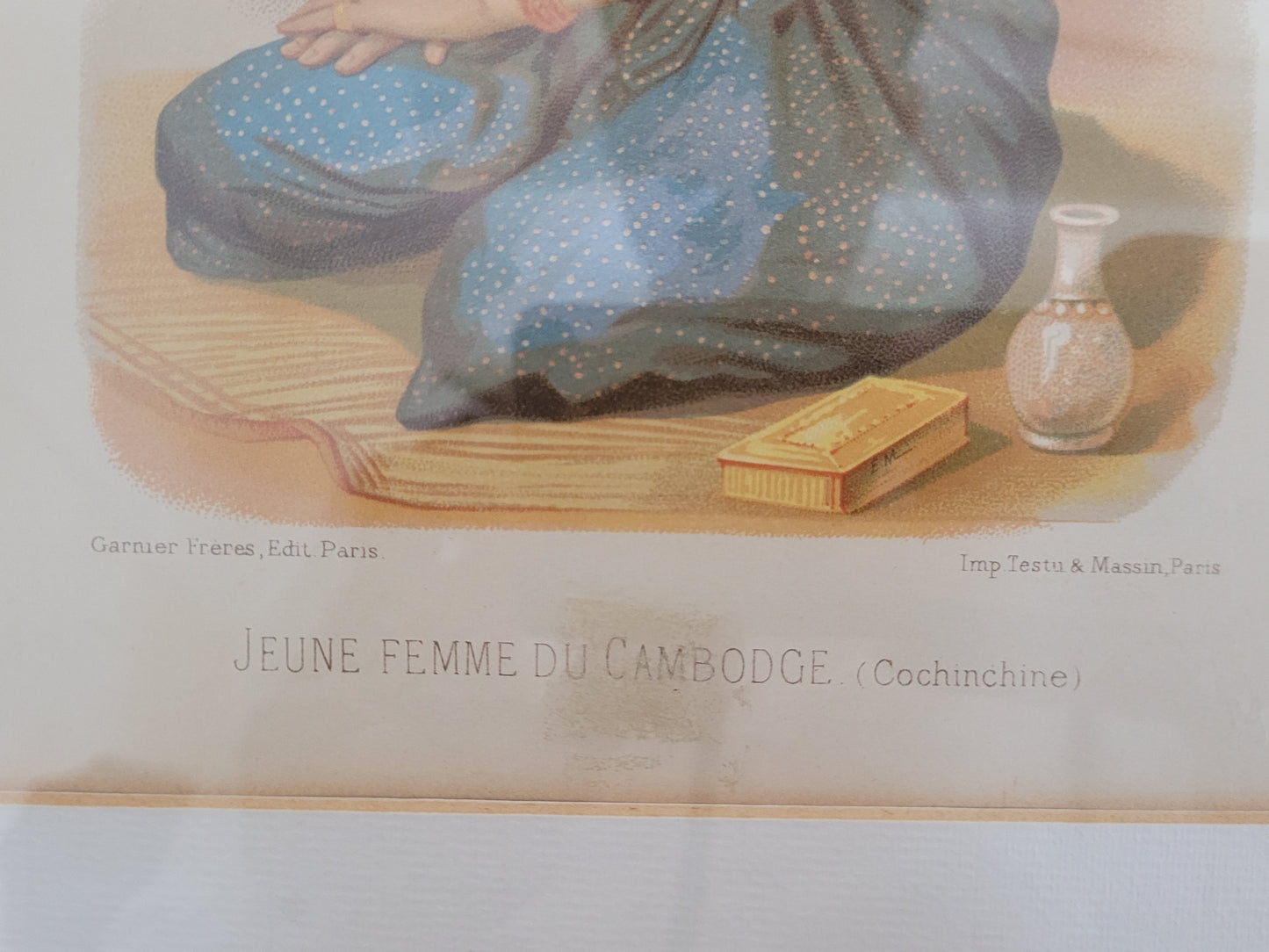 Garnier Frères Original Grafik Lithographie JEUNE FEMME du CAMBODGE