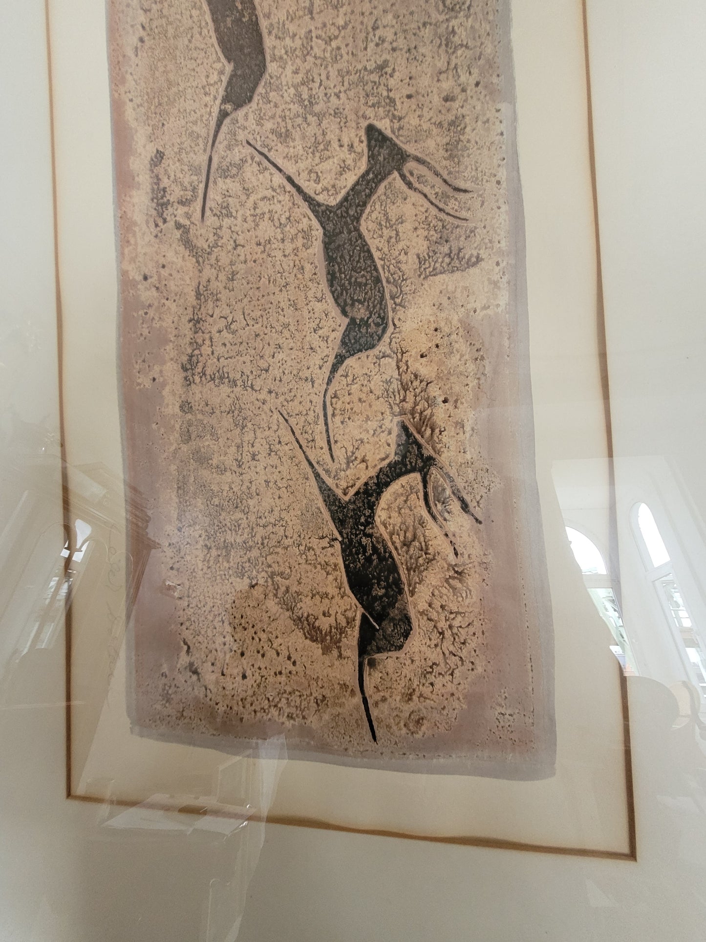 Die Monotypie-Technik verleiht der Darstellung eine besondere Textur und Tiefe, die die natürliche Bewegung und Anmut der Tiere betont. Der Künstler nutzt stilisierte Linien und Formen, um die Energie und das Gefühl der Freiheit in der wilden Natur Afrikas einzufangen.