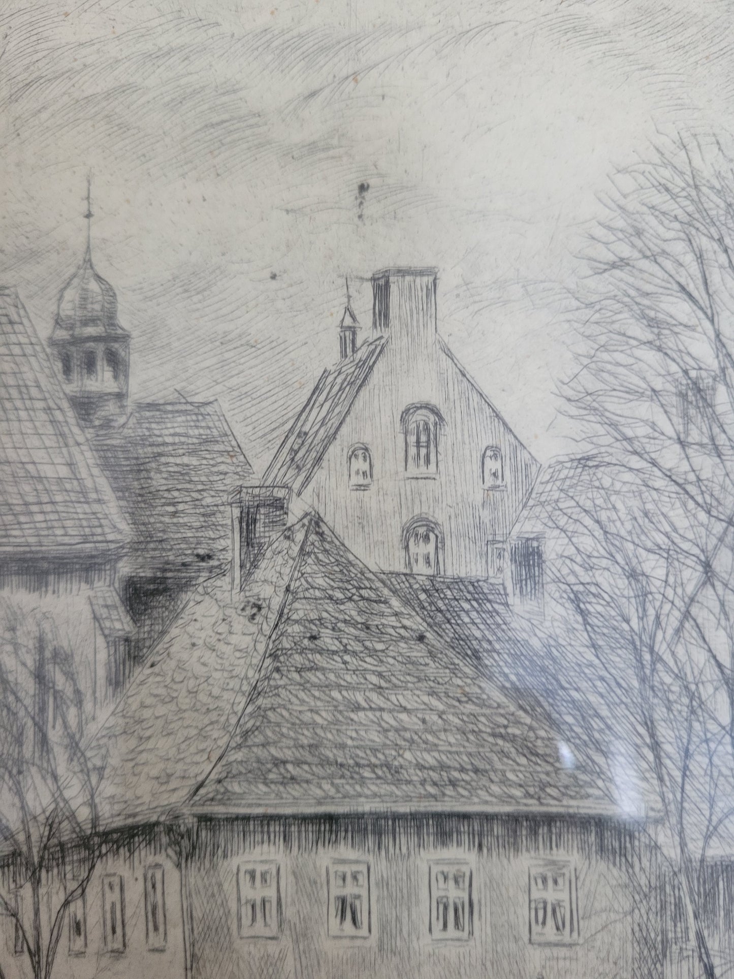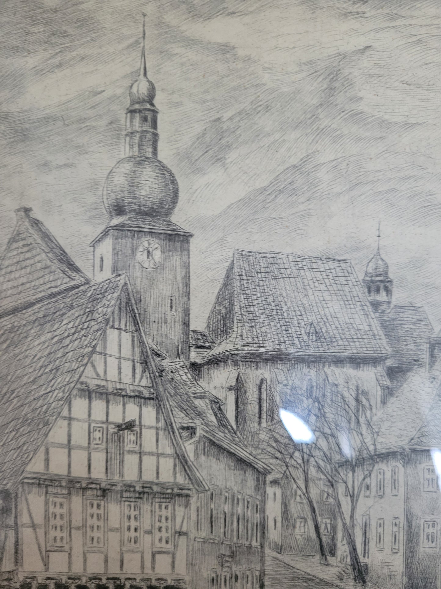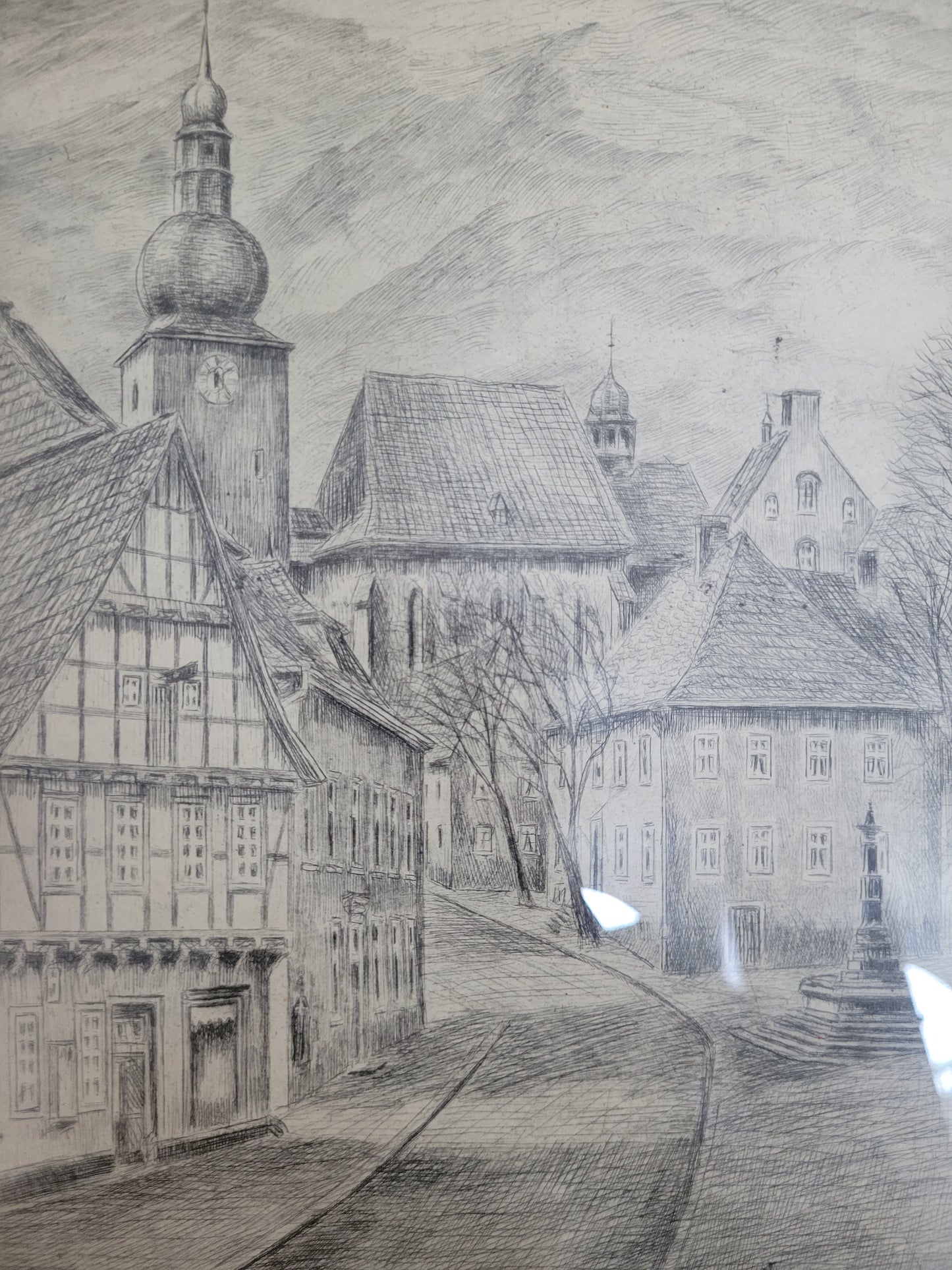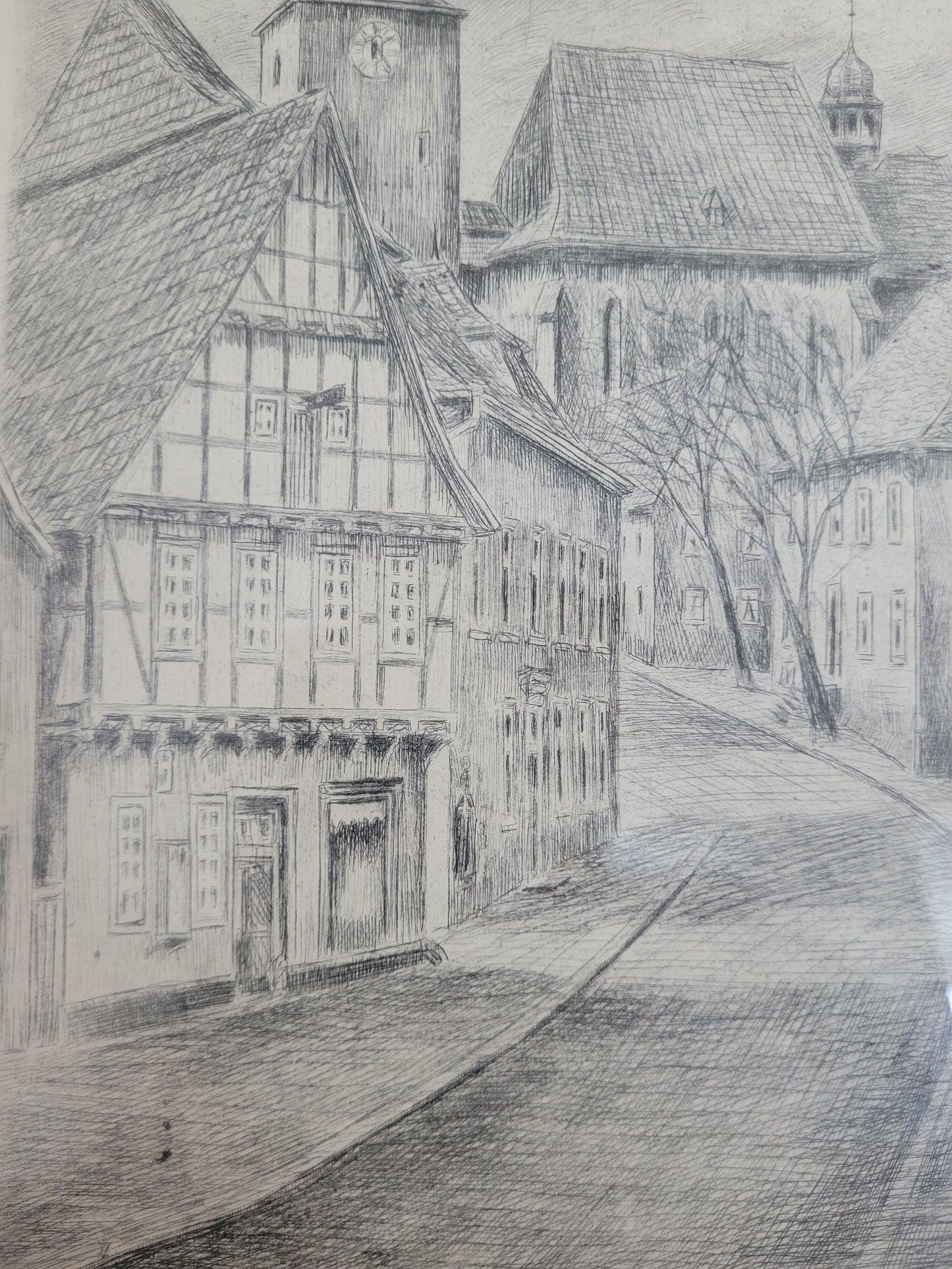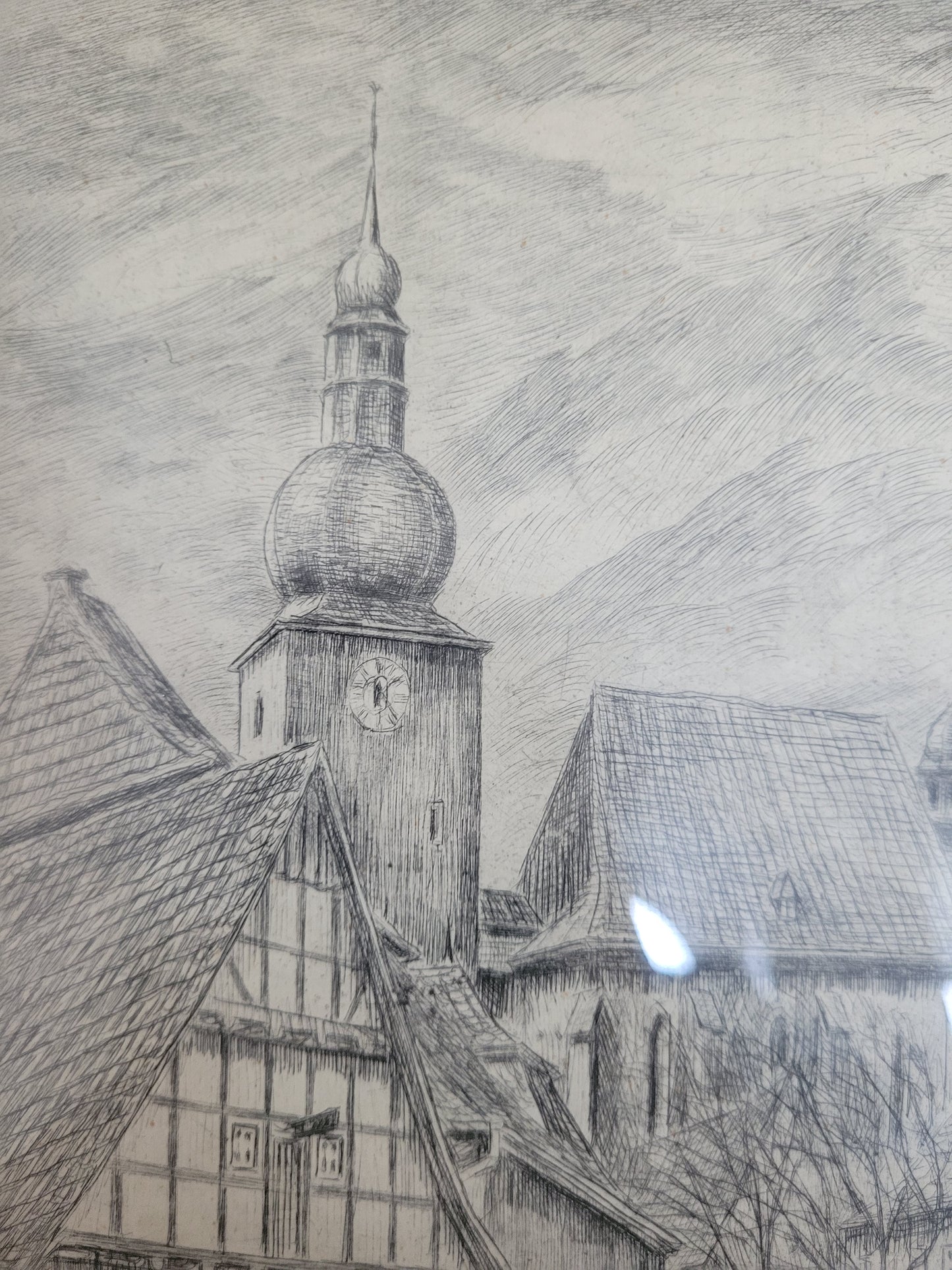 Deutsche Schule (XIX-XX) Original Radierung Glockenturm Stadtbefestigung Arnsberg