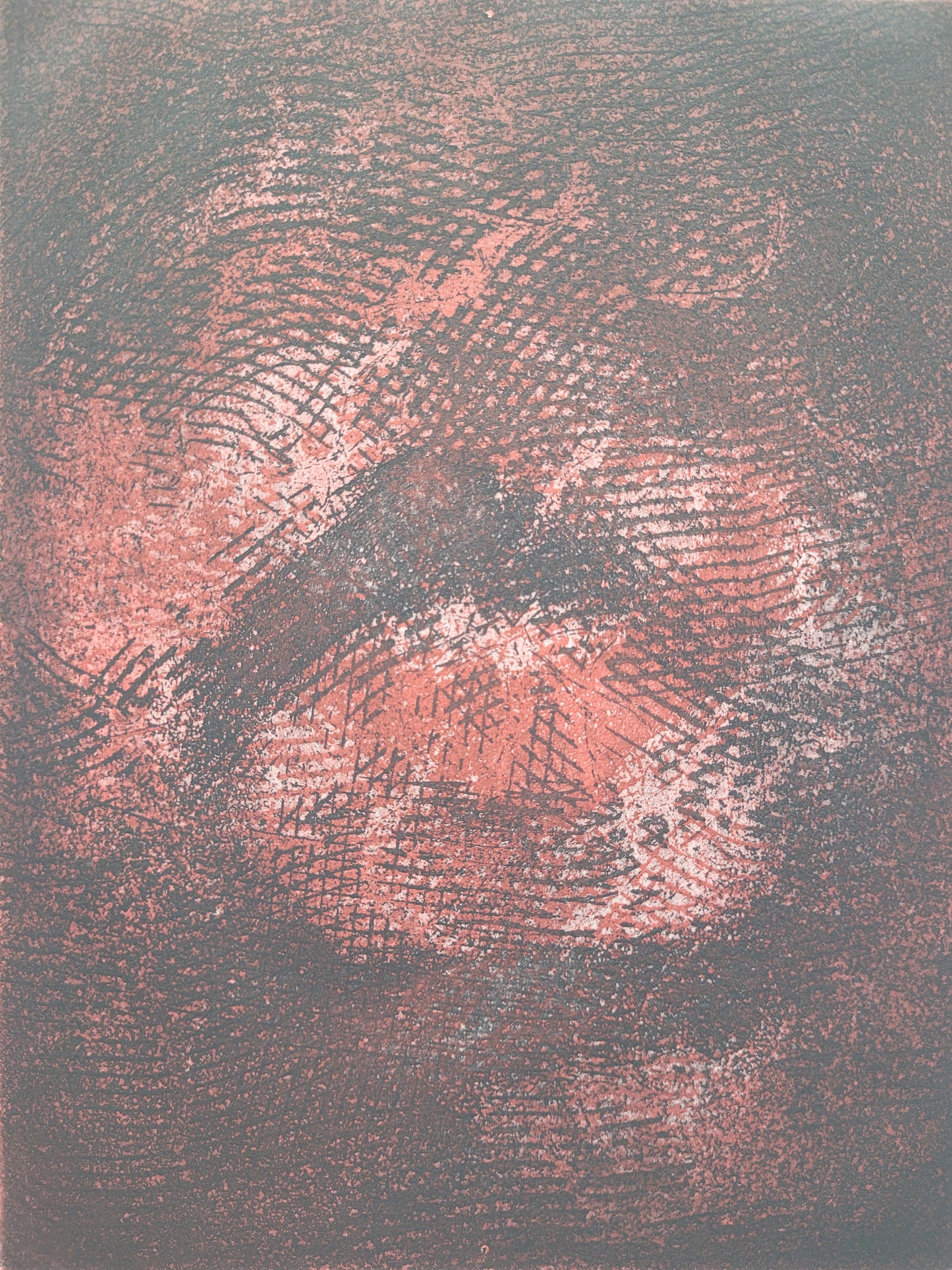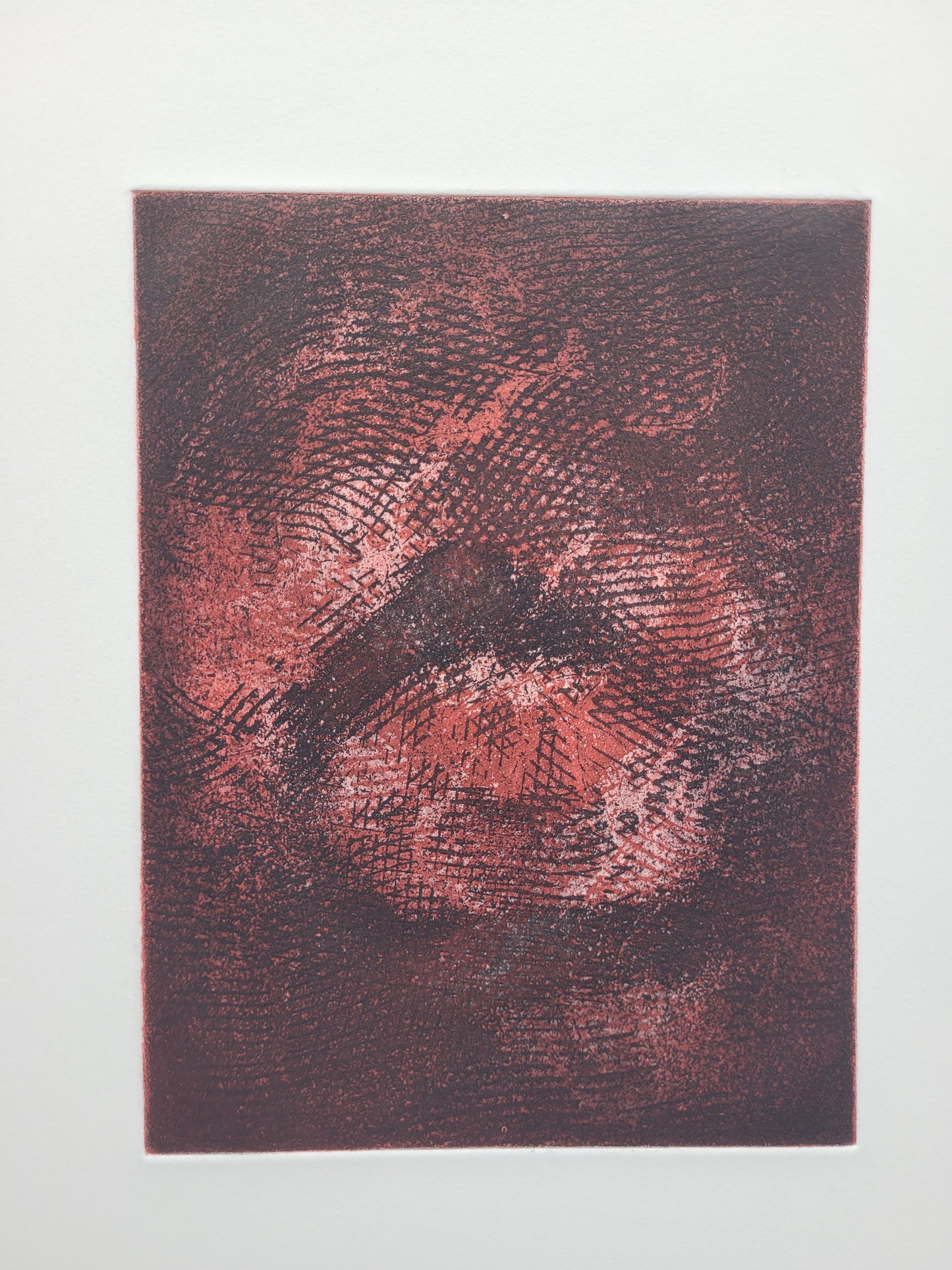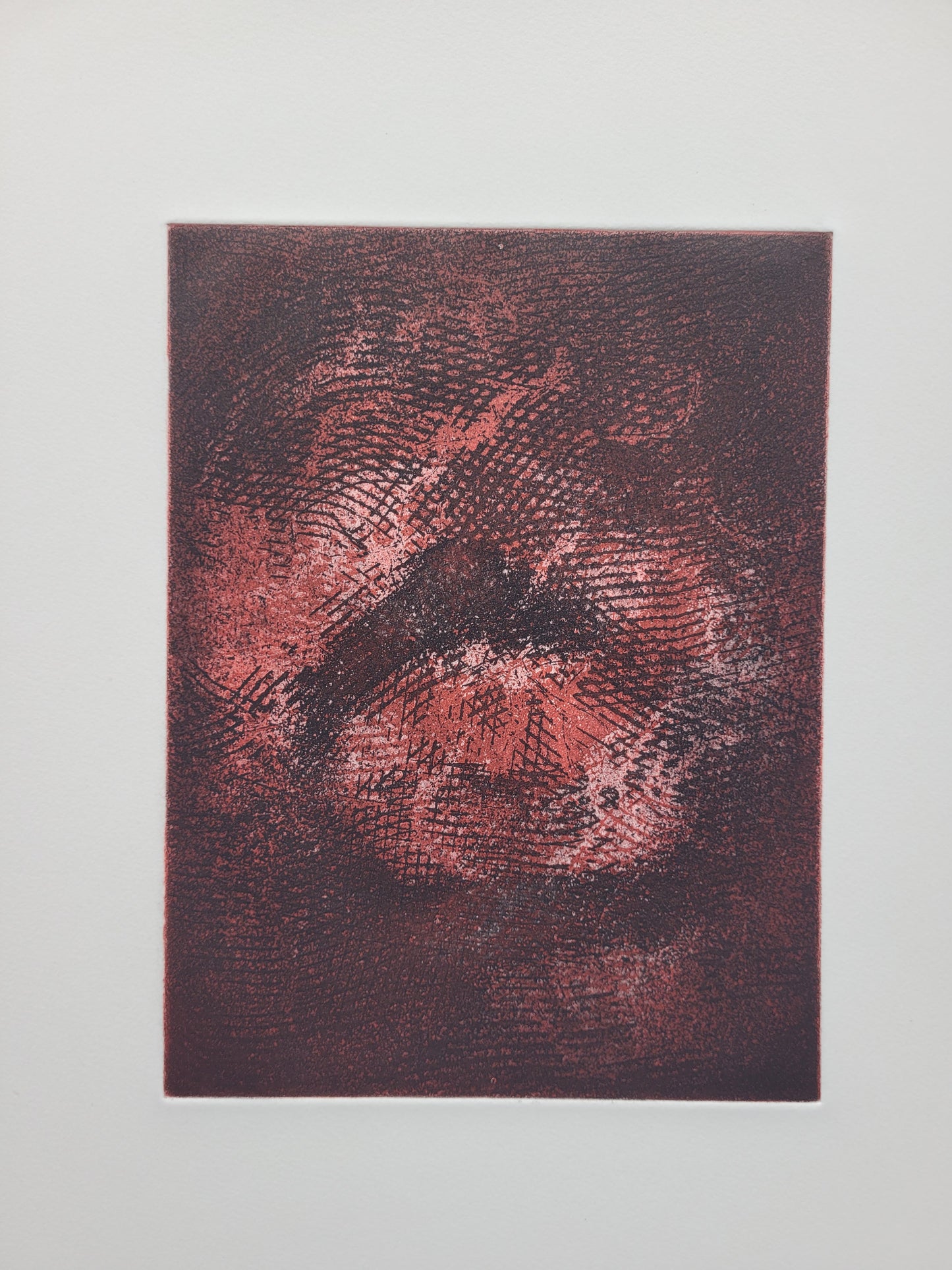 Maße: 38x28 cm (Mappe), 21x16 cm (Farbradierung)