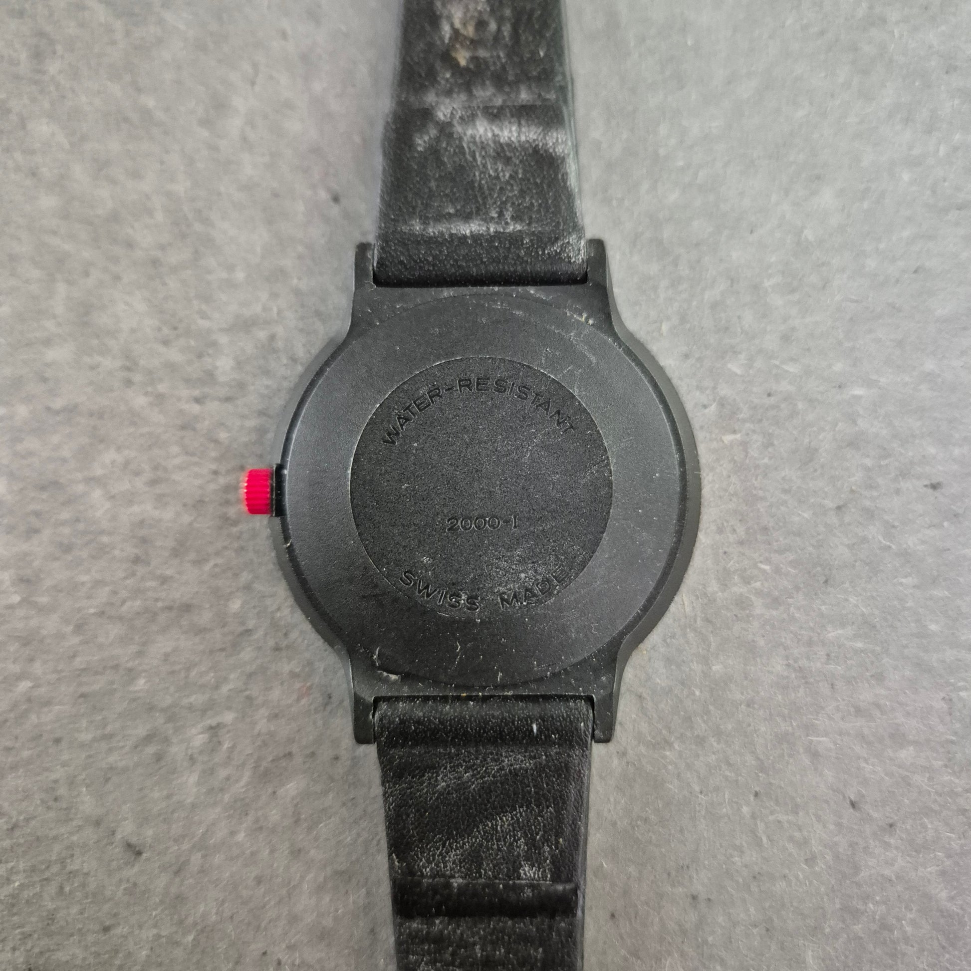 Diese auffällige Analoguhr trägt das charakteristische Zifferblatt „Diogenes Traumstunden“ mit gezeichneter Katze, inspiriert von der berühmten Buchreihe des Diogenes-Verlags. Das cremefarbene Blatt wird durch rote Punkte als Stundenmarkierung und rote Zeiger ergänzt – verspielt und einzigartig. Das schwarze Kunststoffgehäuse und -band machen die Uhr zu einem unkonventionellen Accessoire mit künstlerischem Touch.