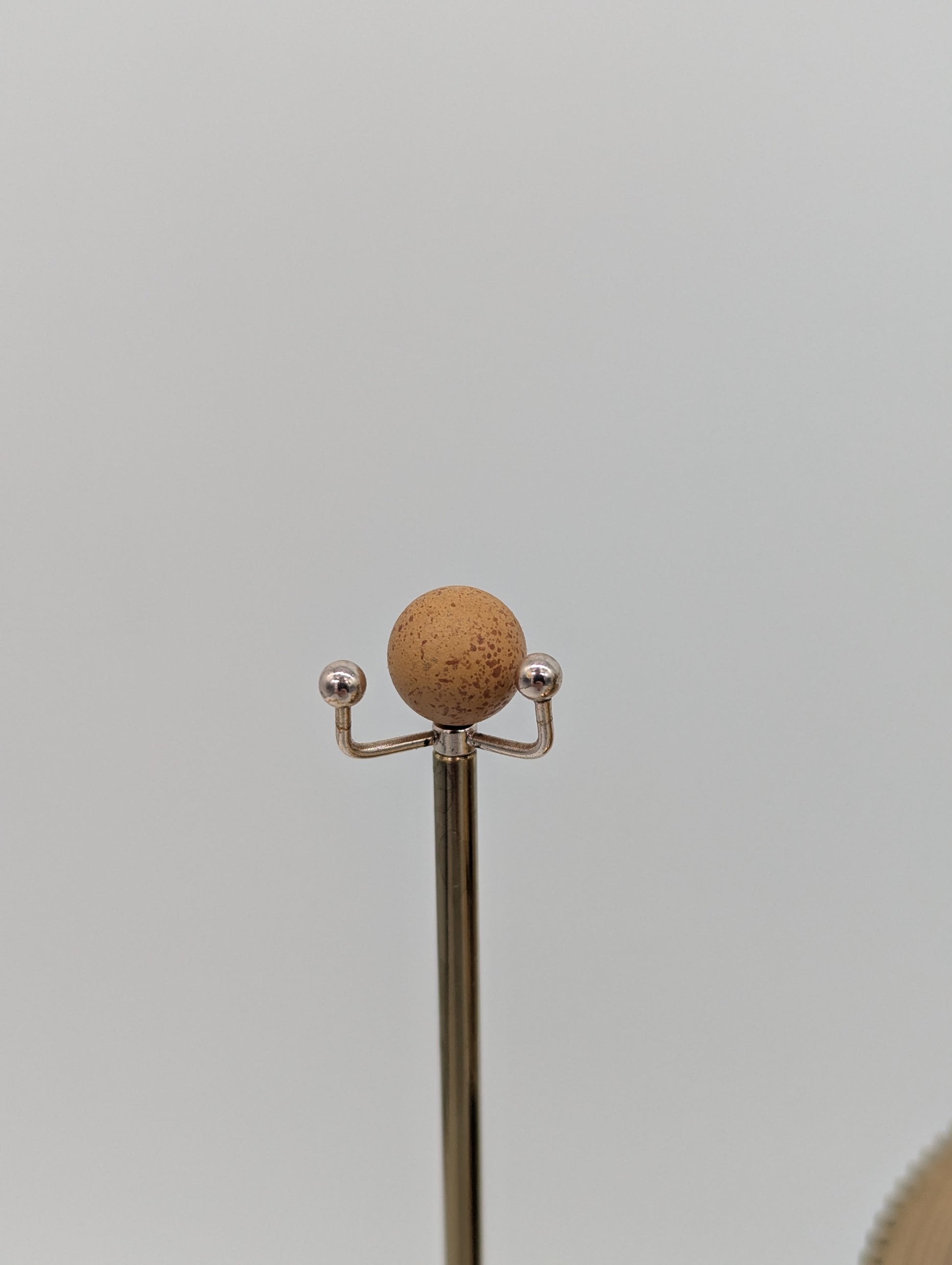 • Merkur: Kleine, beige-braune Kugel auf kurzem Arm