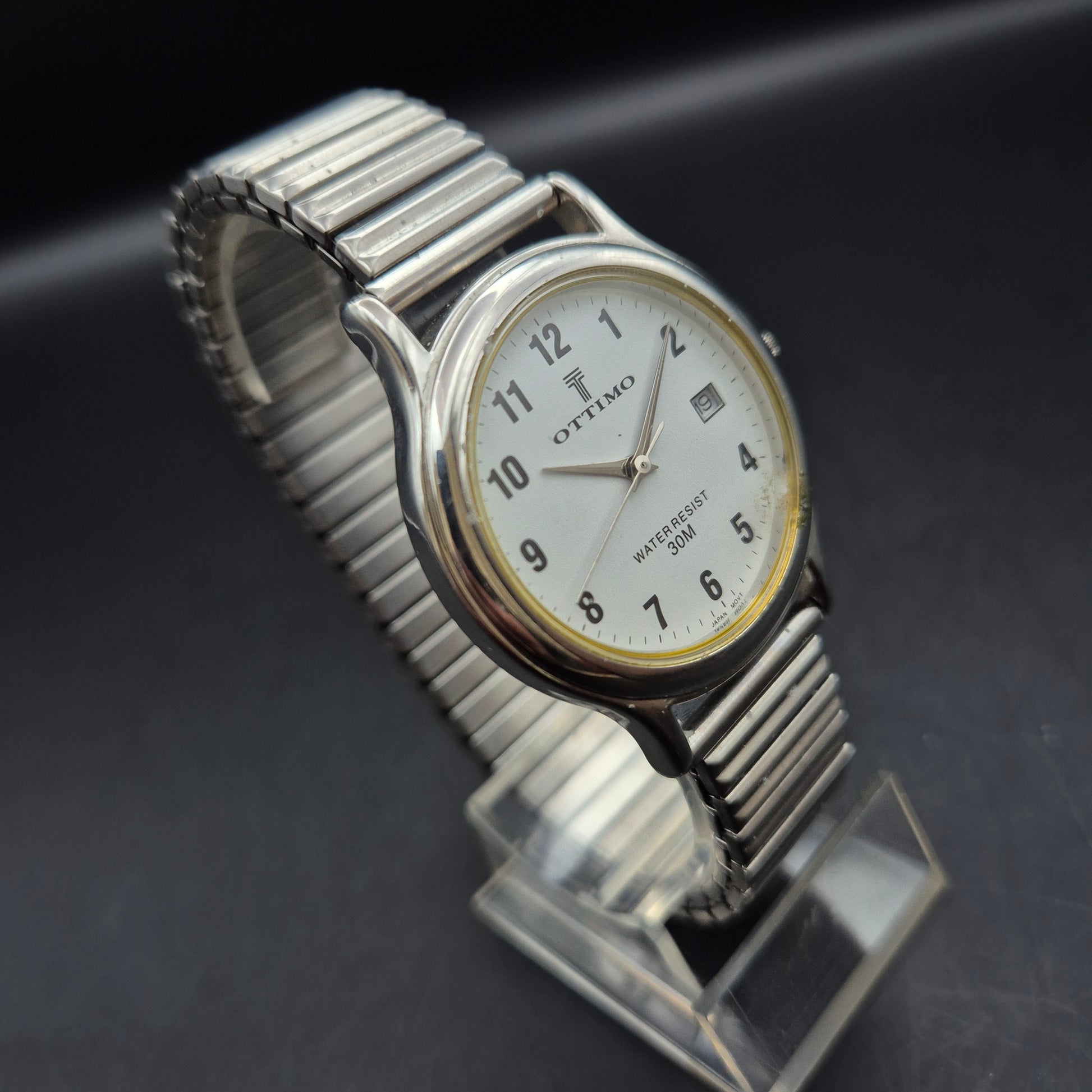 Diese Ottimo Herren Uhr überzeugt durch ihr schlichtes, funktionales Design und ihre solide Verarbeitung. Das klare weiße Zifferblatt mit schwarzen arabischen Ziffern bietet beste Ablesbarkeit, während die Datumsanzeige auf 3 Uhr zusätzlichen Komfort bietet. Das silberfarbene Edelstahlgehäuse und das flexible Metallarmband sorgen für eine angenehme Passform und Langlebigkeit. Mit japanischem Quarzwerk und 30 m Wasserdichtigkeit ist diese Uhr ein zuverlässiger Begleiter für jeden Tag.