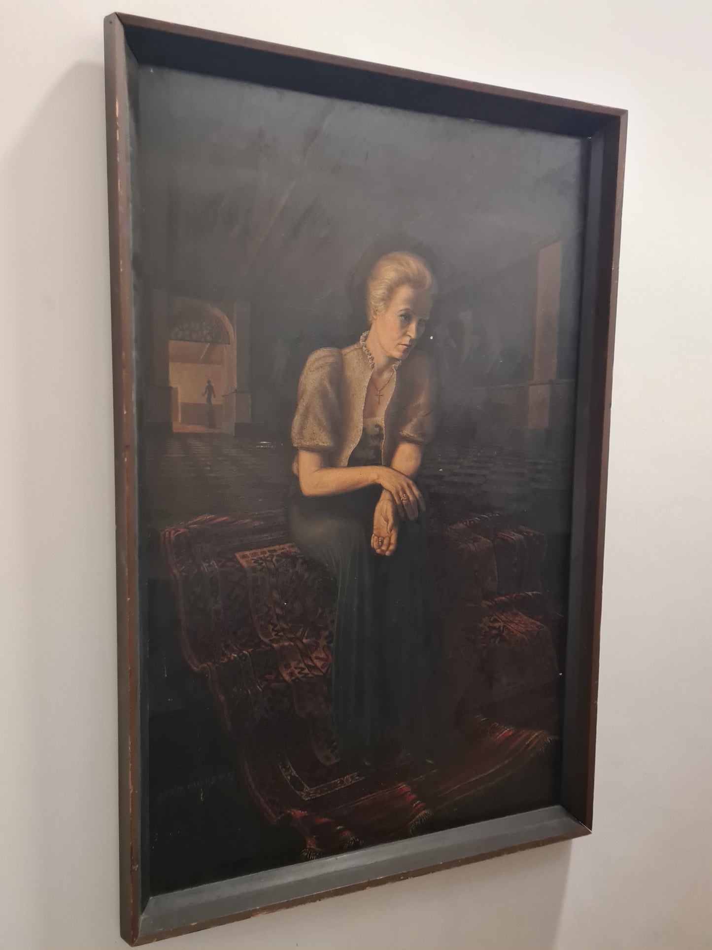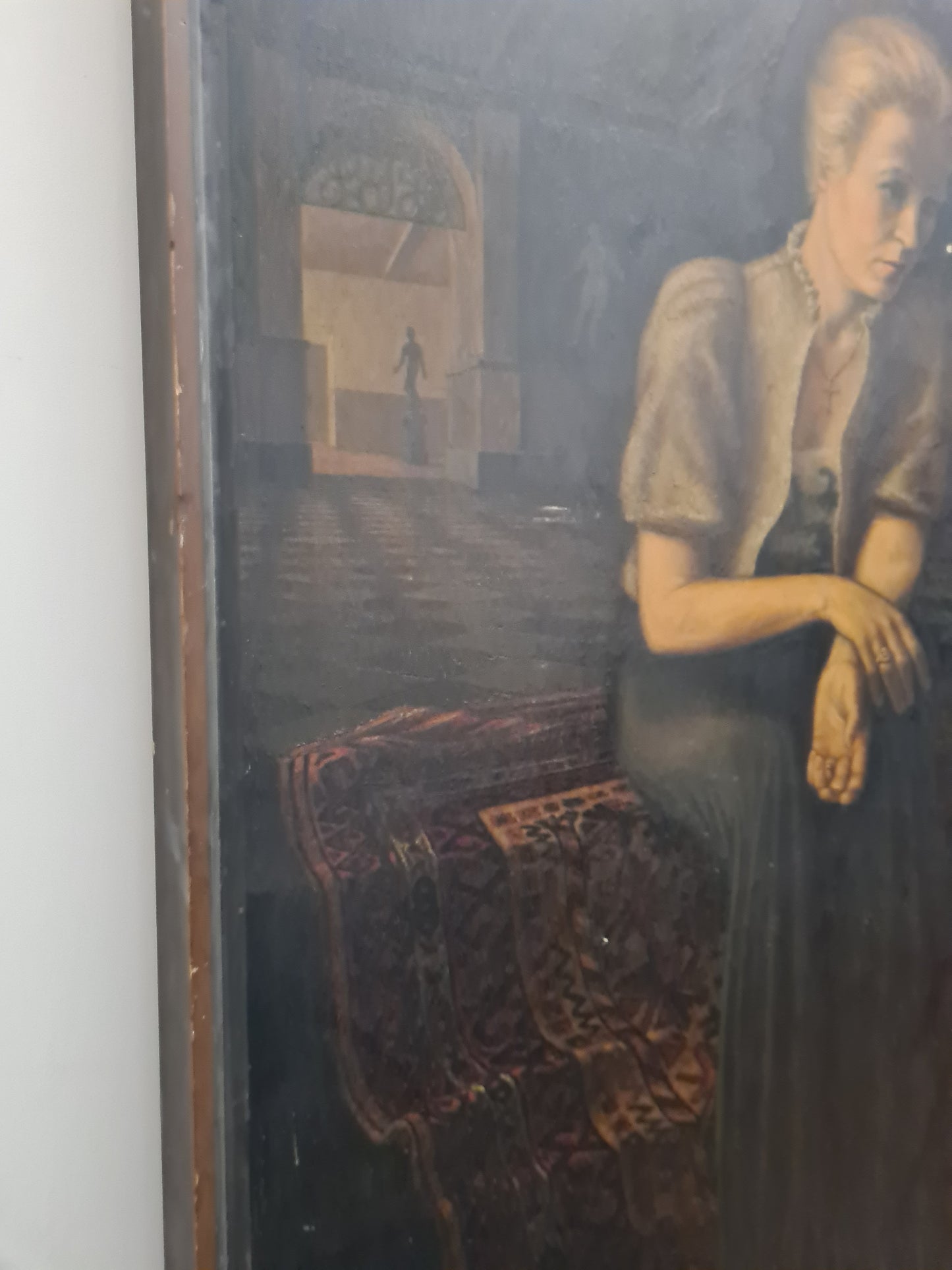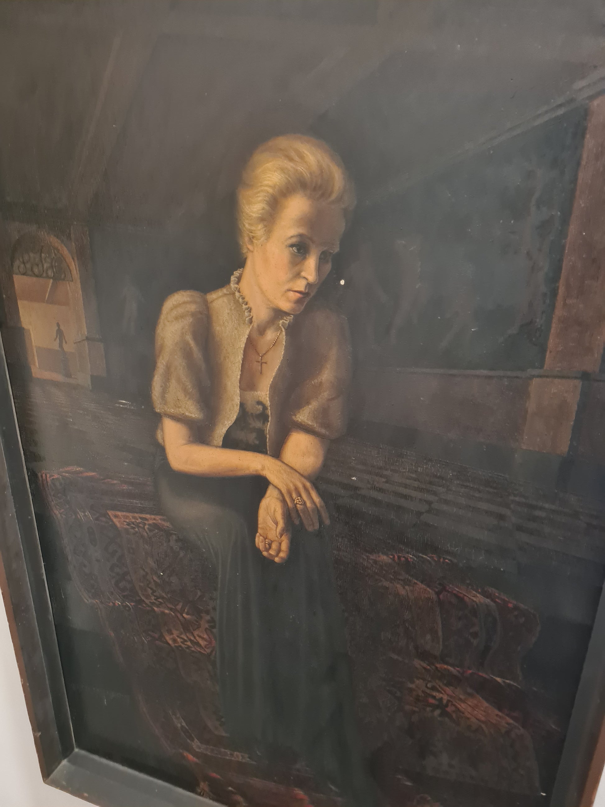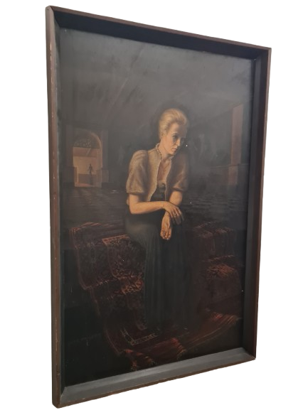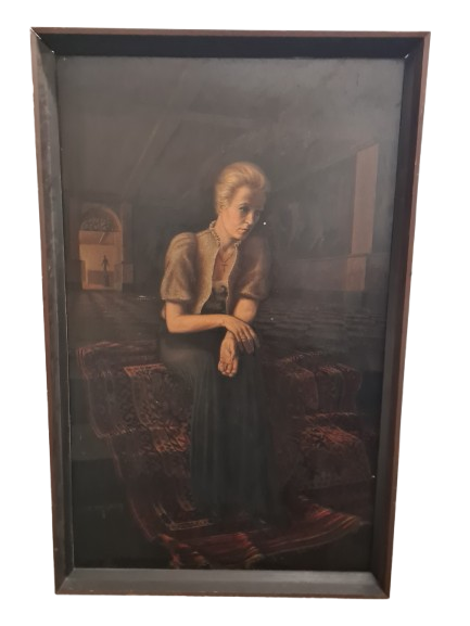 Otto MULSOW (1902-1973) Großes Ölgemälde Frau im Abendkleid im Interieur