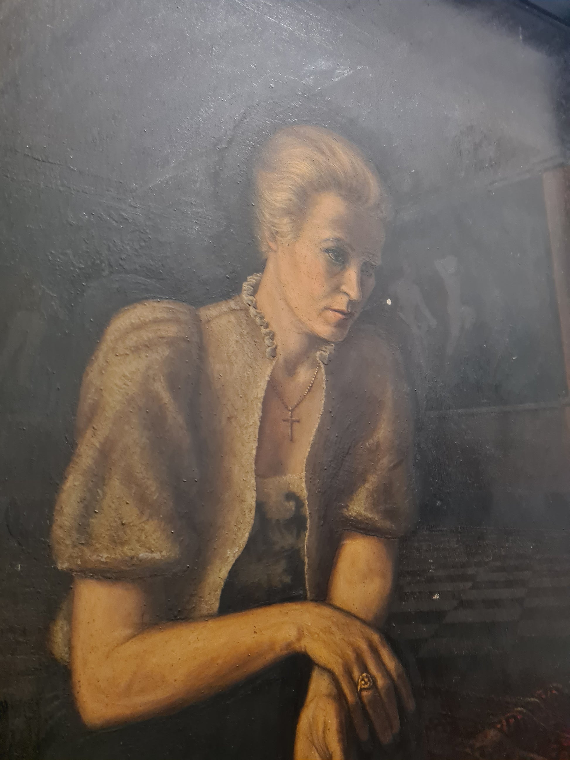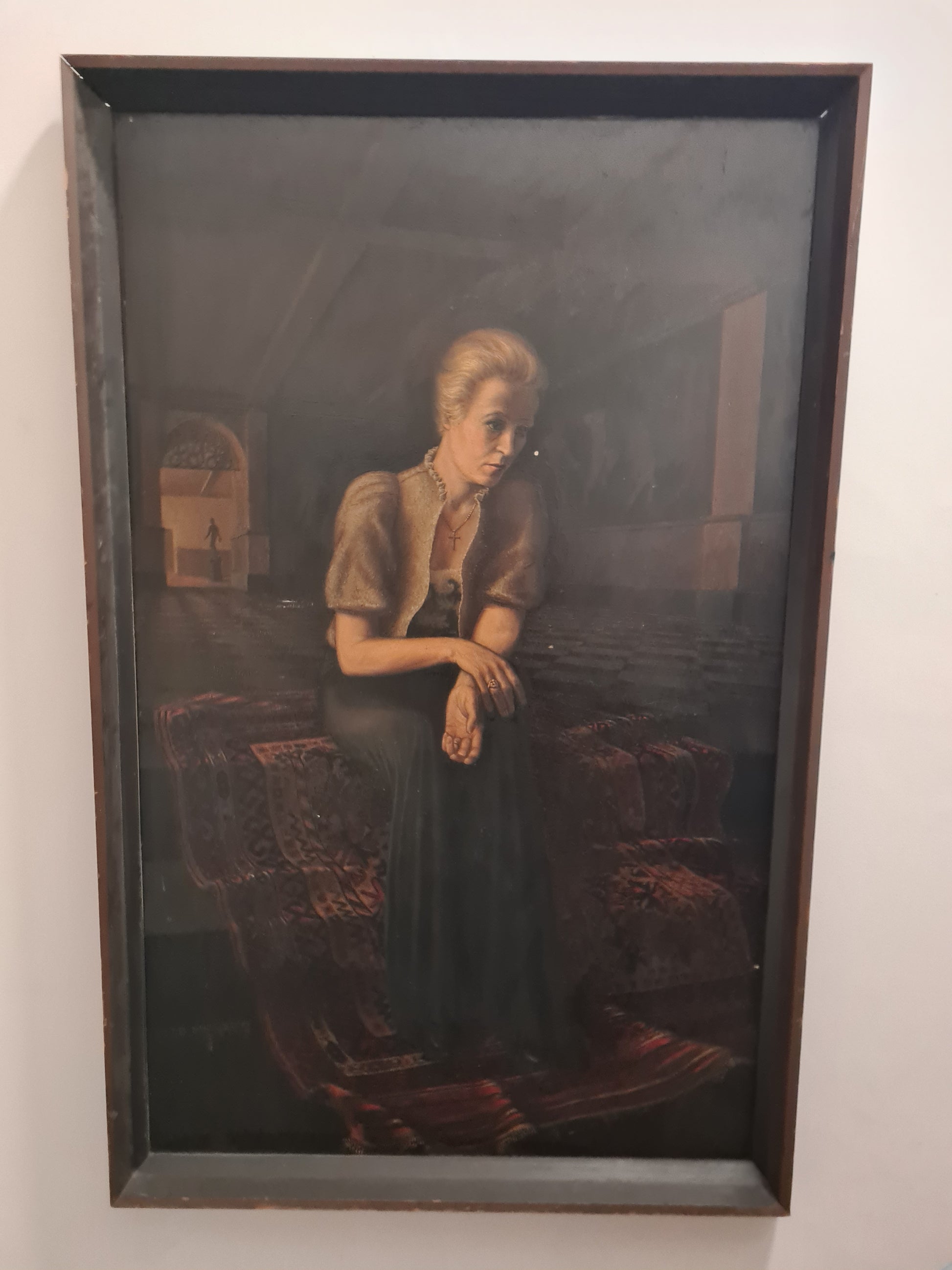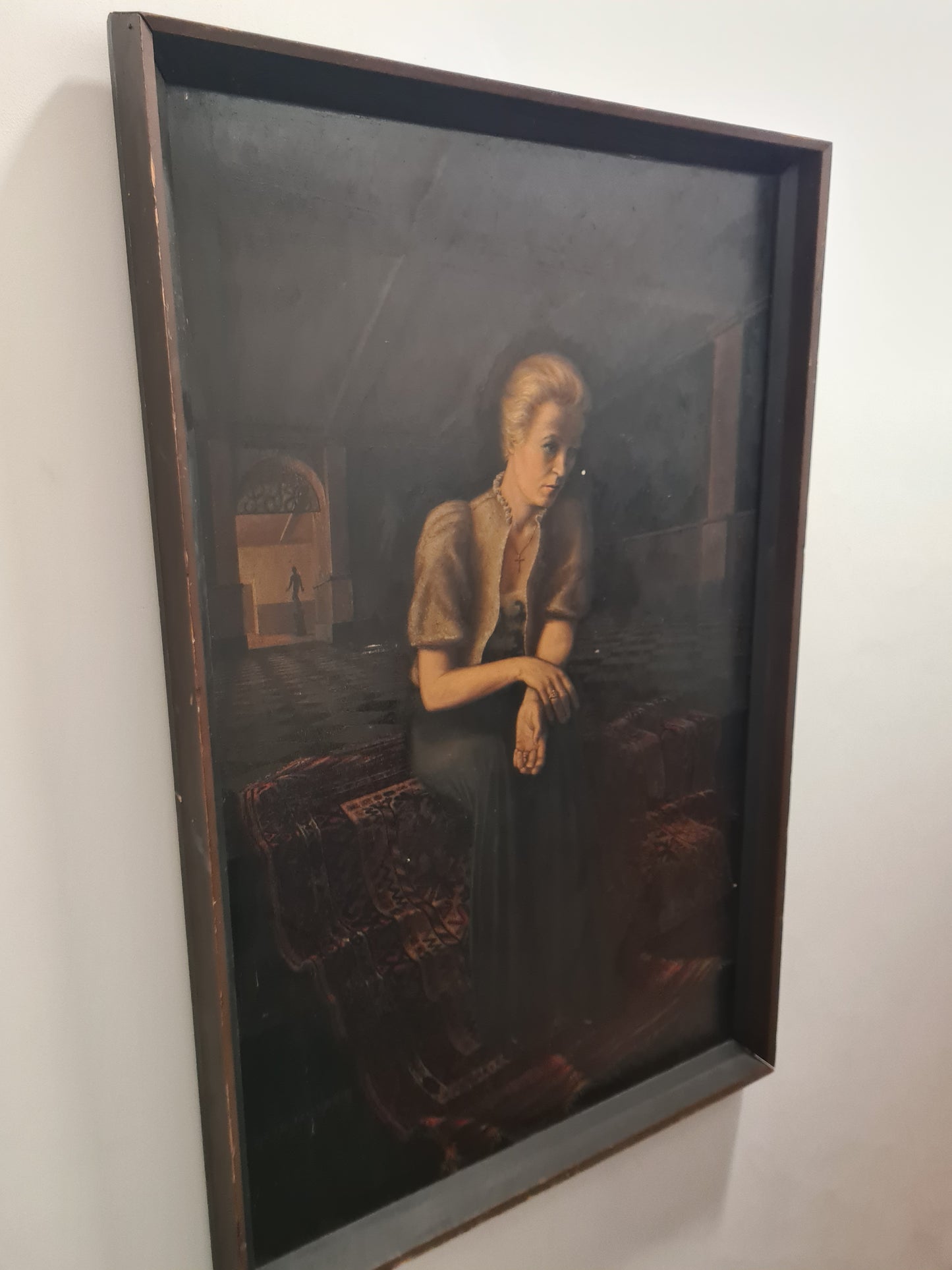 Otto MULSOW (1902-1973) Großes Ölgemälde Frau im Abendkleid im Interieur