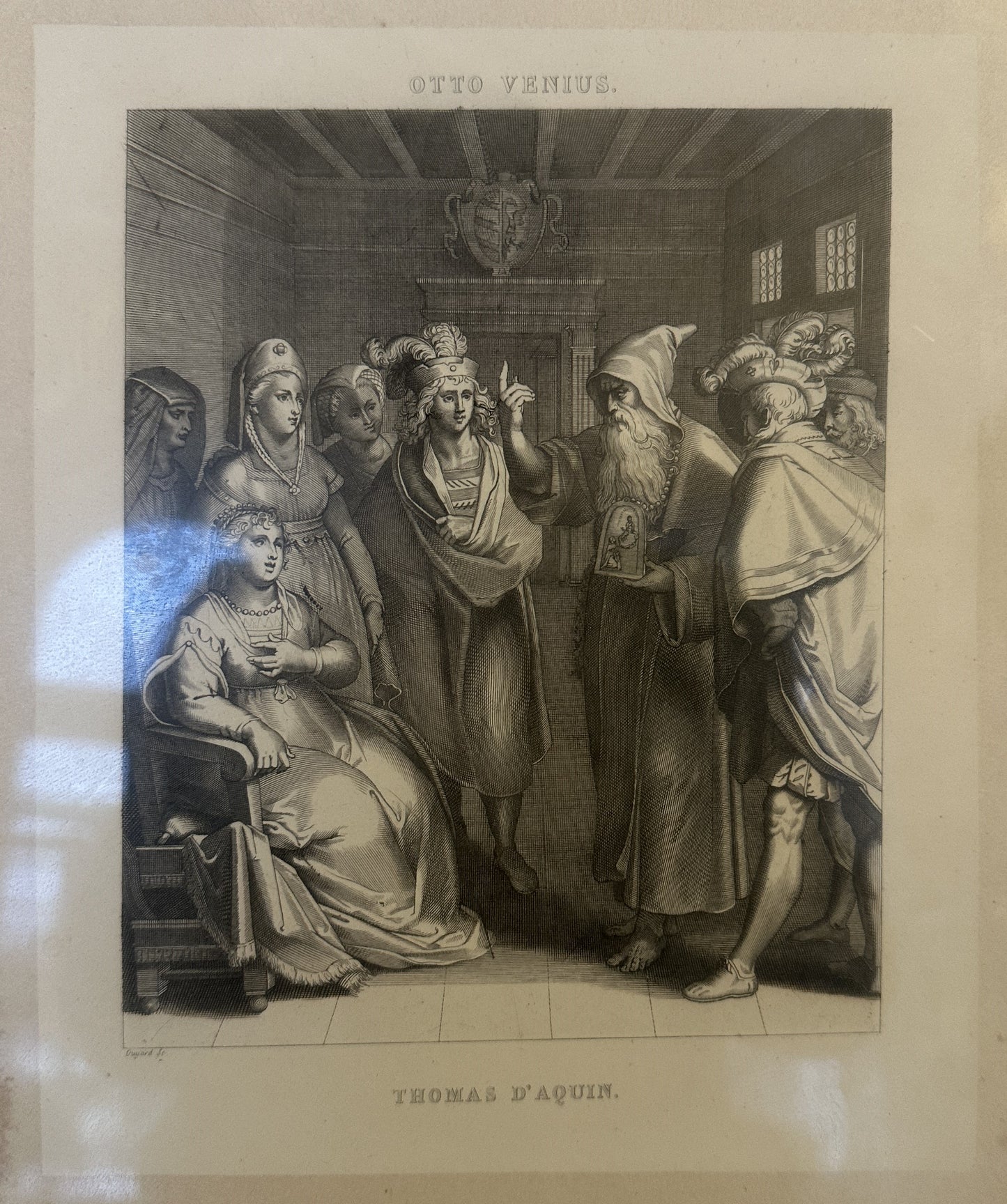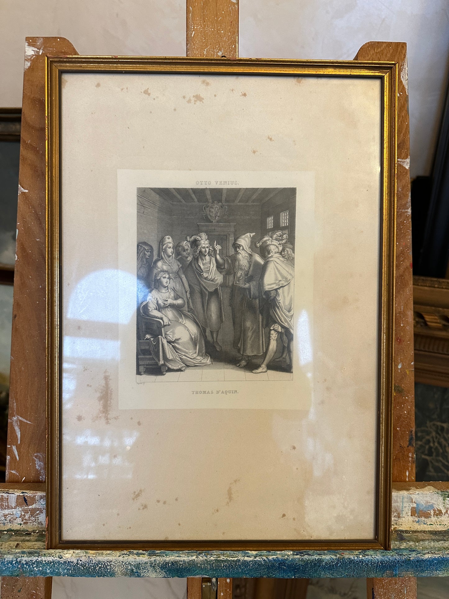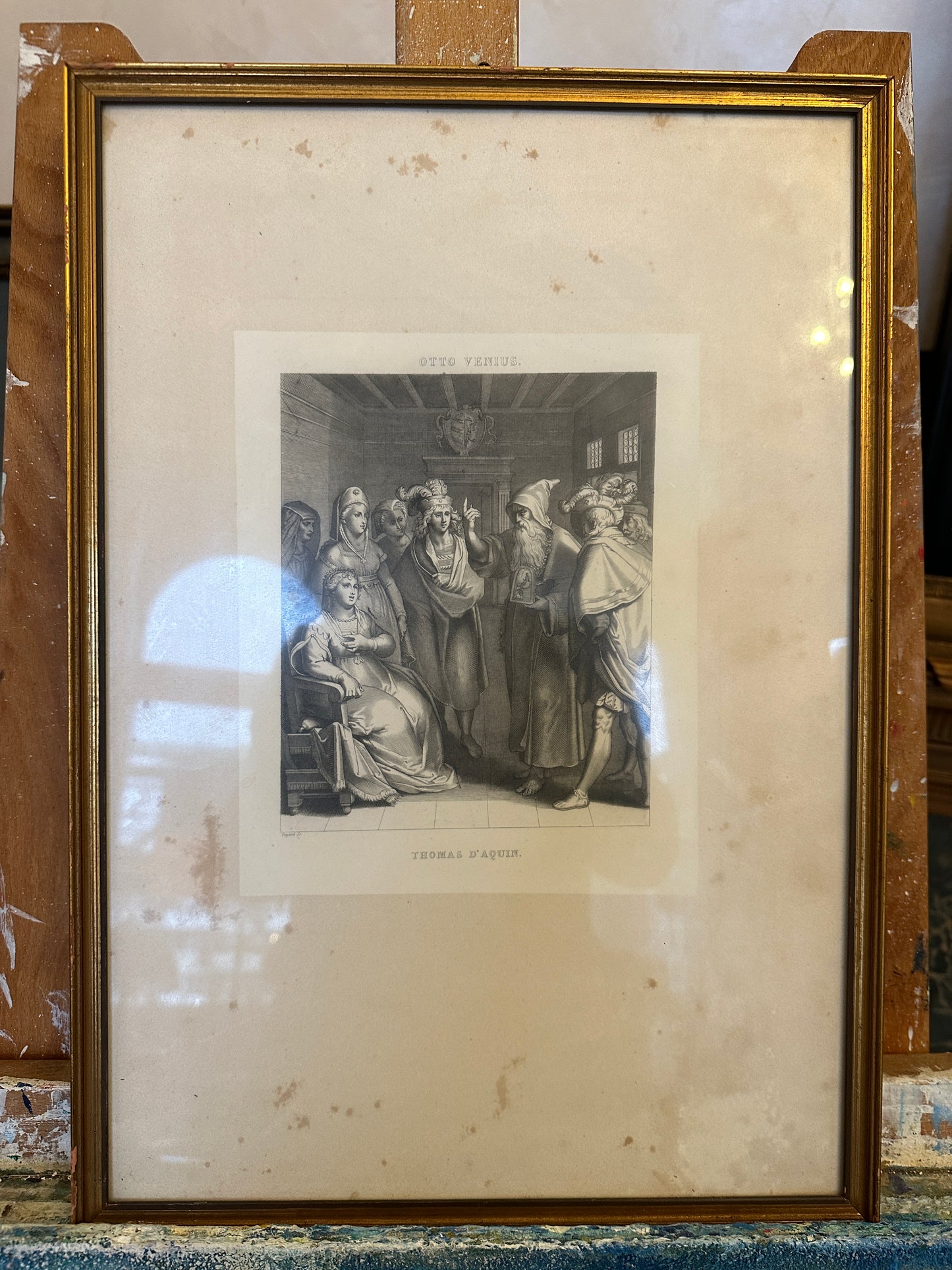 Beschreibung: Erweitern Sie Ihre Sammlung um diese beeindruckende Grafik aus der Flämischen Schule von Otto van Veen (1556-1629), die die Prophezeiung an die Mutter von Thomas von Aquin darstellt. Das Kunstwerk befindet sich in einem guten gebrauchten Zustand, wie auf den beigefügten Fotos dokumentiert.