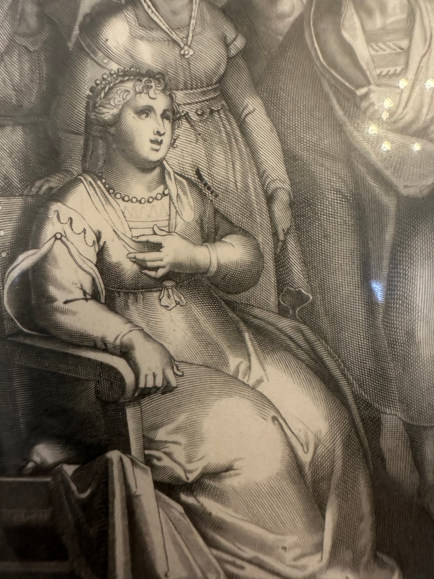 Otto van Veen (1556-1629) hat mit dieser Grafik eine eindrucksvolle Szene geschaffen, die die Prophezeiung an die Mutter von Thomas von Aquin illustriert. Die feinen Details und die meisterhafte Ausführung zeugen von der handwerklichen Fertigkeit des Künstlers. Dieses Kunstwerk ist nicht nur ein Zeugnis der Flämischen Schule, sondern auch eine Hommage an die Geschichte und die Bedeutung von Prophezeiungen. Ein ideales Stück für Kunstliebhaber und Sammler, die historische Grafiken schätzen.