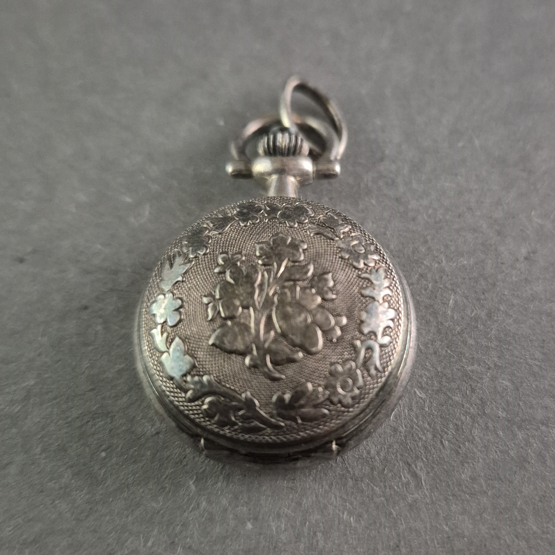 • Material: Versilbertes Gehäuse mit floraler Gravur