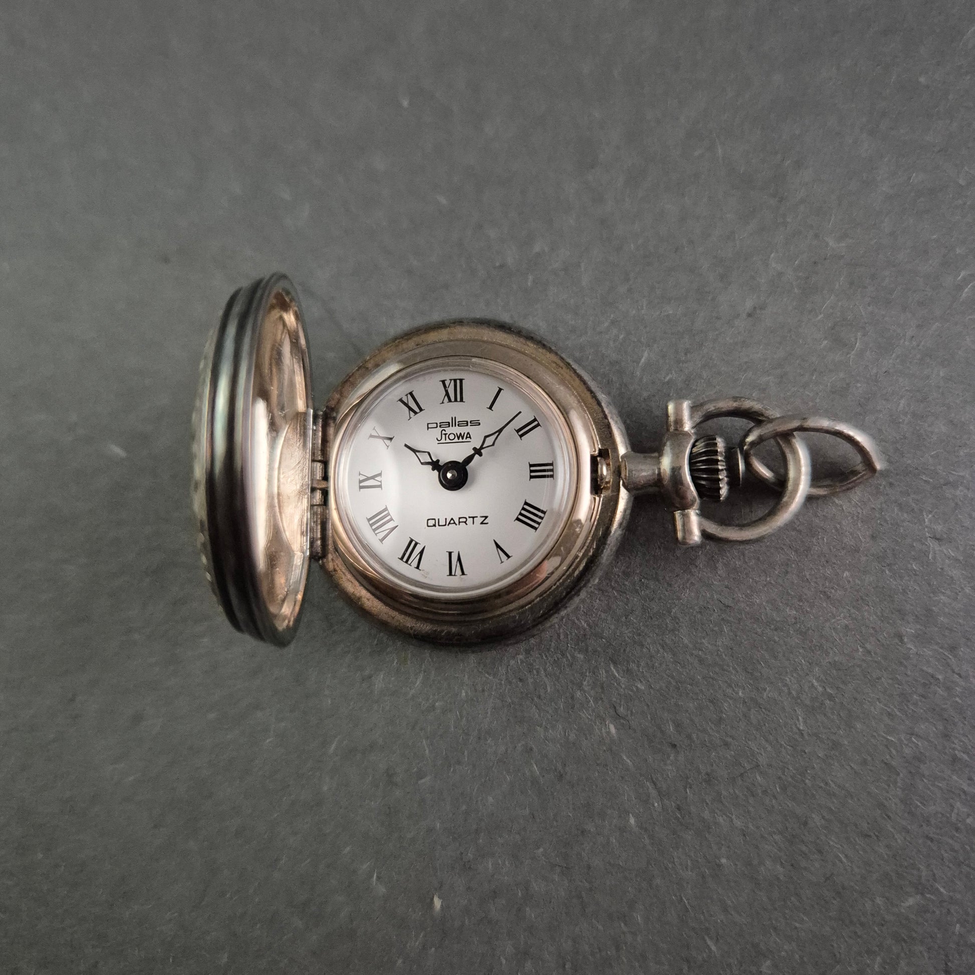 Diese elegante Taschenuhr von Pallas Jowa vereint florale Gravurkunst mit klassischem Design. Das fein gearbeitete Gehäuse ist mit filigranen Blumenmustern verziert, die der Uhr eine nostalgische Note verleihen. Das Zifferblatt mit römischen Ziffern und Quarzwerk spiegelt zeitlose Eleganz wider. Mit ihrer kompakten Größe und dem praktischen Anhänger ist diese Uhr ein stilvolles Accessoire und ein begehrtes Sammlerstück für Liebhaber klassischer Zeitmesser.