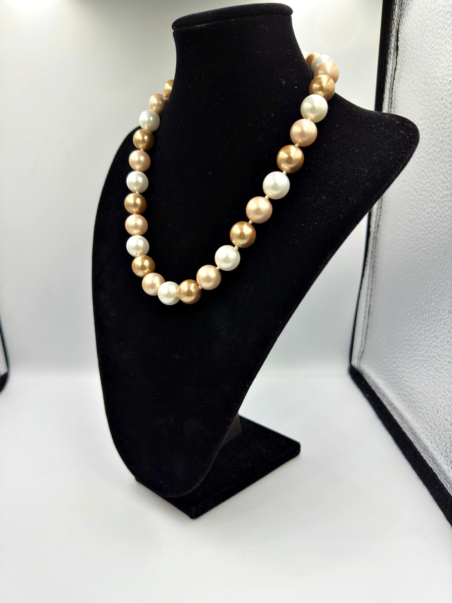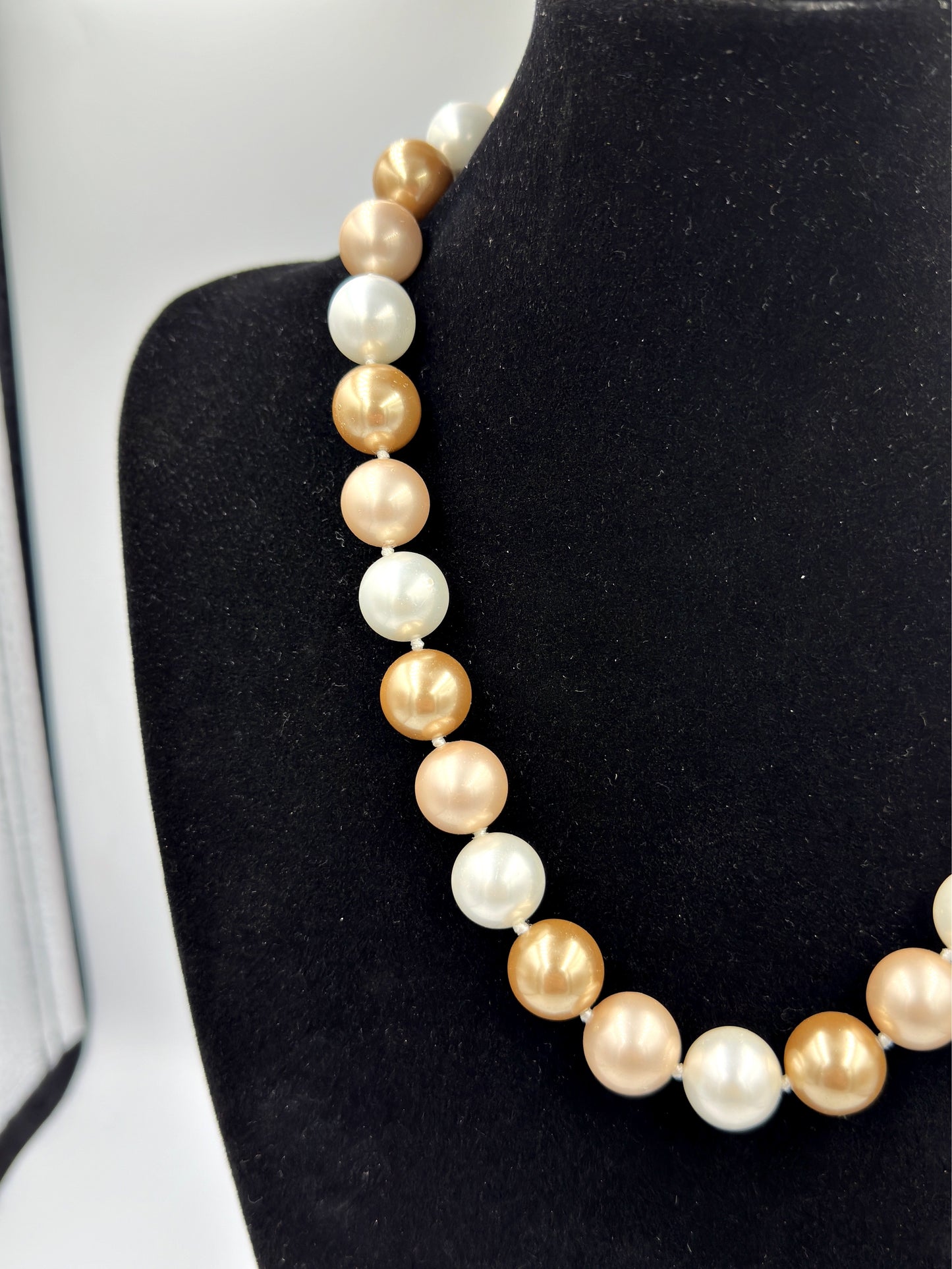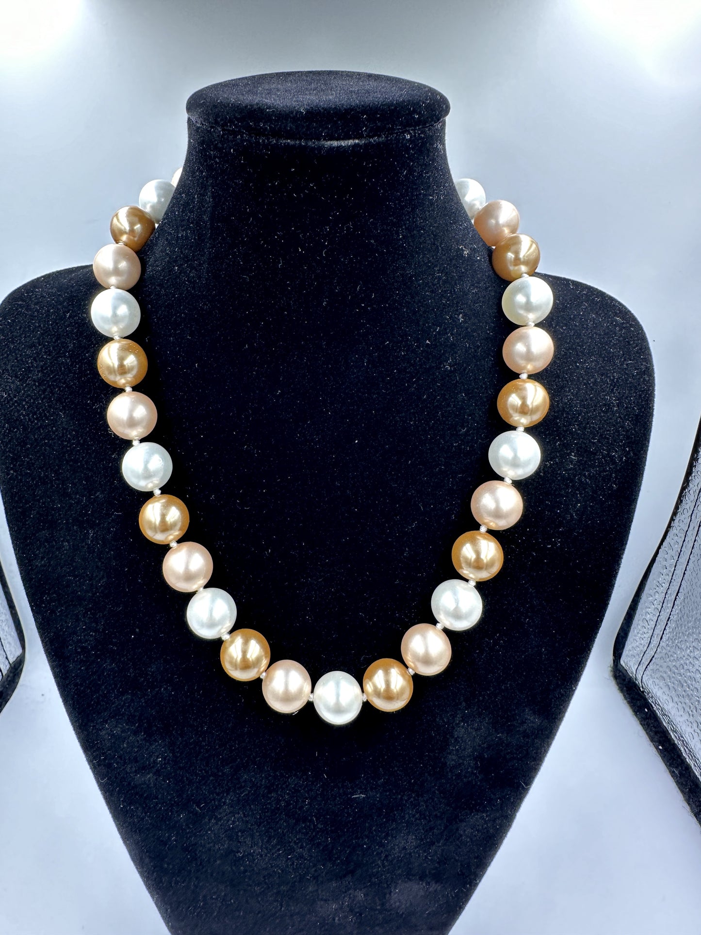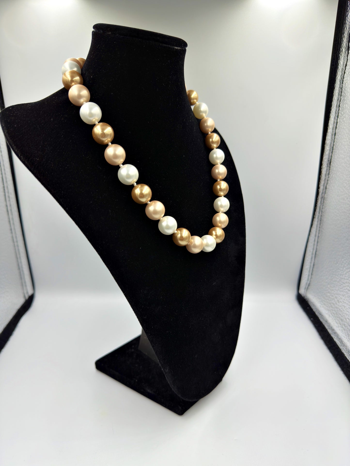 Diese exquisite Perlenkette besticht durch ihre vielfältigen Farbtöne und den hochwertigen Edelsteinperlen, die jedes Outfit aufwerten. Mit einer Länge von 50 cm bietet die Kette eine angenehme Tragelänge, während das Gewicht von 125,3 Gramm ein solides und luxuriöses Tragegefühl vermittelt. Trotz ihres gebrauchten Zustands ist die Kette gut erhalten und fügt sich nahtlos in jede Schmuckkollektion ein.