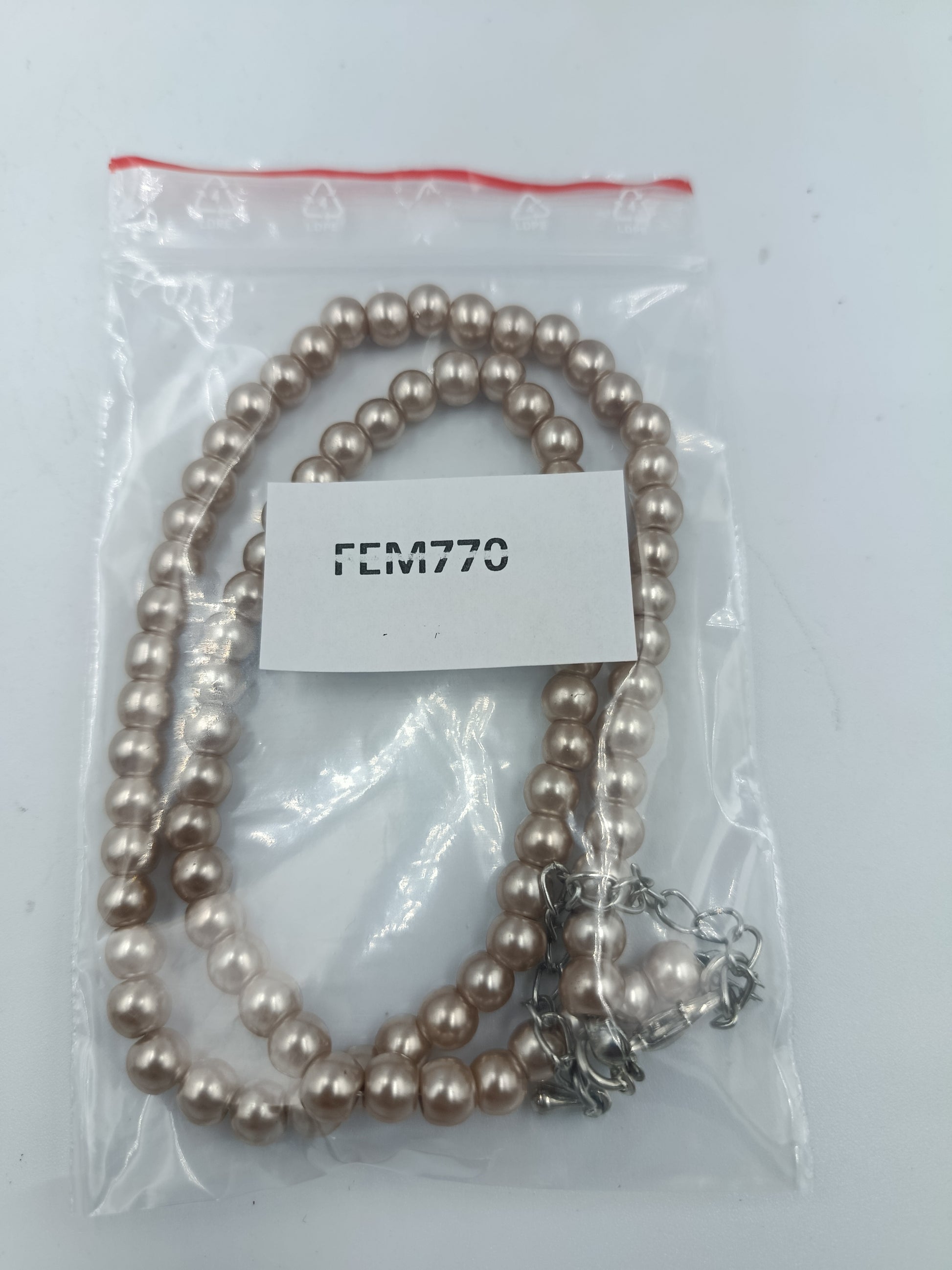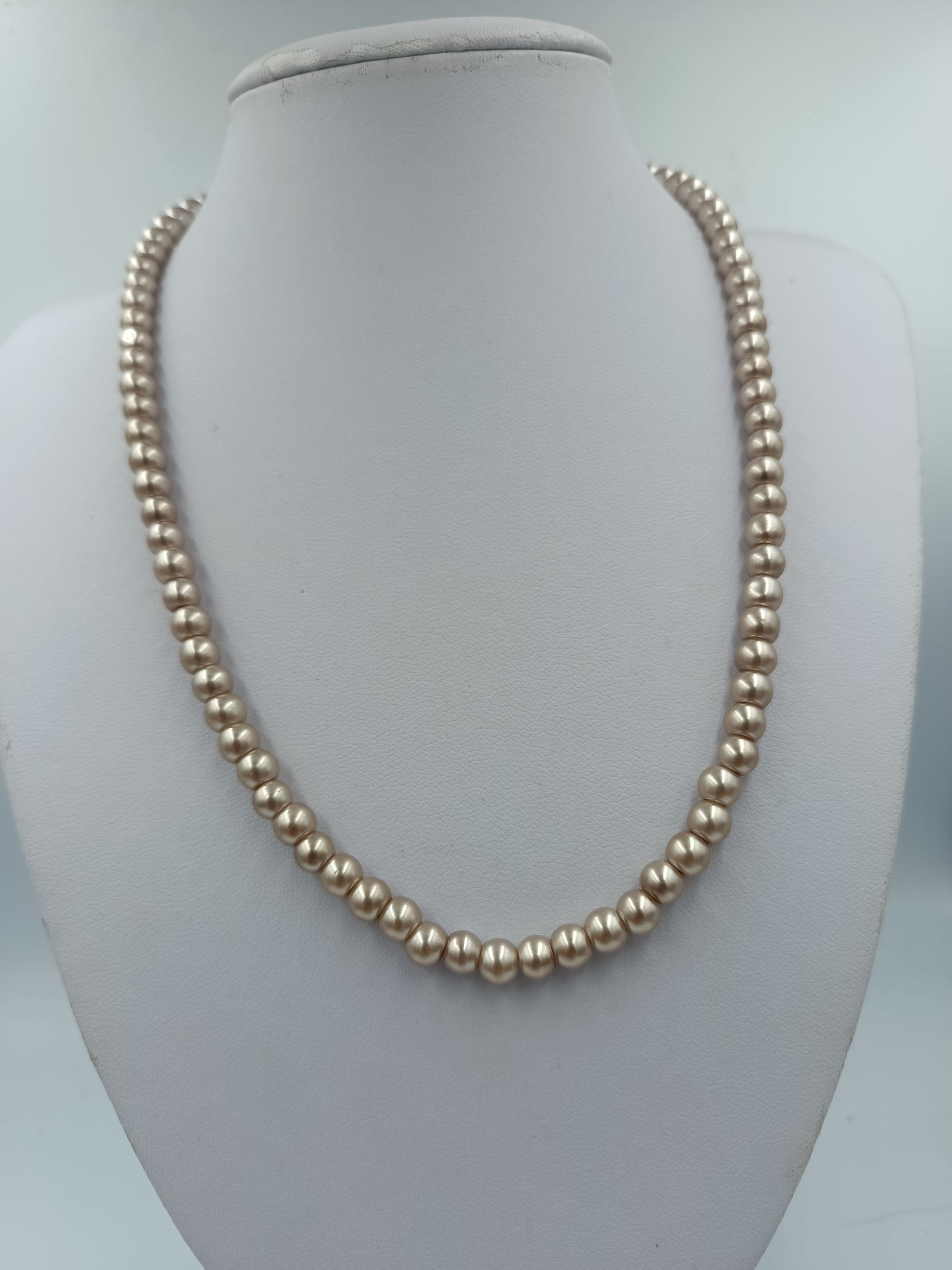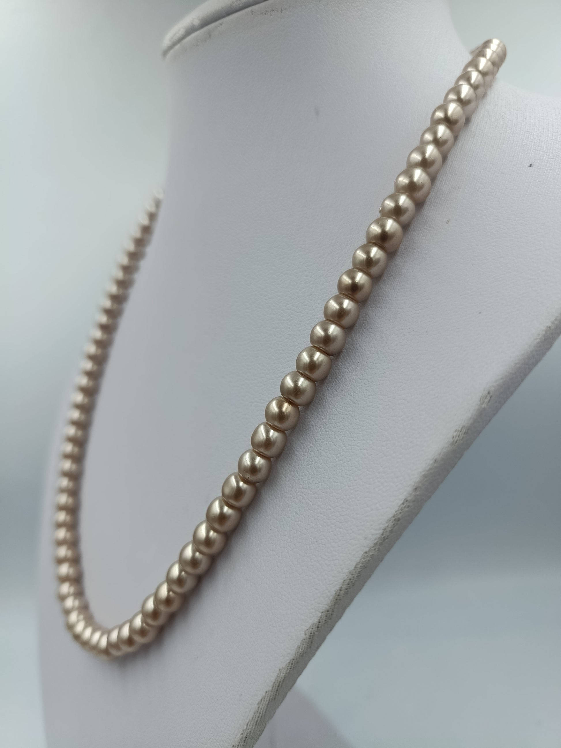 Schlichte und elegante Perlenkette in zartem Roséton, die durch ihren sanften Glanz und ihr zeitloses Design überzeugt. Die Kette lässt sich dank der Verlängerung individuell anpassen und passt perfekt zu festlicher Kleidung oder als stilvolles Accessoire im Alltag.