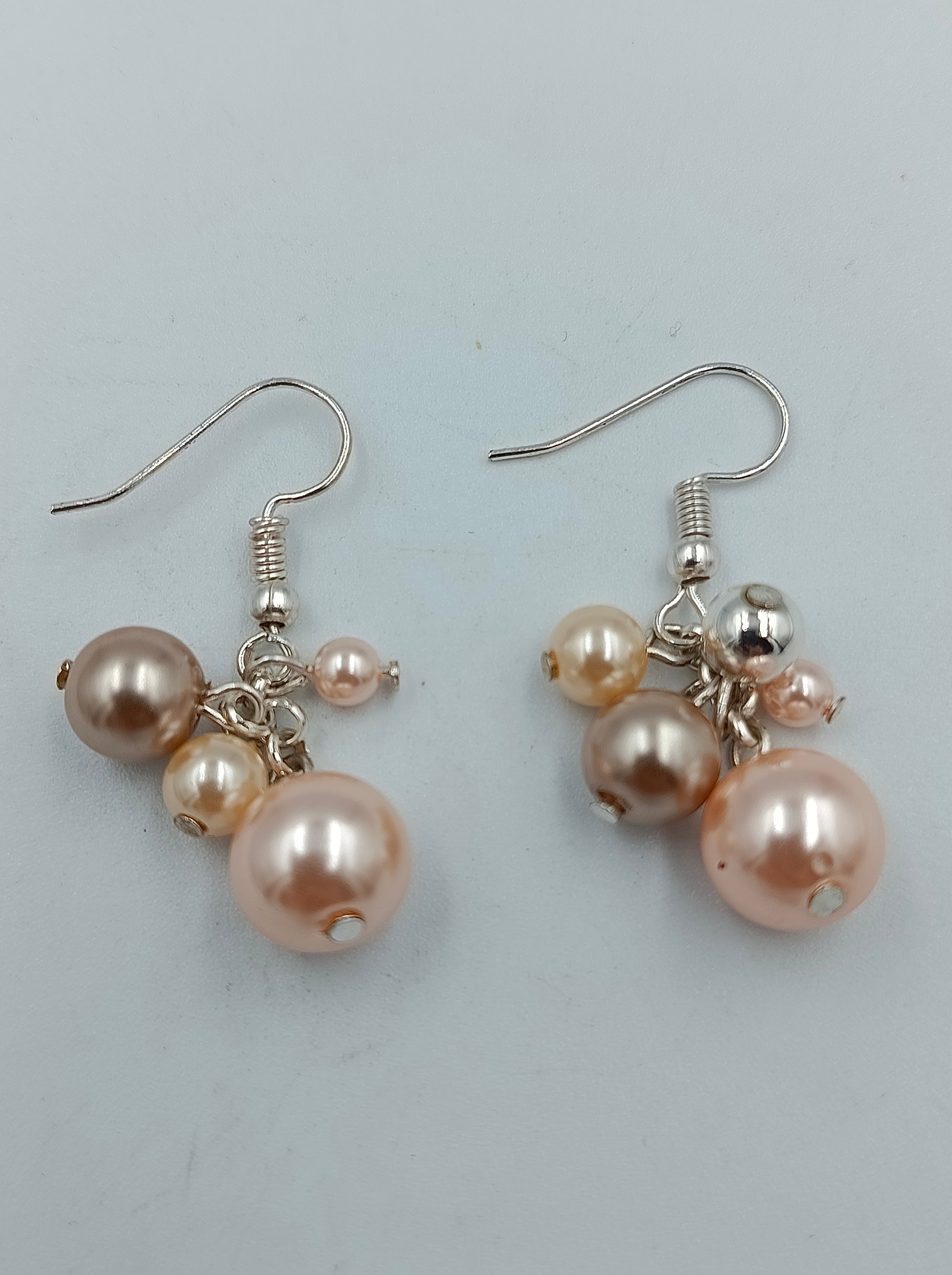Elegante Ohrringe mit mehreren glänzenden Perlen in sanften Champagner- und Rosétönen. Das Zusammenspiel der Farben verleiht diesen Ohrringen eine feminine, edle Ausstrahlung – perfekt für festliche Anlässe oder den stilvollen Alltag.
