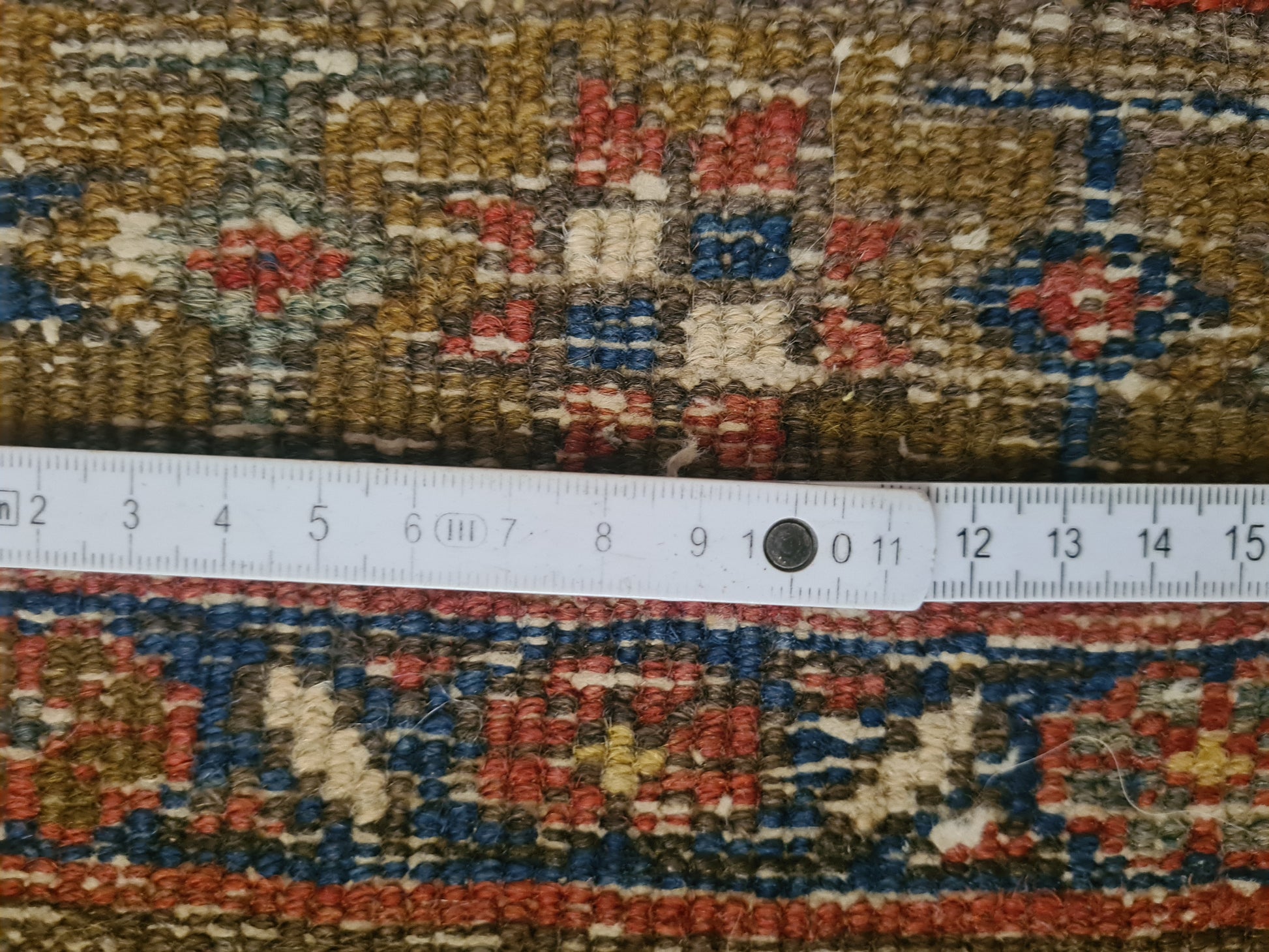zum Verkauf steht ein handgeknüpfter Orientteppich aus der Region Heris, Persien. Der Teppich besticht durch sein traditionelles Muster, kräftige Farben und die aufwendige Knüpfarbeit, die für diese Region charakteristisch ist.