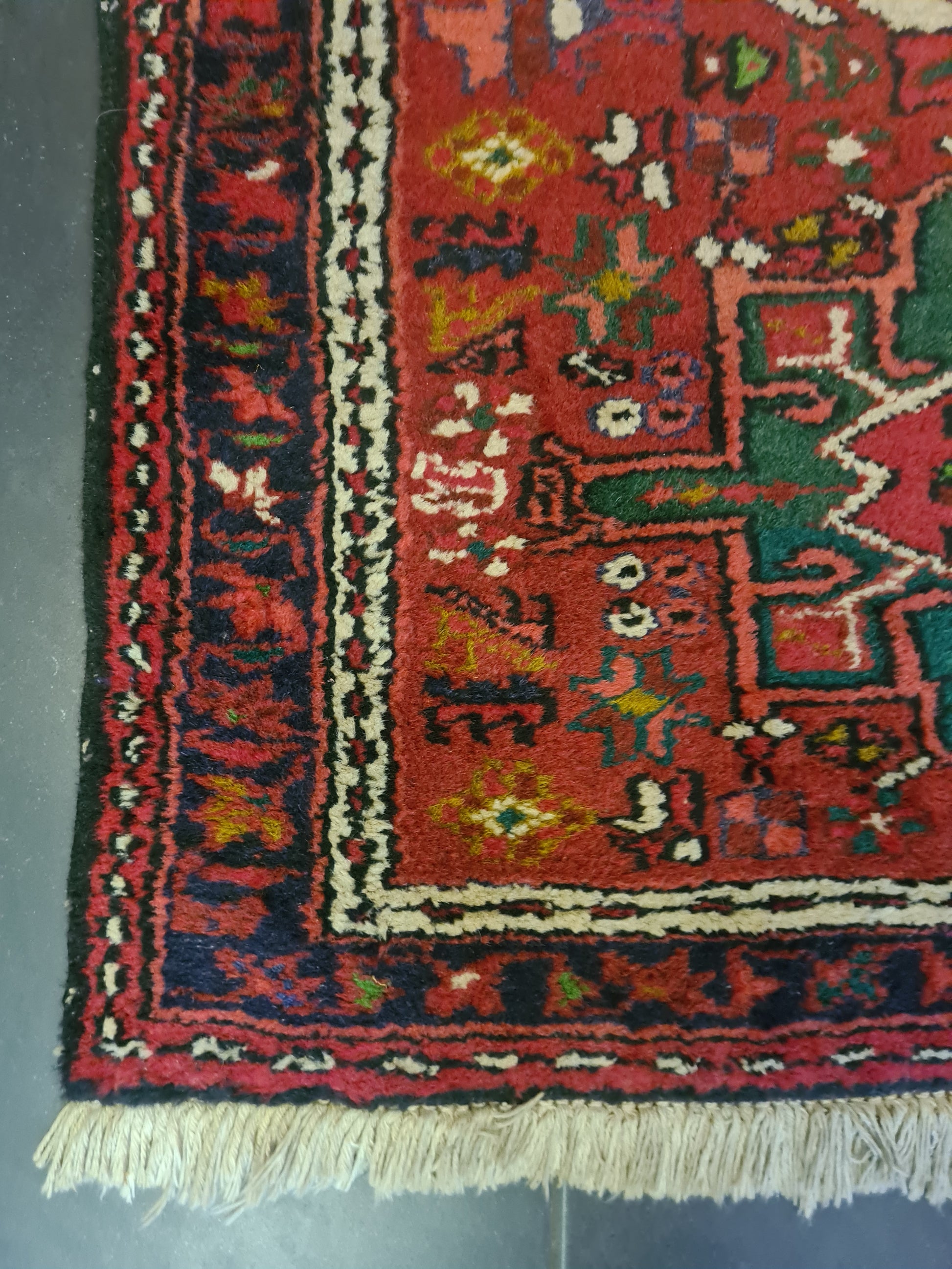 zum Verkauf steht ein handgeknüpfter Perserteppich im klassischen Heris-Design. Dieses hochwertige Stück überzeugt durch seine kunstvolle Knüpfung, traditionelle Musterführung und kräftige Farbgestaltung, die jedem Raum eine elegante orientalische Note verleiht.