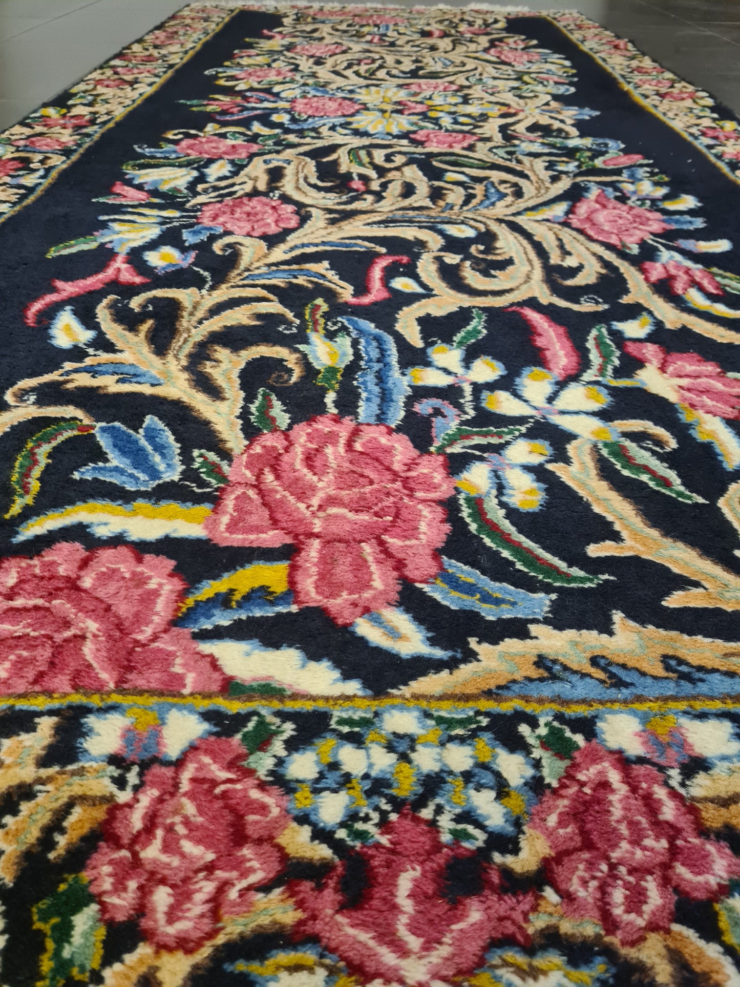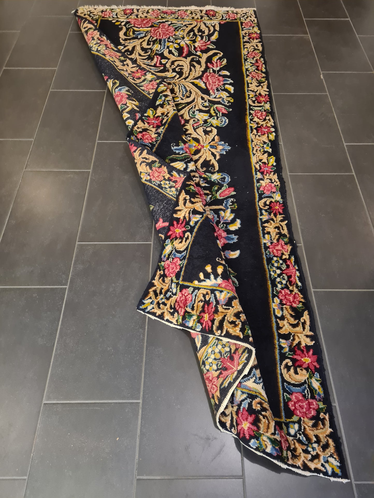 Dieser Kirman Perserteppich beeindruckt durch seine hochwertige Verarbeitung und sein kunstvolles Blumenmuster, das traditionelle und luxuriöse Elemente vereint. Die brillante Farbgebung und die exquisite Knotendichte zeugen von der hohen Qualität des Teppichs und machen ihn zu einem wahren Sammlerstück.